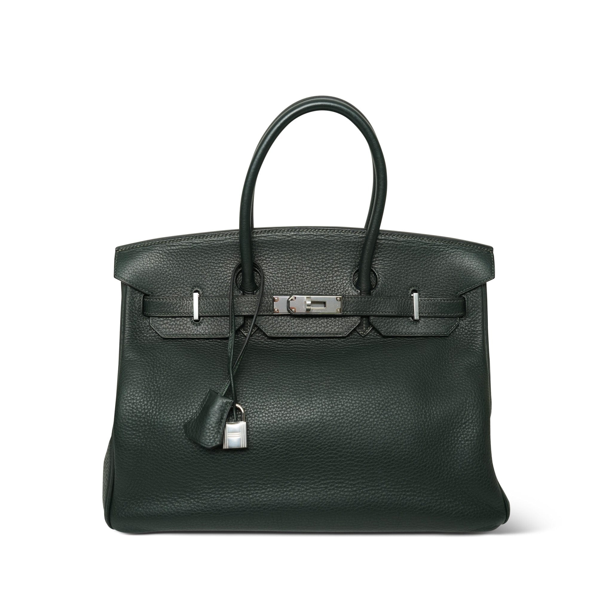 Birkin 35 Vert Fonce Togo Palladium Plated F Square Stamp