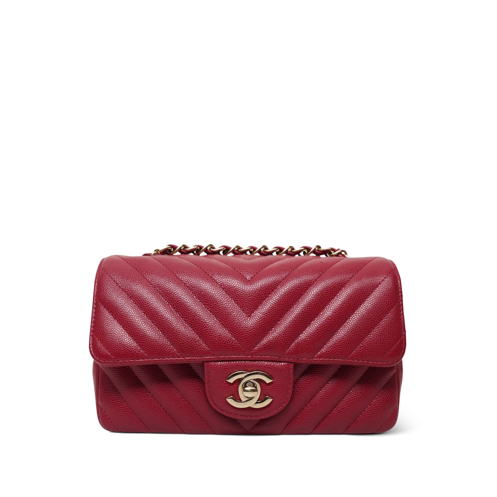 Raspberry Chevron Caviar Quilted Mini Rectangular Flap LGHW