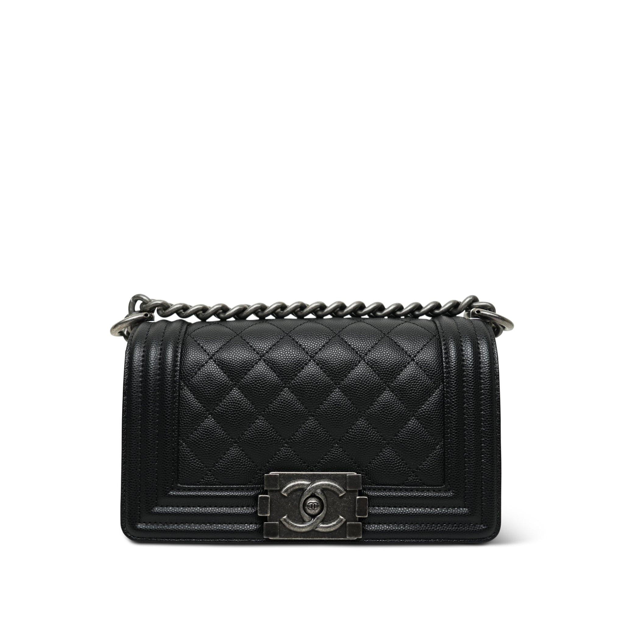 18P Black Caviar Quilted Boy Bag Small Ruthenium Hardware