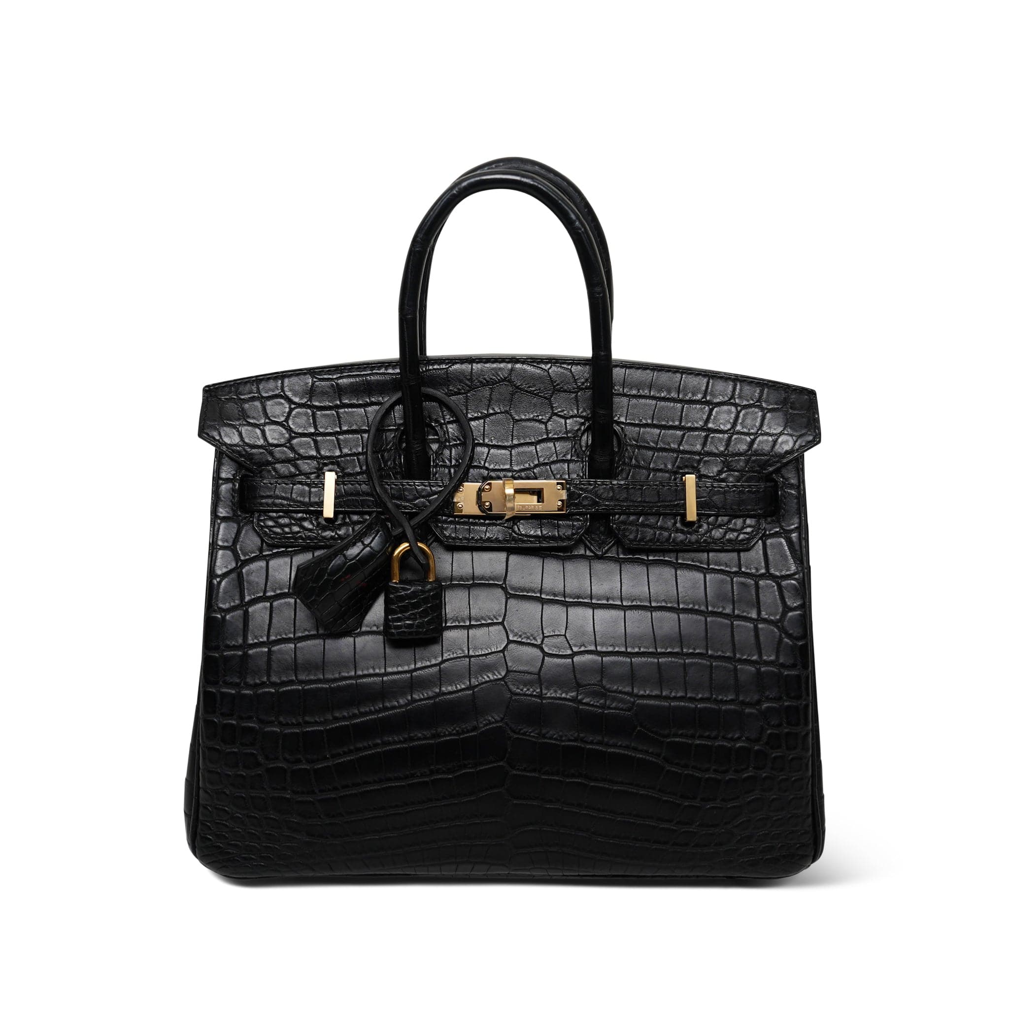 Birkin 25 Black Niloticus Crocodile Gold Plated Q Square Stamp