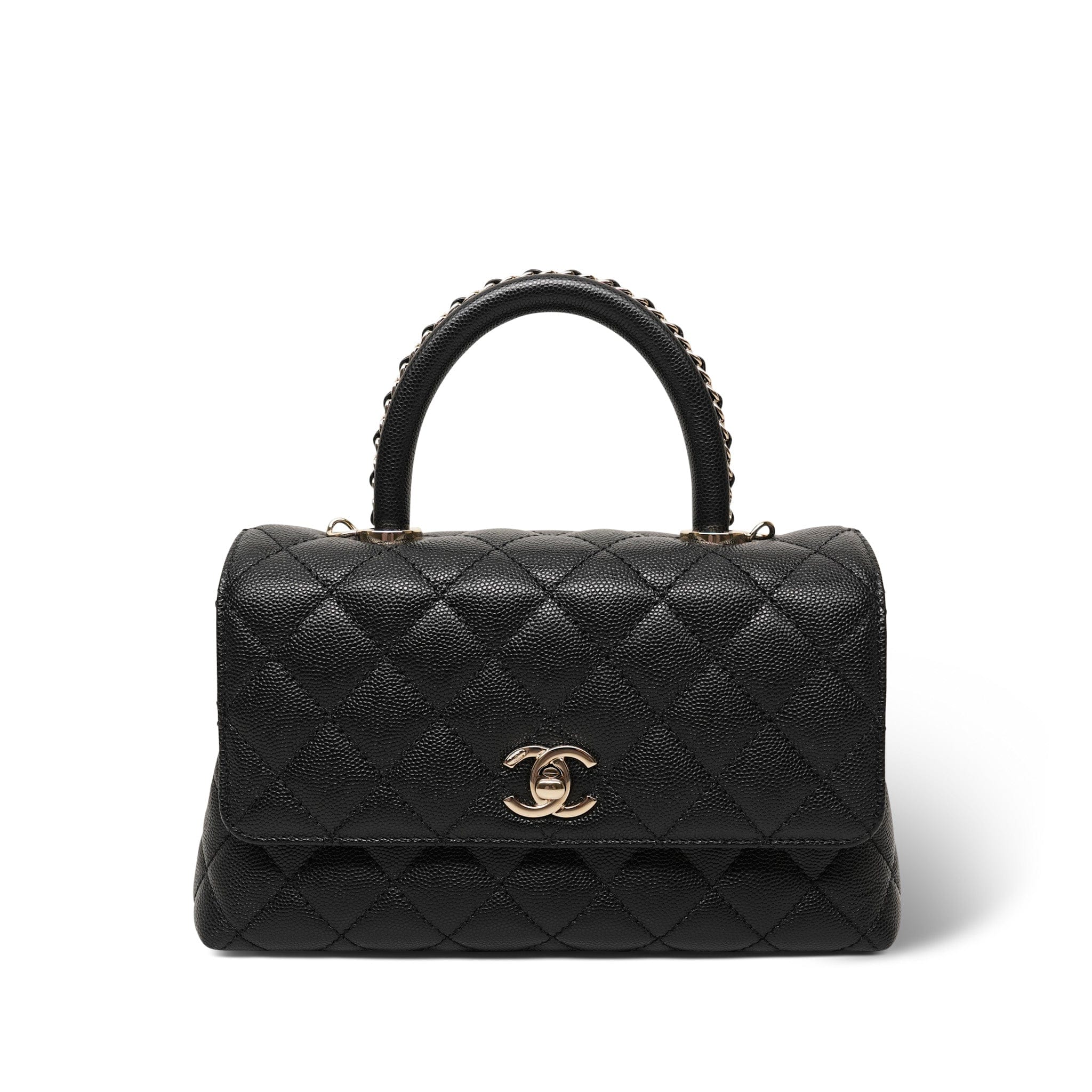 23A Black Caviar Quilted Coco Chain Handle Small LGHW
