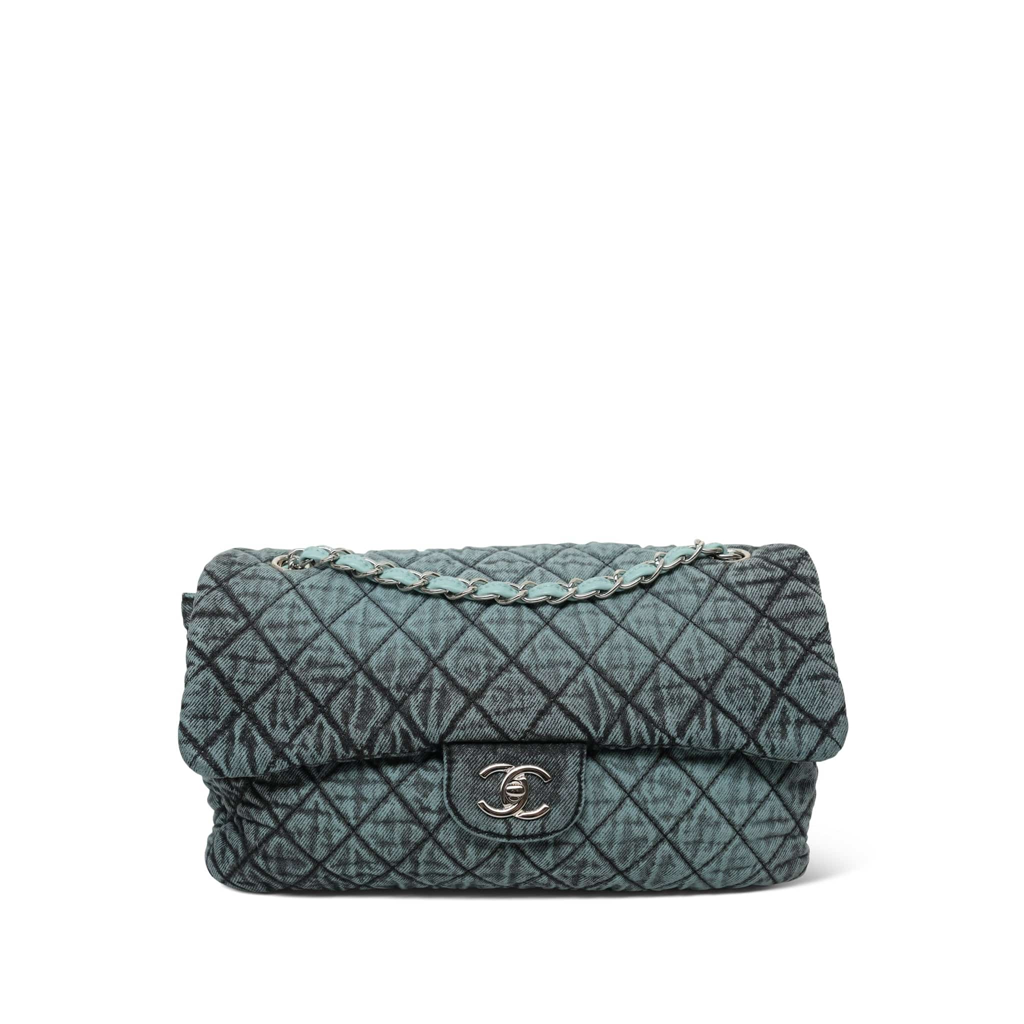 20C Light Blue Denim Quilted Denimpression Flap Bag Jumbo SHW