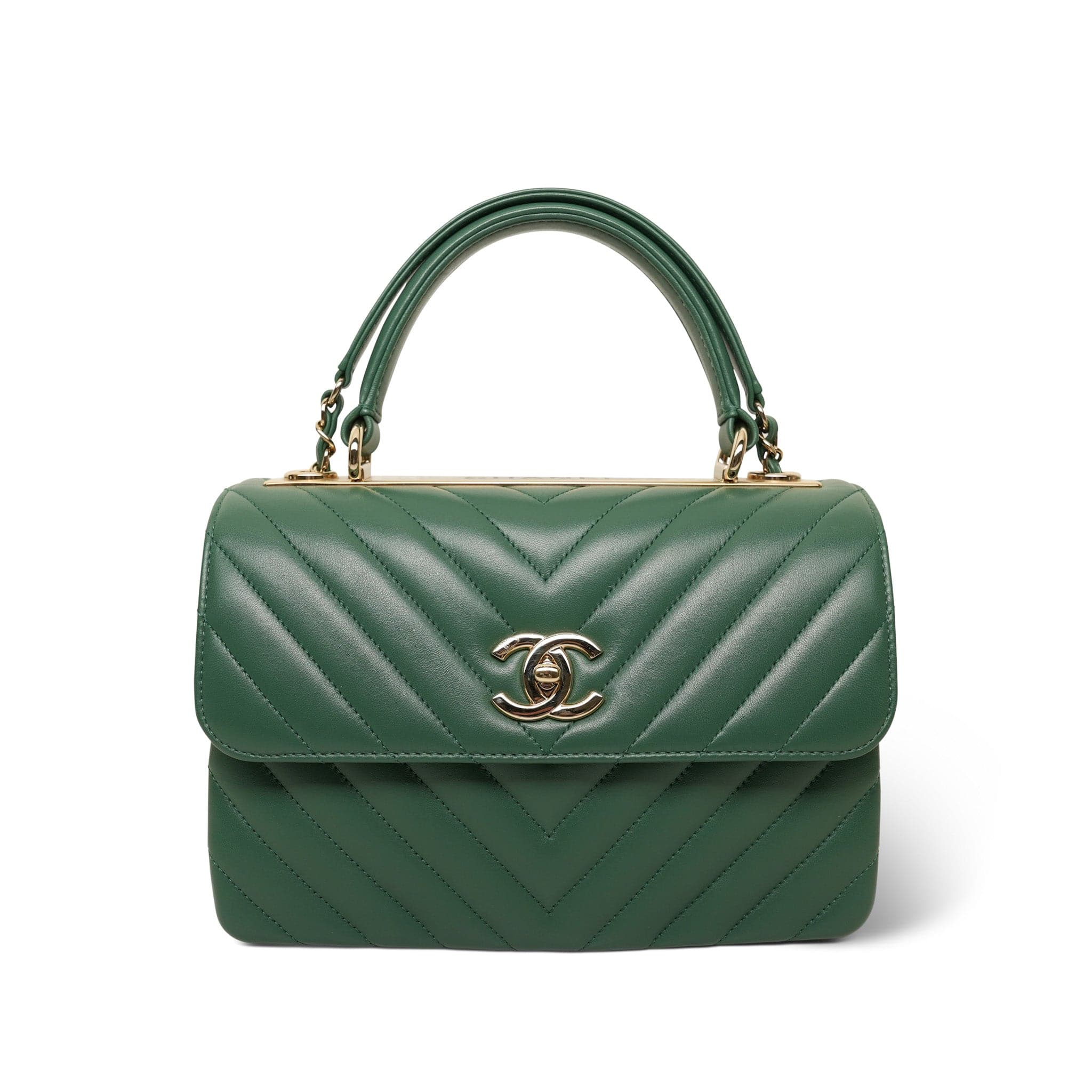 Green Lambskin Chevron Quilted Trendy CC Small Light Gold Hardware