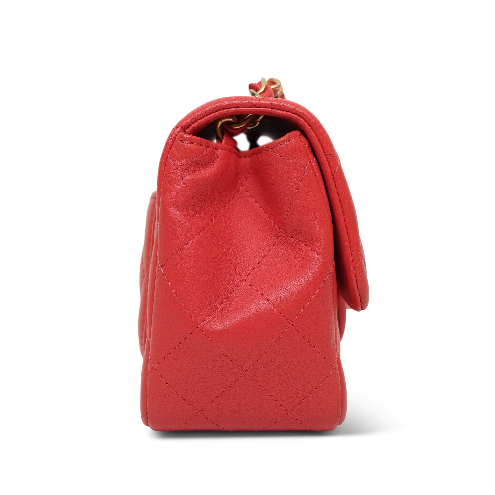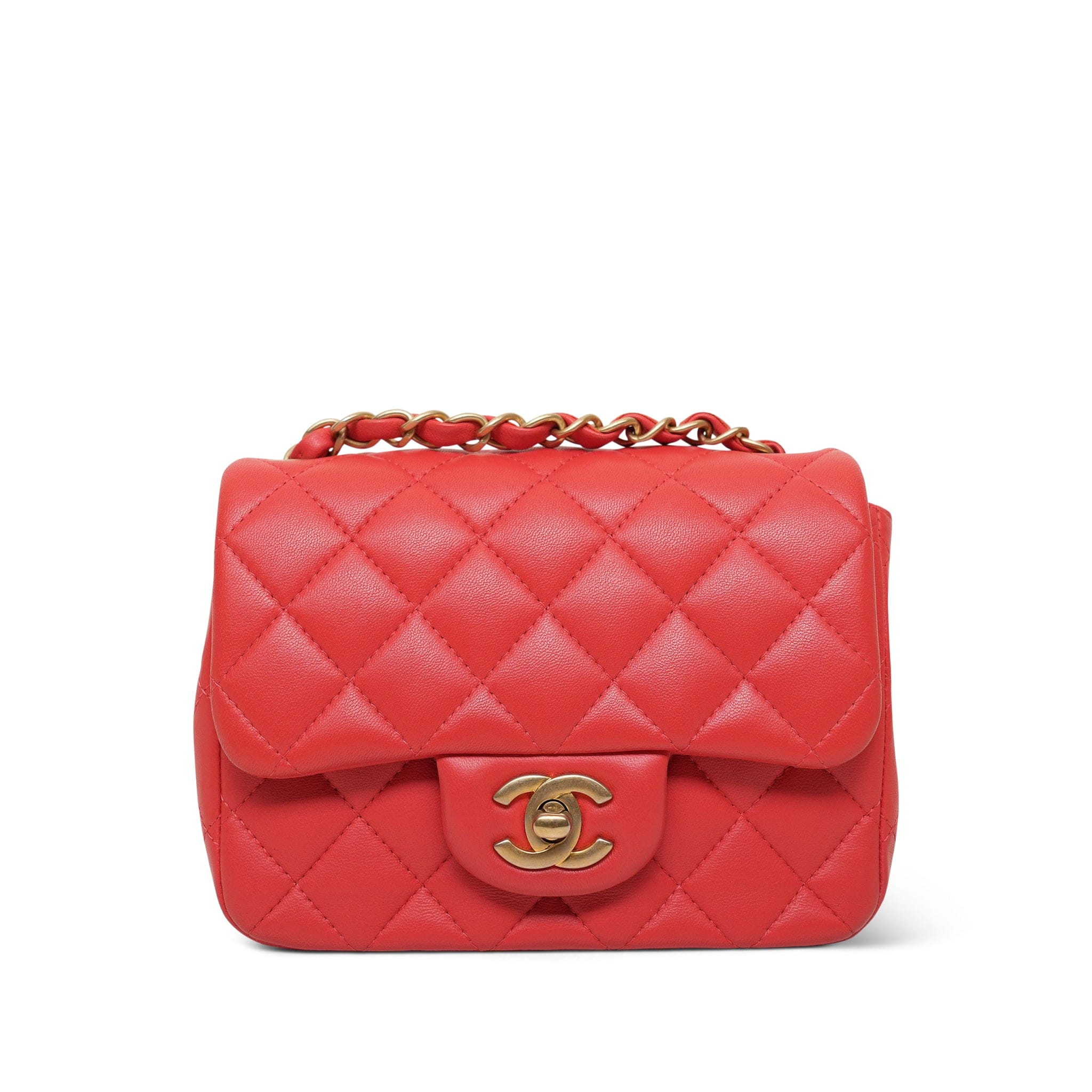 Red Lambskin Quilted Mini Square Flap AGHW