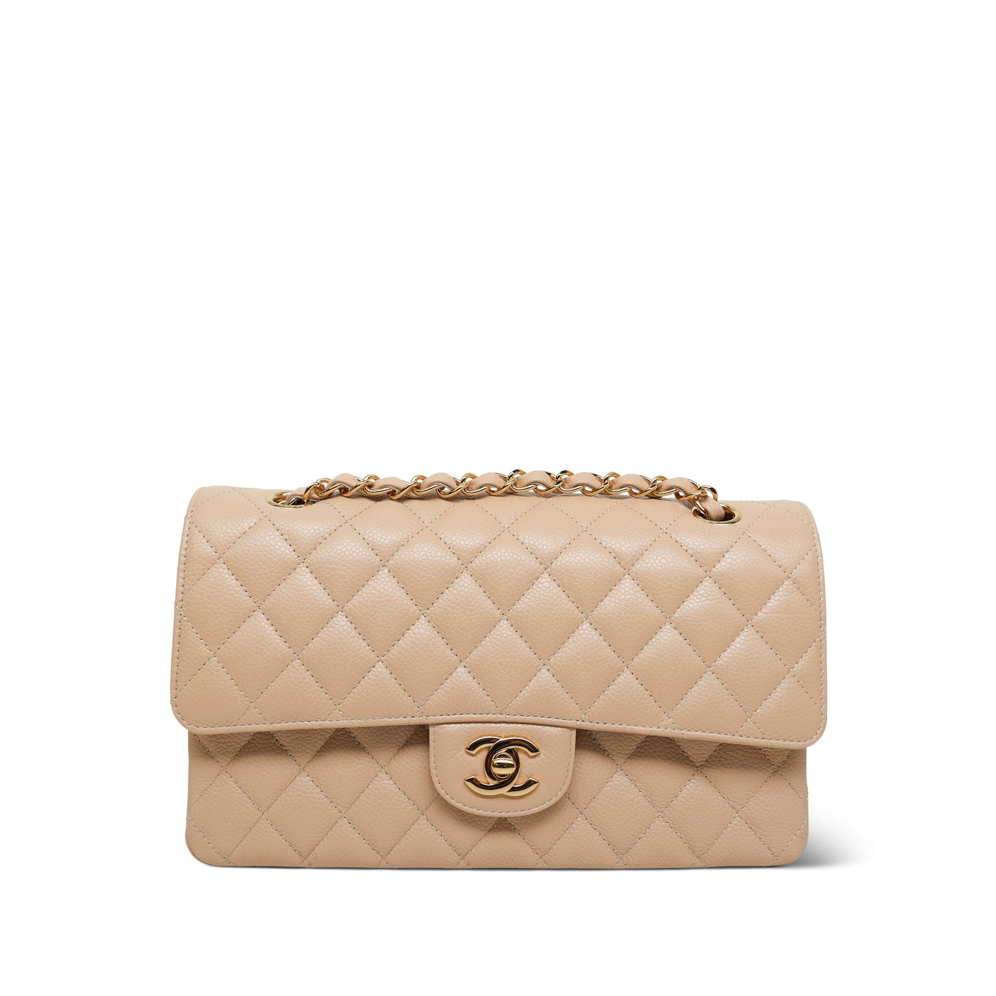 Beige Clair Caviar Quilted Classic Flap Medium GHW