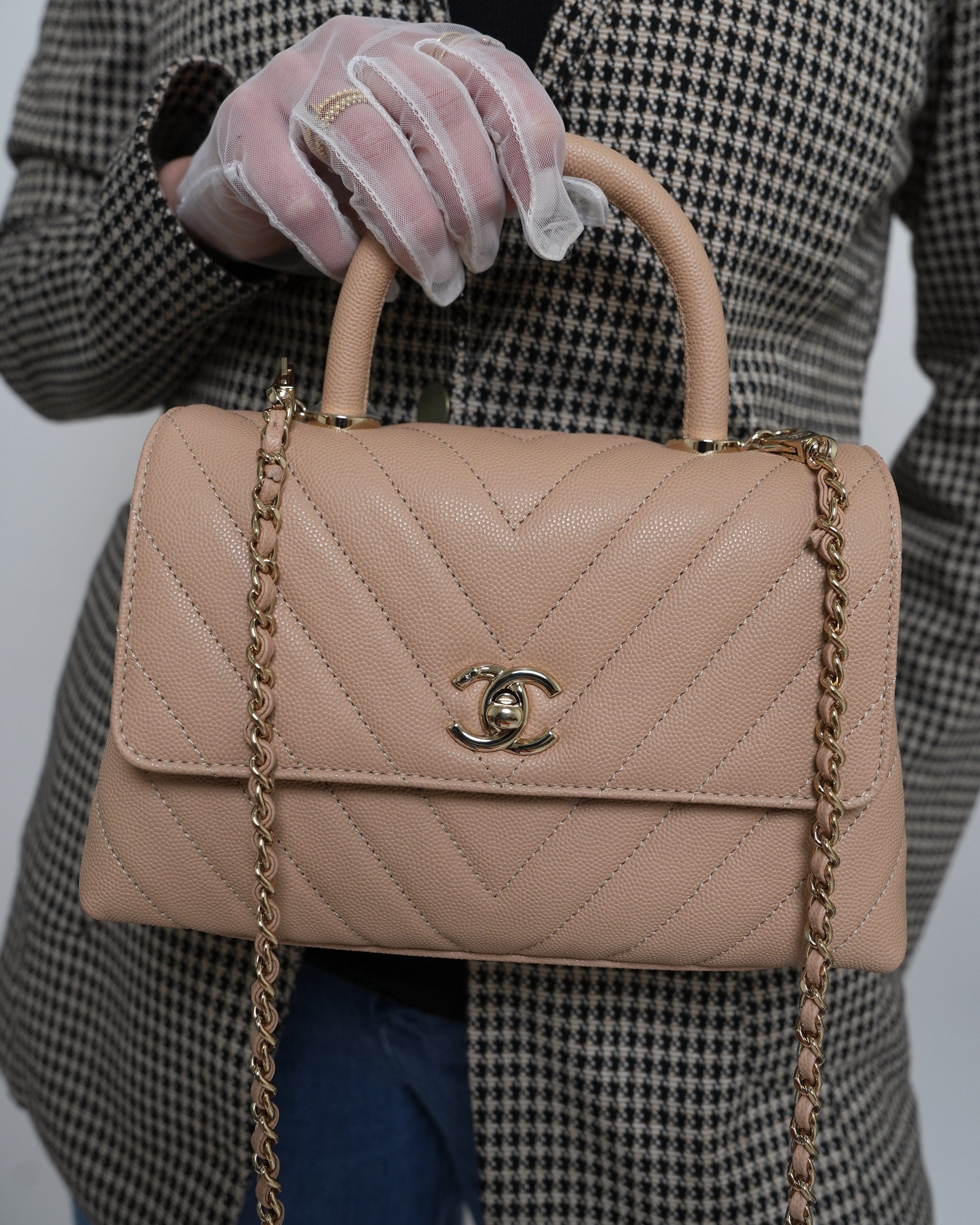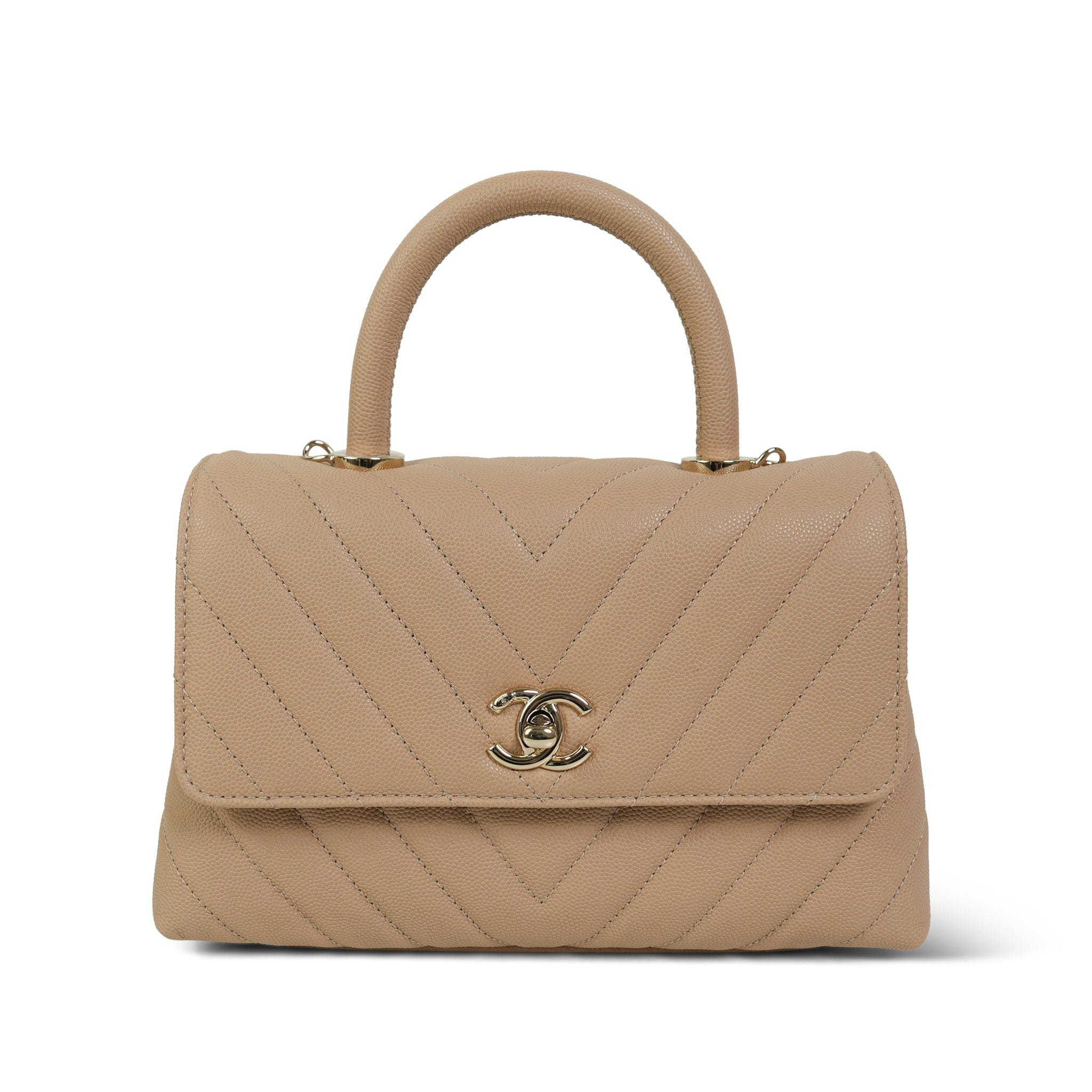 20P Beige Caviar Chevron Quilted Coco Handle Small LGHW