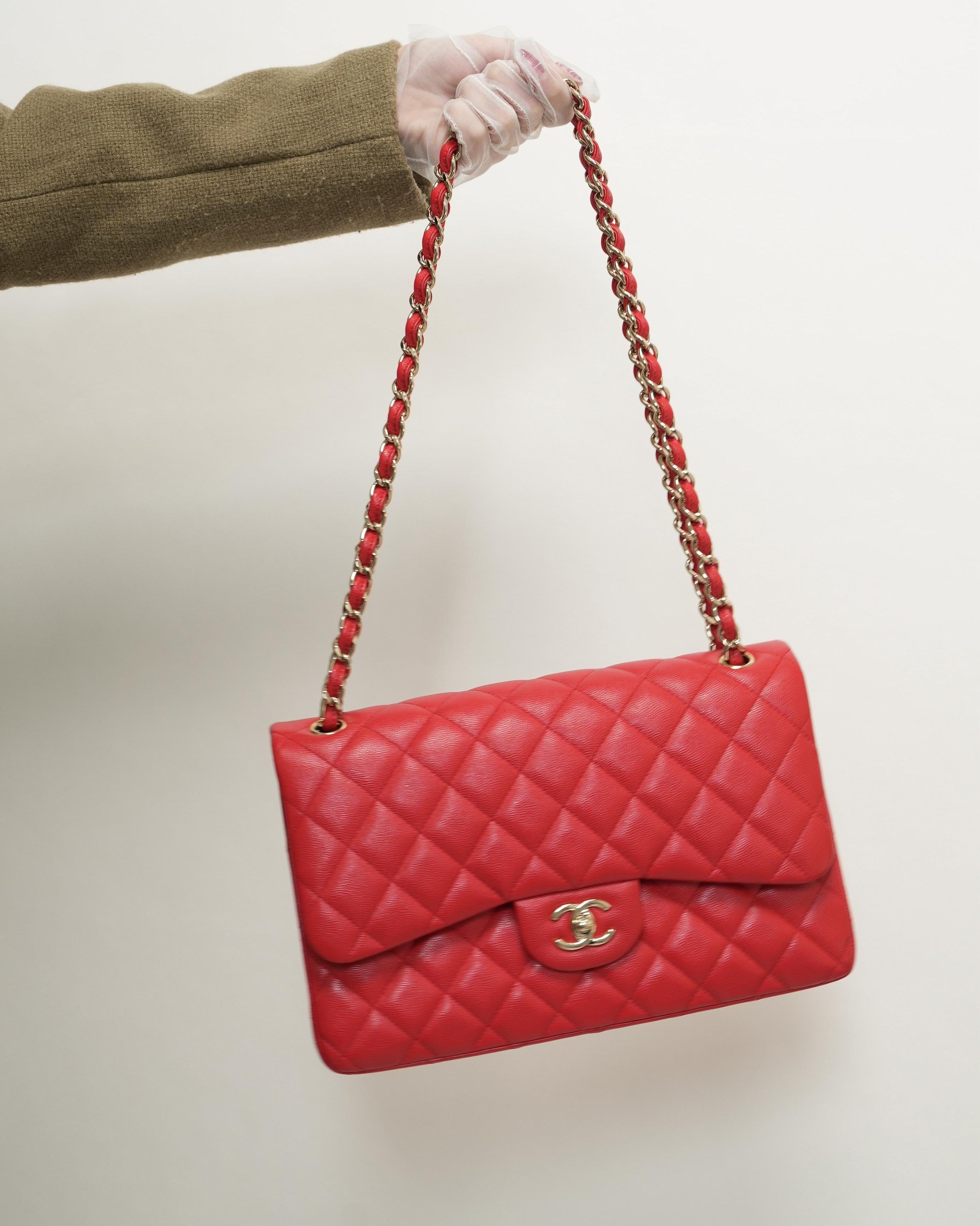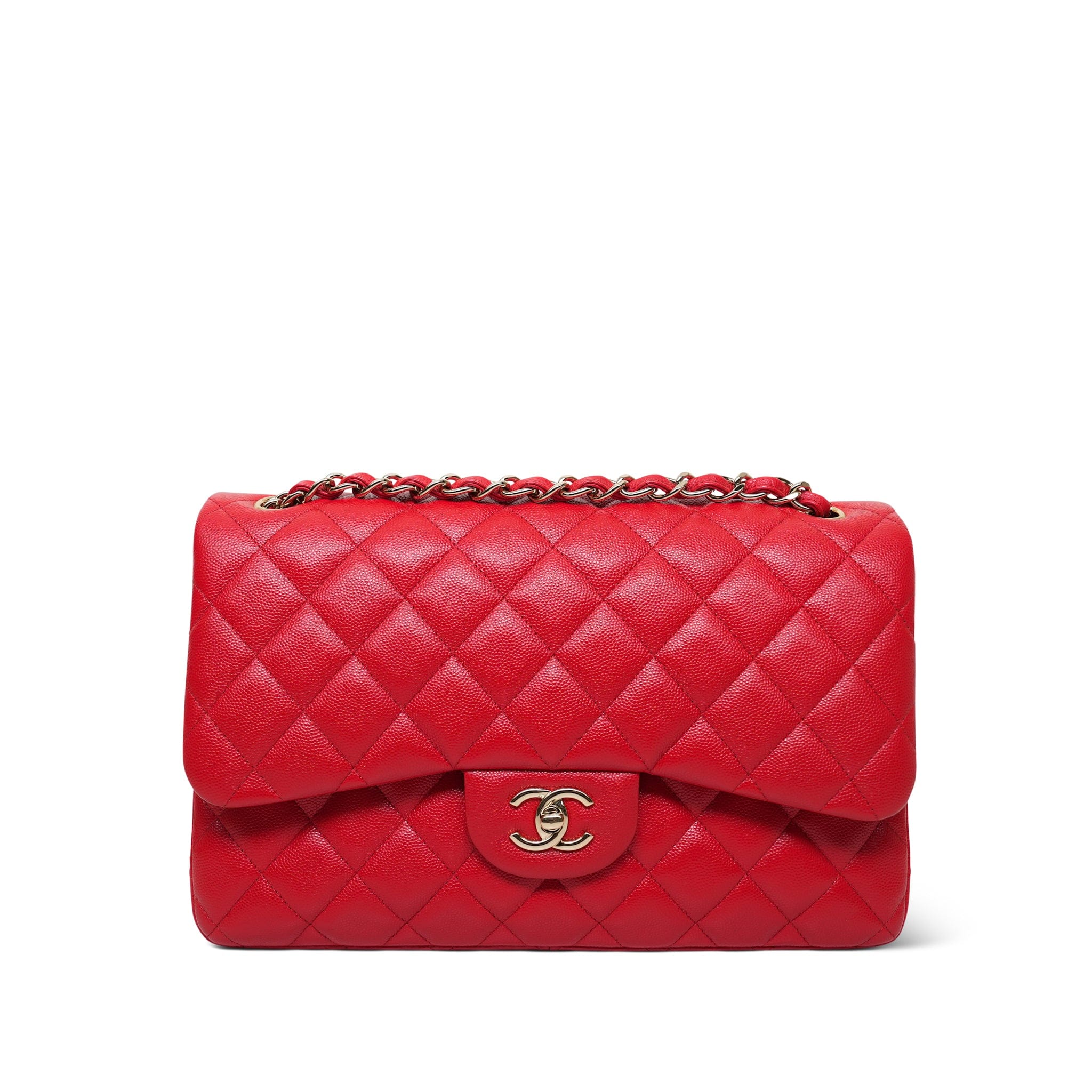 21C Red Caviar Quilted Jumbo Classic Flap LGHW