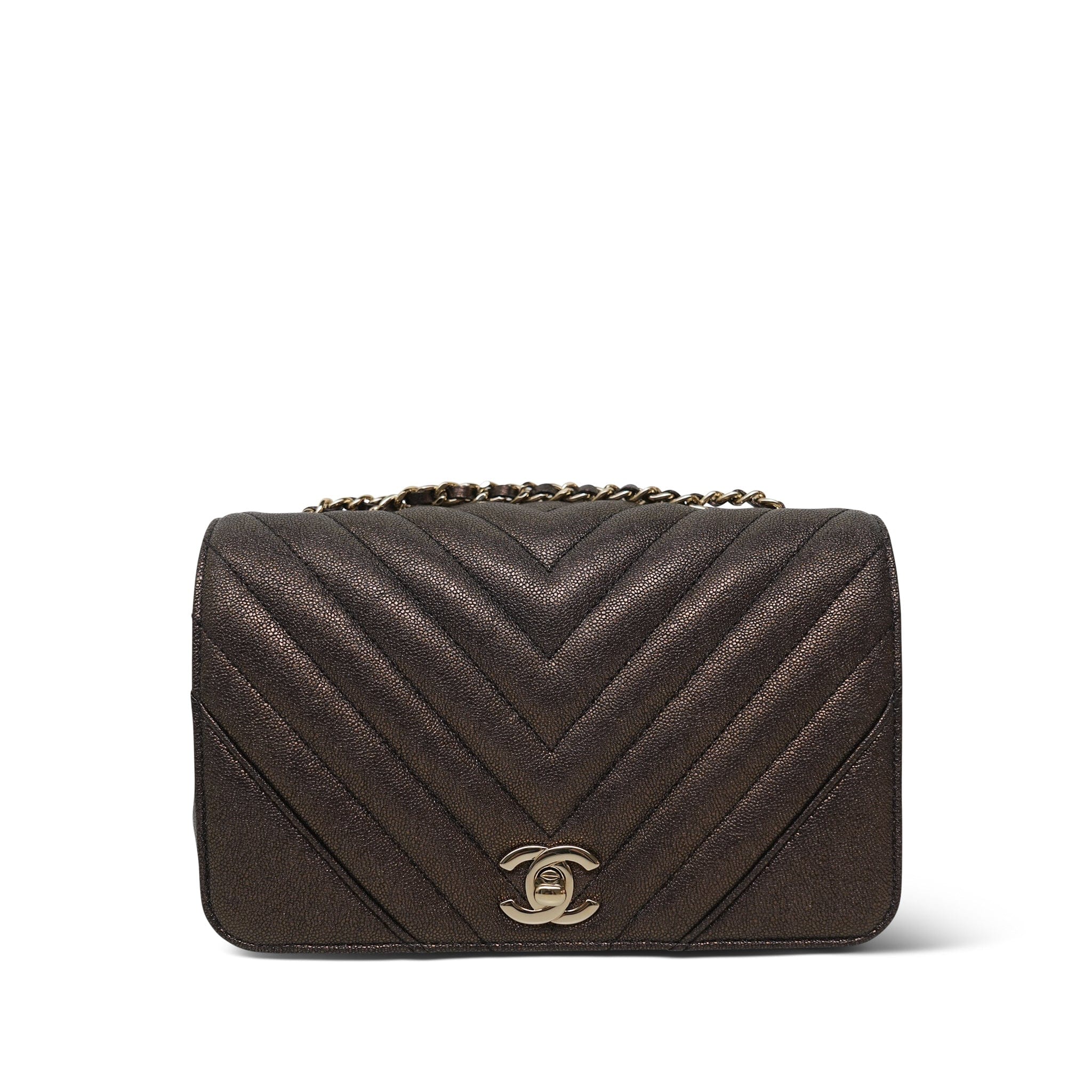 19A Brown iridescent Caviar Chevron Quilted Full Flap Bag LGHW