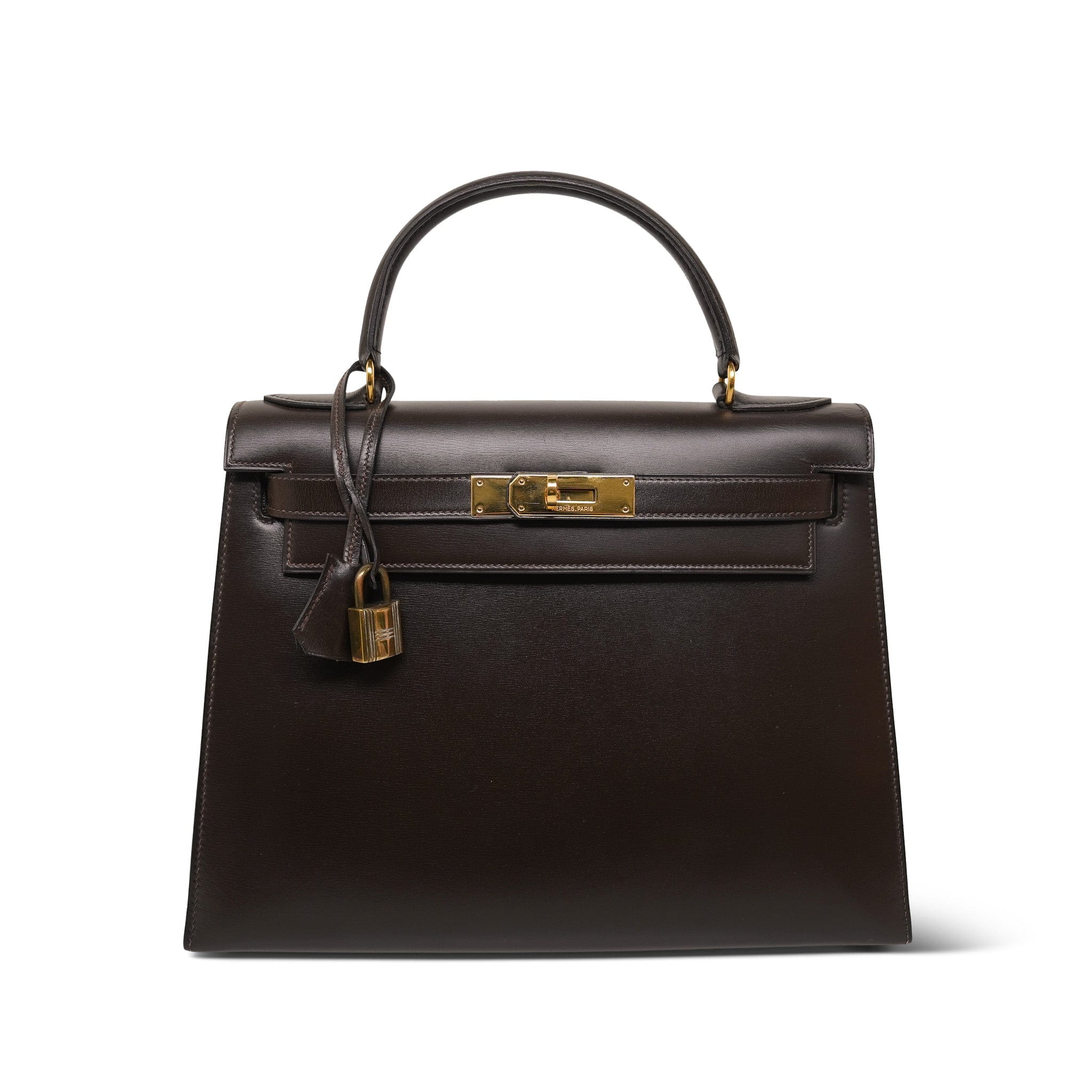 Kelly Sellier 28 Ebene Box Calfskin Gold Plated H Circle Stamp