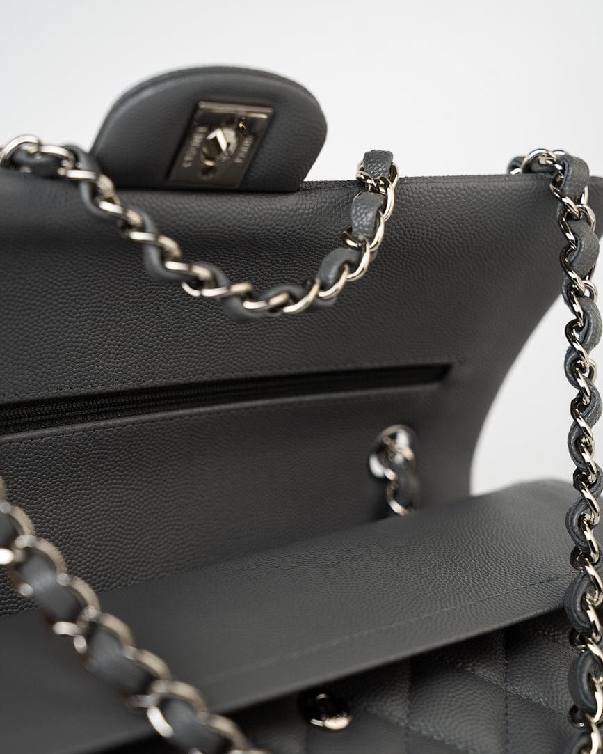 20B Green Caviar Quilted Classic Flap Medium Silver Hardware