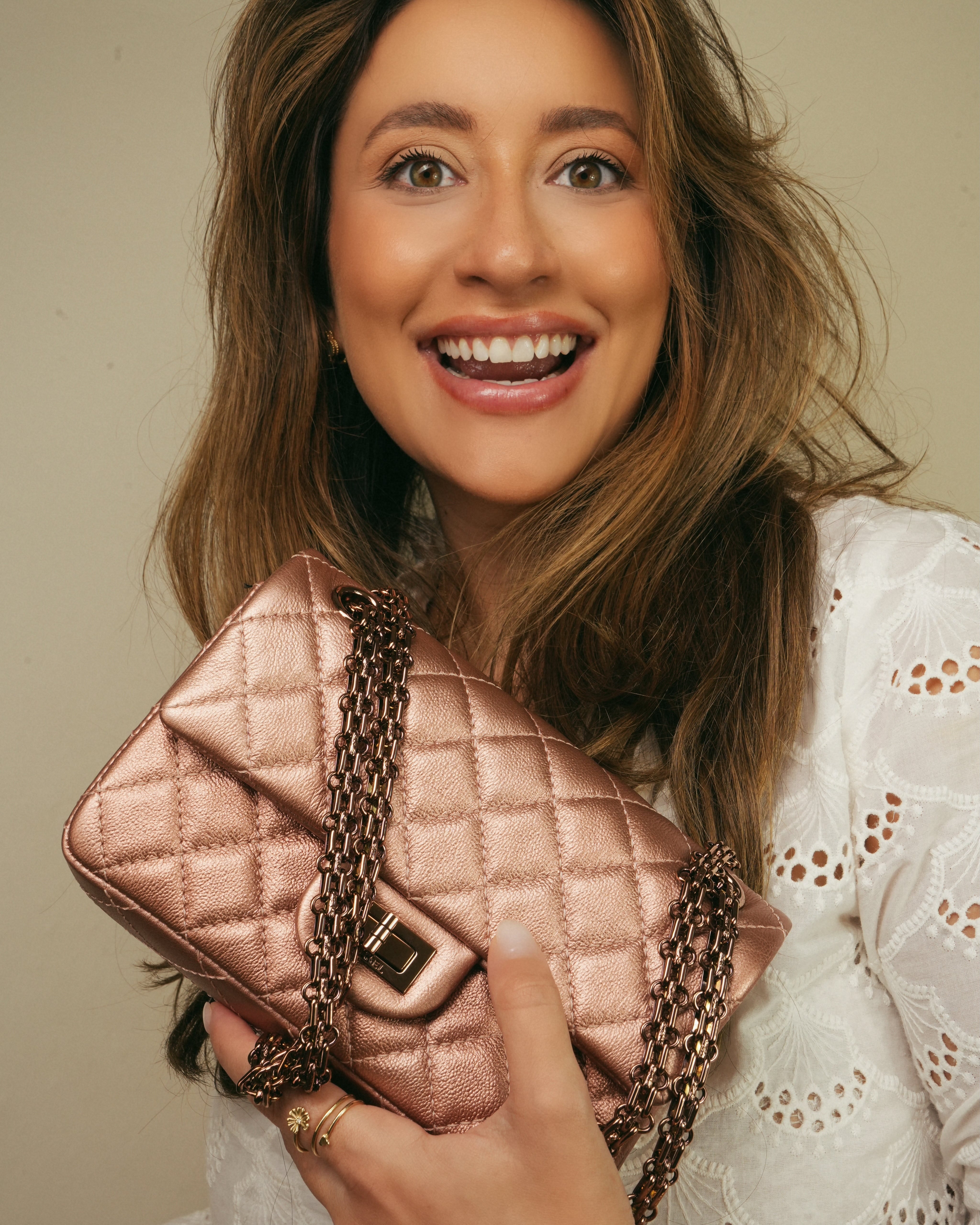 21A Rose Gold Grained Calfskin Quilted Mini Reissue 2.55 Flap Bag