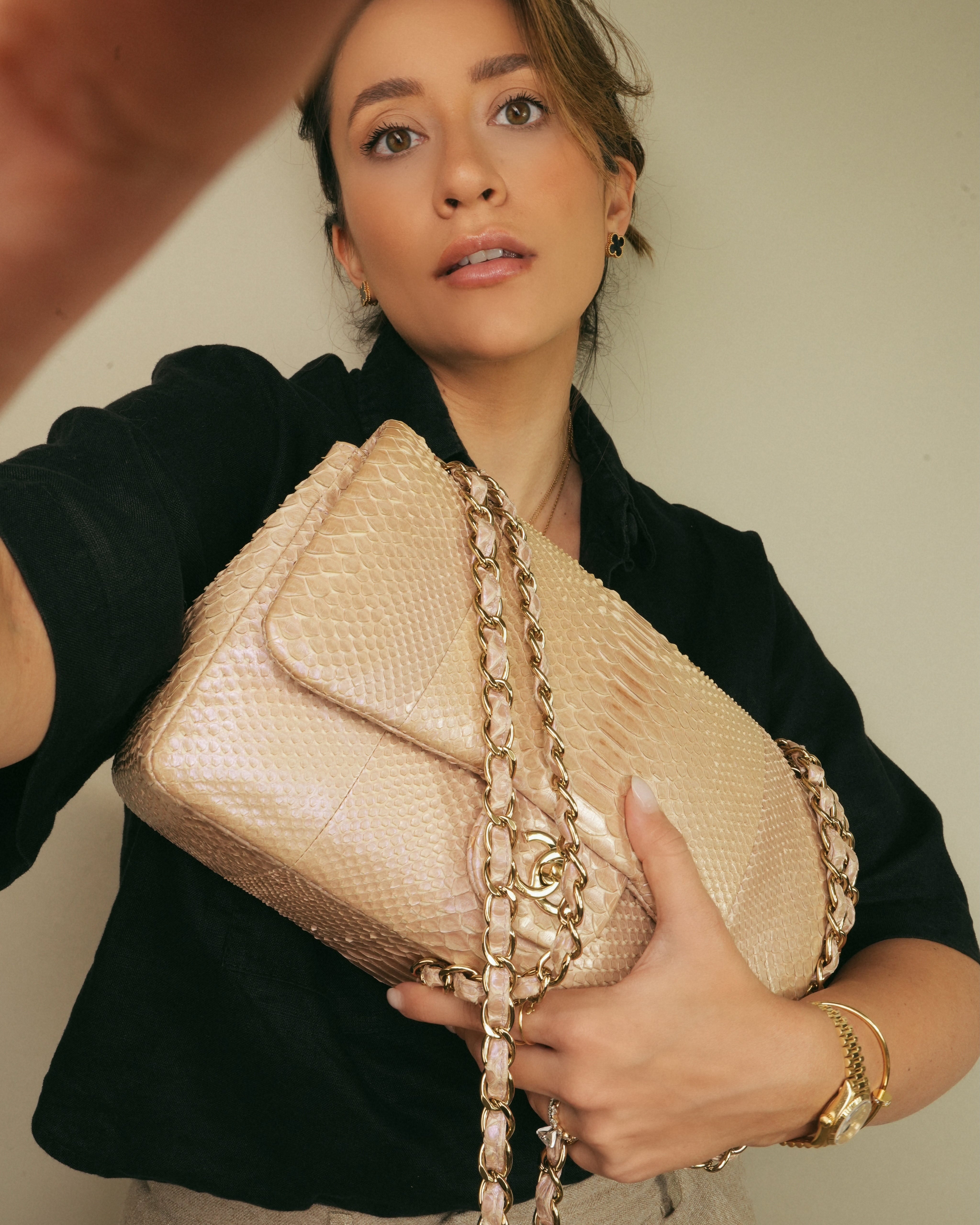 Iridescent Light Beige Python Classic Flap Jumbo LGHW