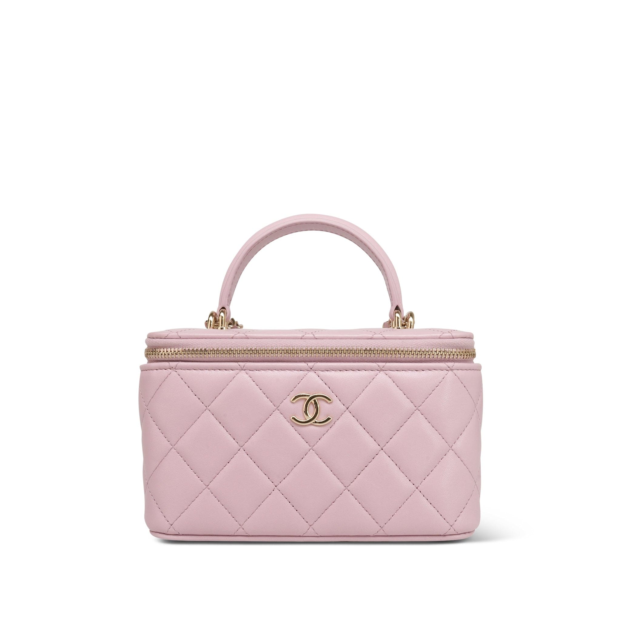 24A Light Pink Lambskin Quilted Mini Top Handle Vanity On Chain LGHW