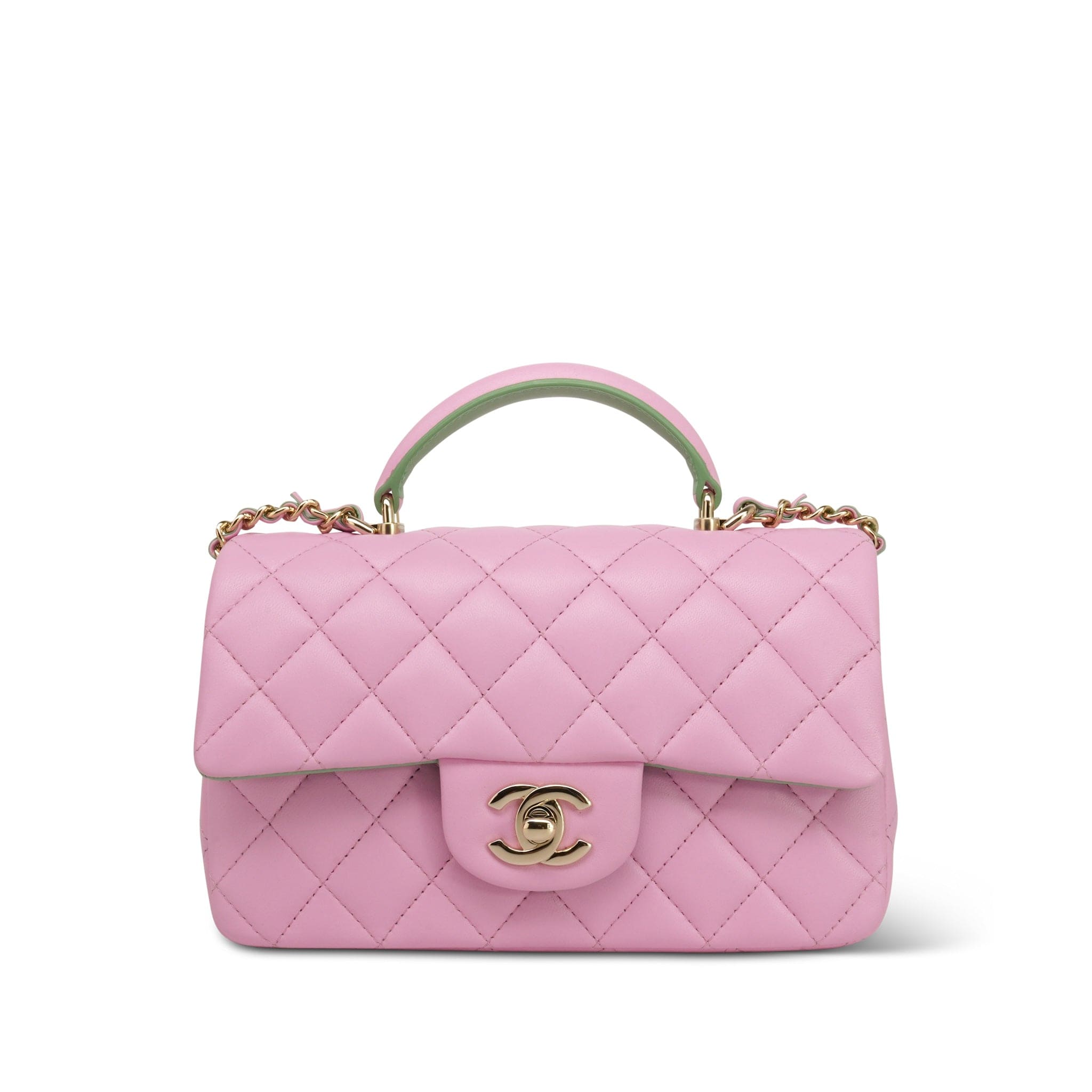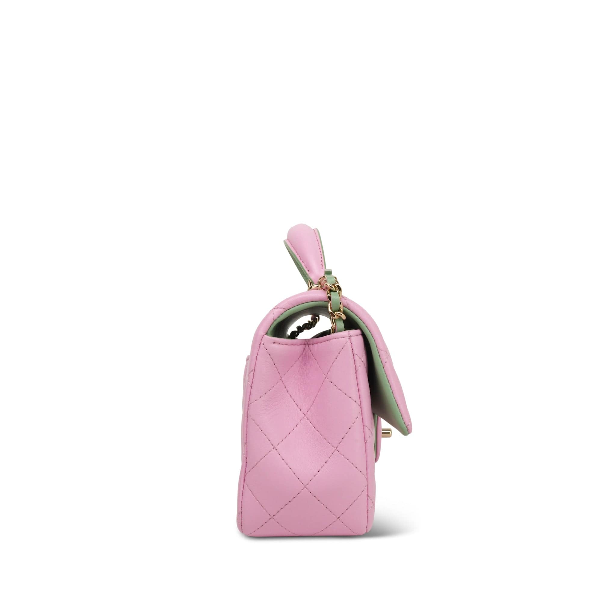 23P Light Pink/Light Green Lambskin Quilted Mini Top Handle LGHW