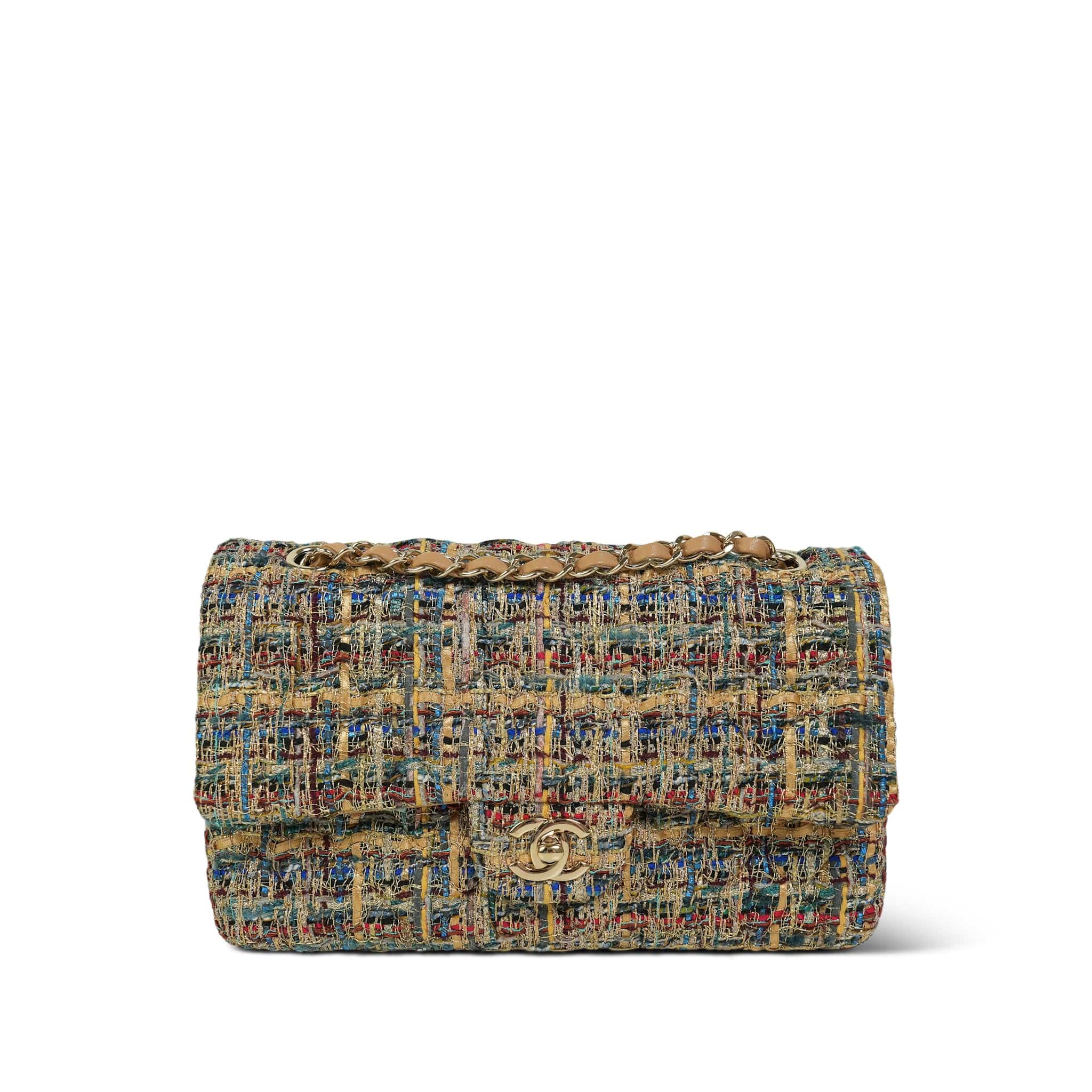 Egyptian Gold Tweed Quilted Classic Flap Medium Light Gold Hardware