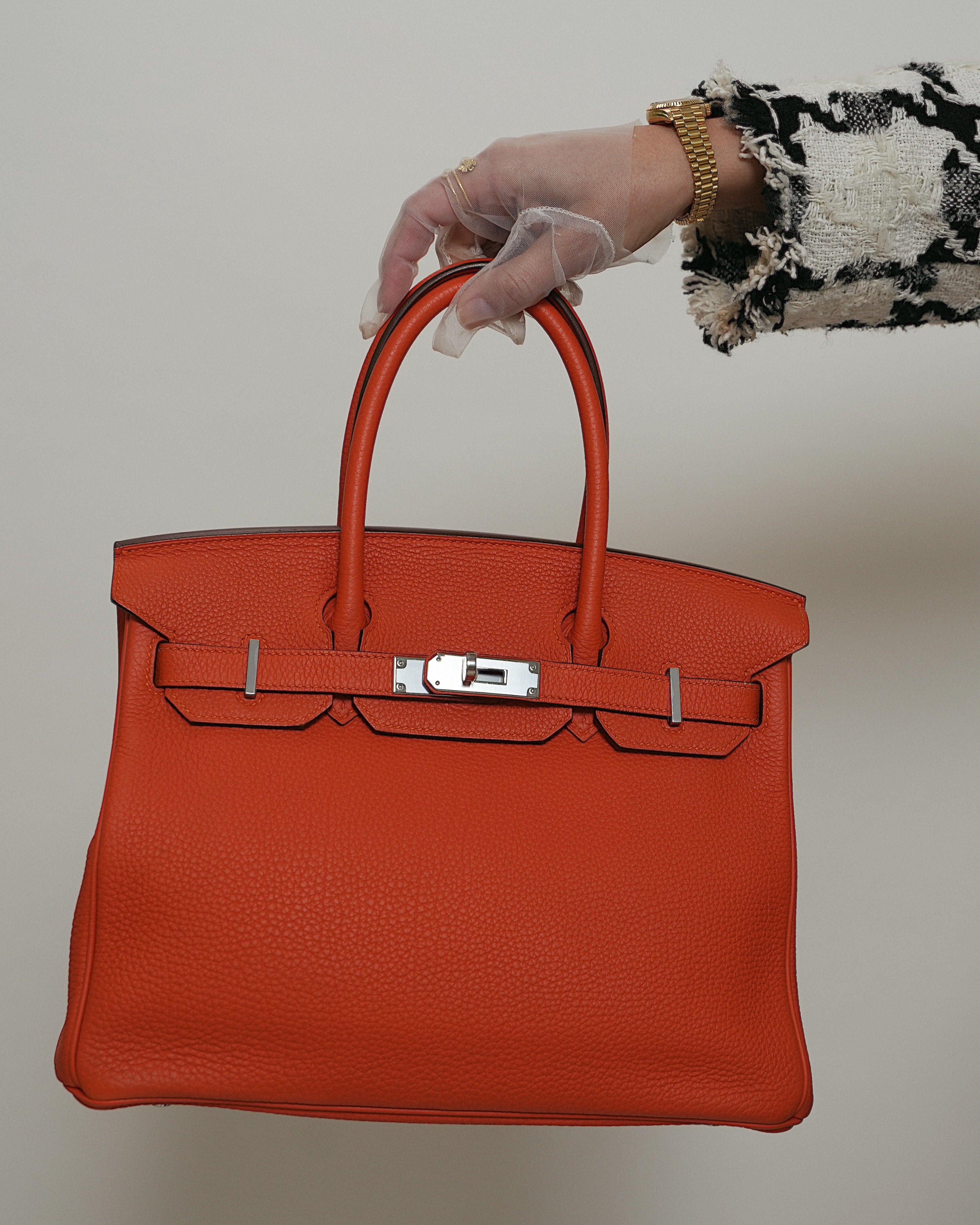 Birkin 30 Orange Togo Palladium Plated T Stamp