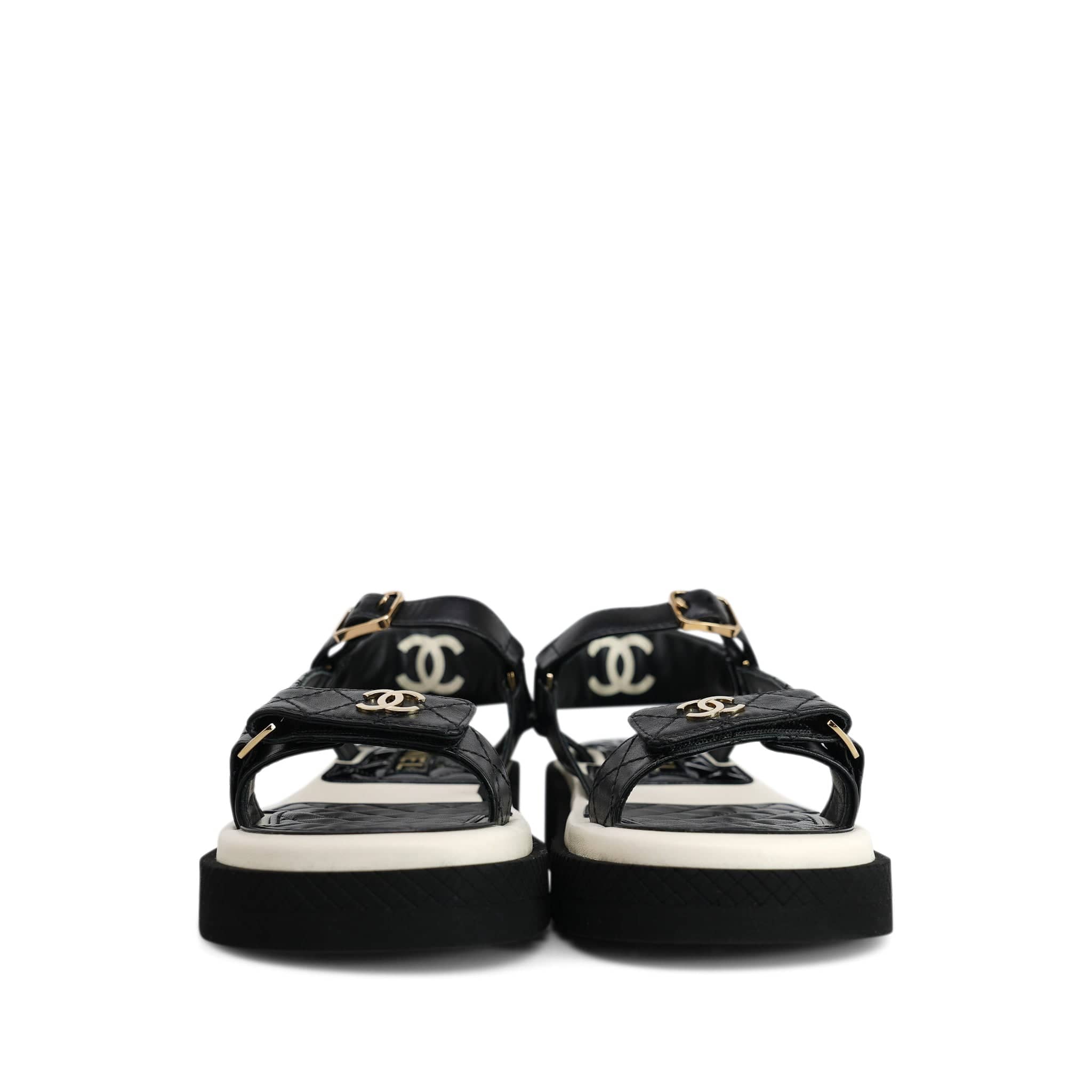 22P Black White Lambskin & Patent CC Platform Sandals Size 36.5