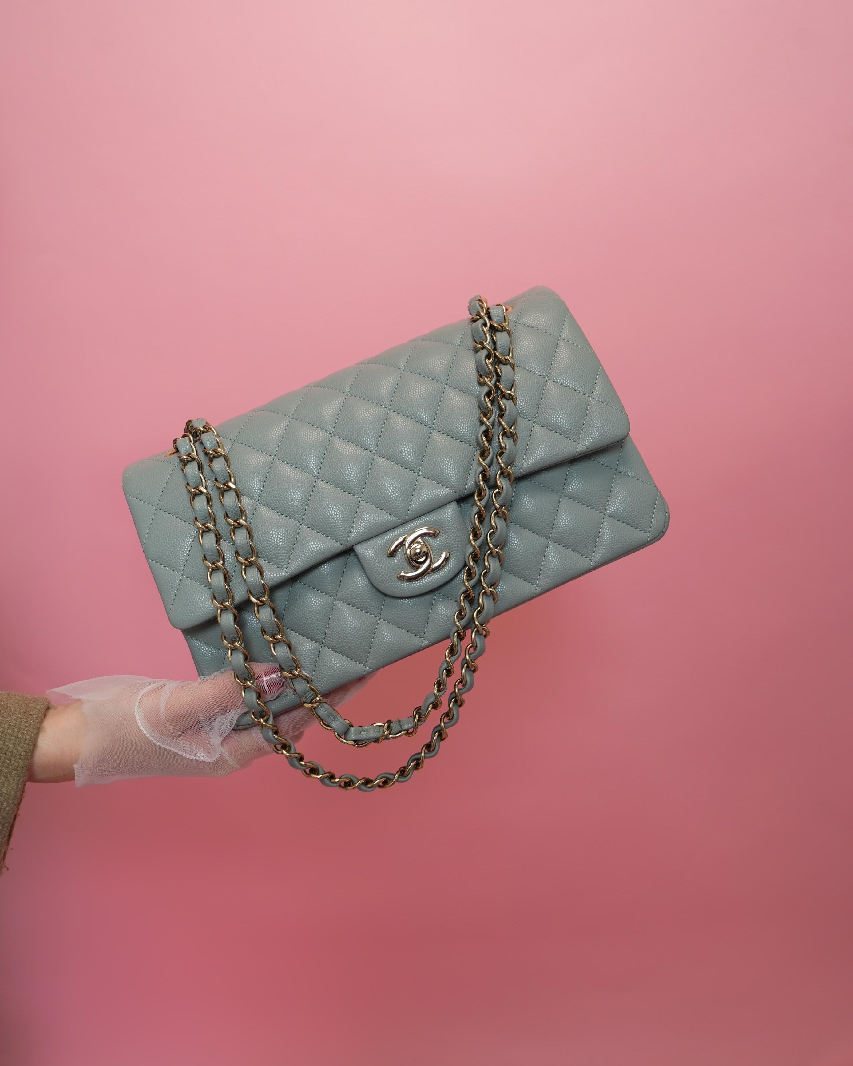 22C Light Green Caviar Quilted Classic Flap Small Light Gold Hardware