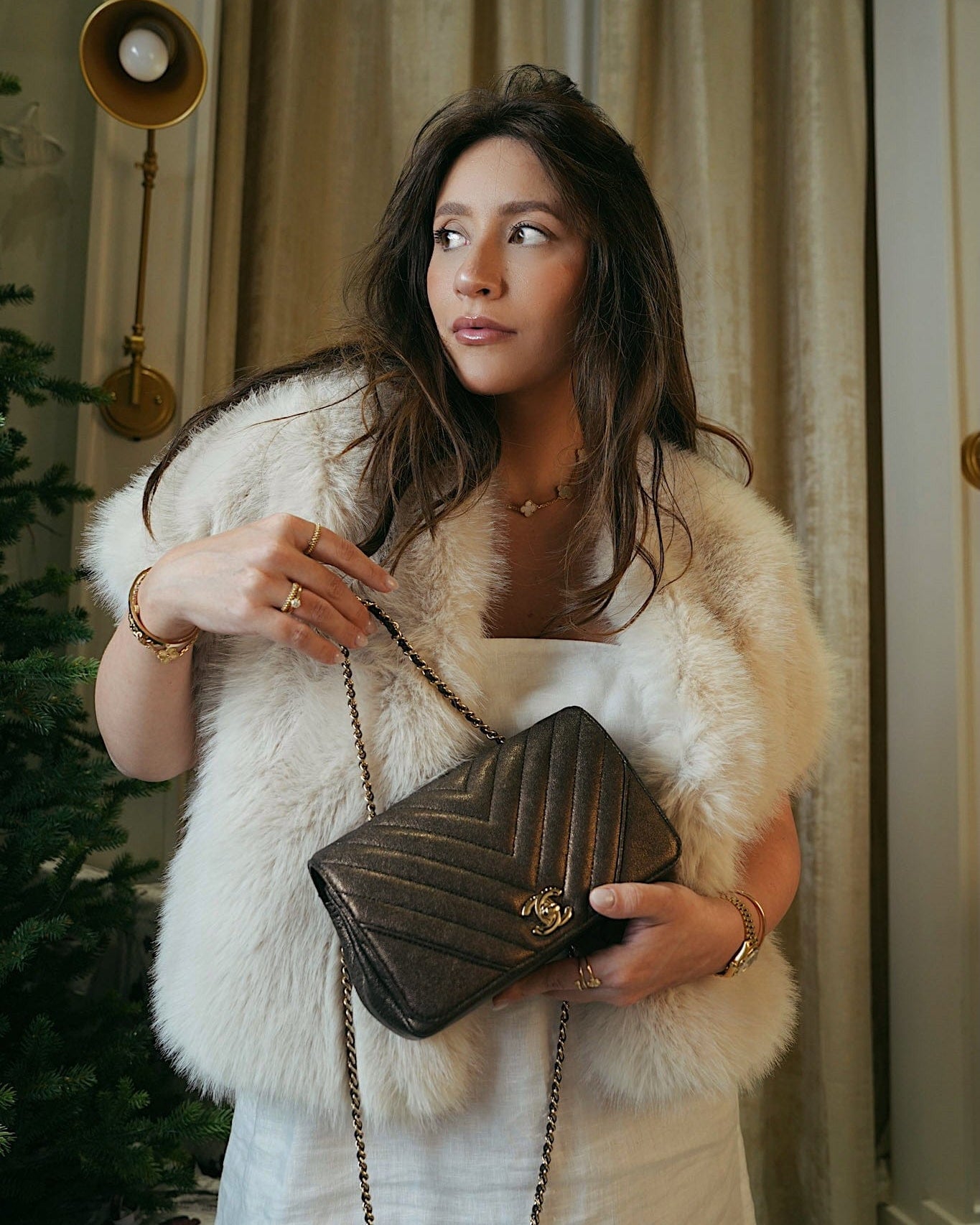19A Egyptian Tweed Quilted Mini Rectangular Flap Light Gold Hardware