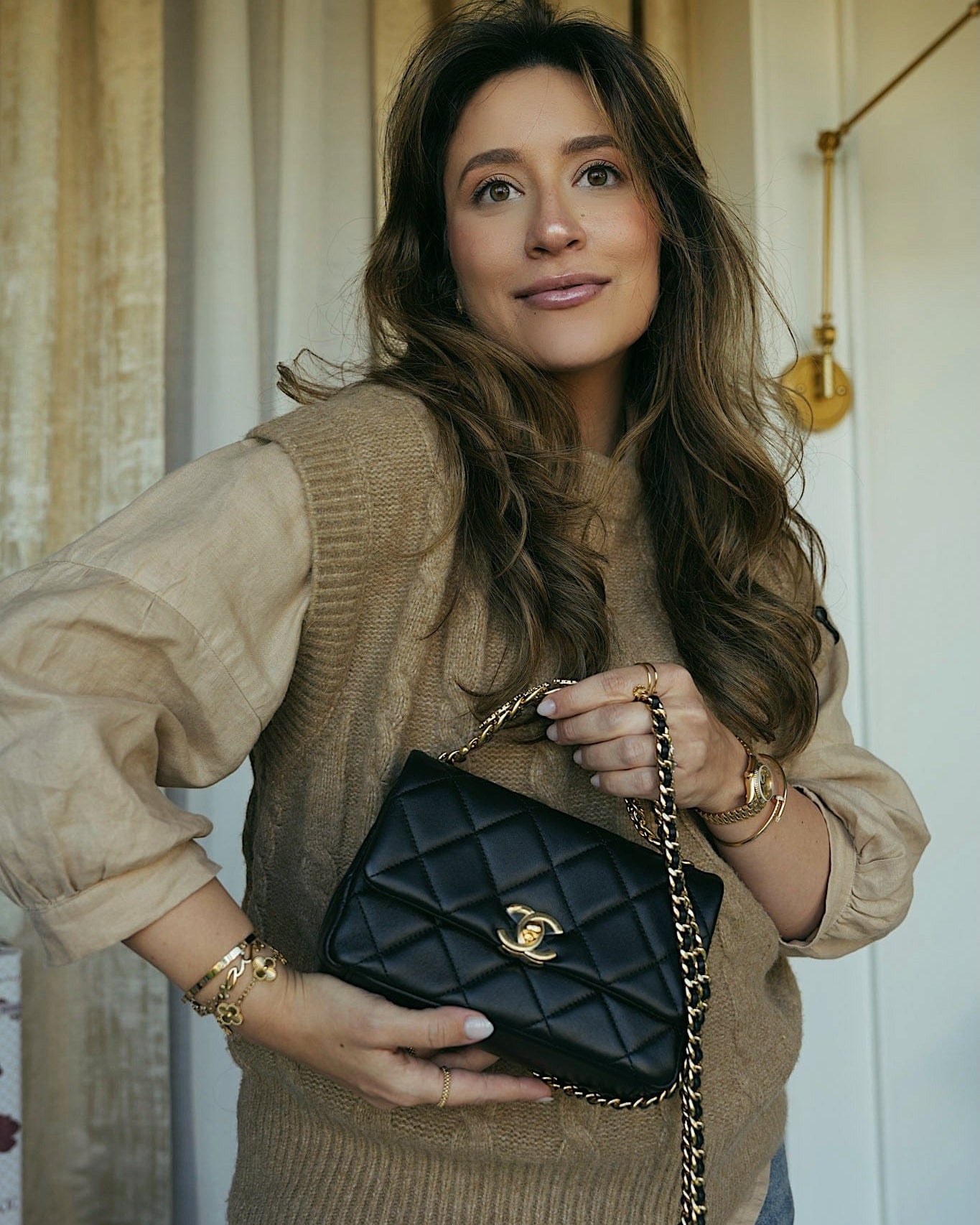 24B Black Lambskin Quilted CC Flap Bag Mini Aged Gold Hardware