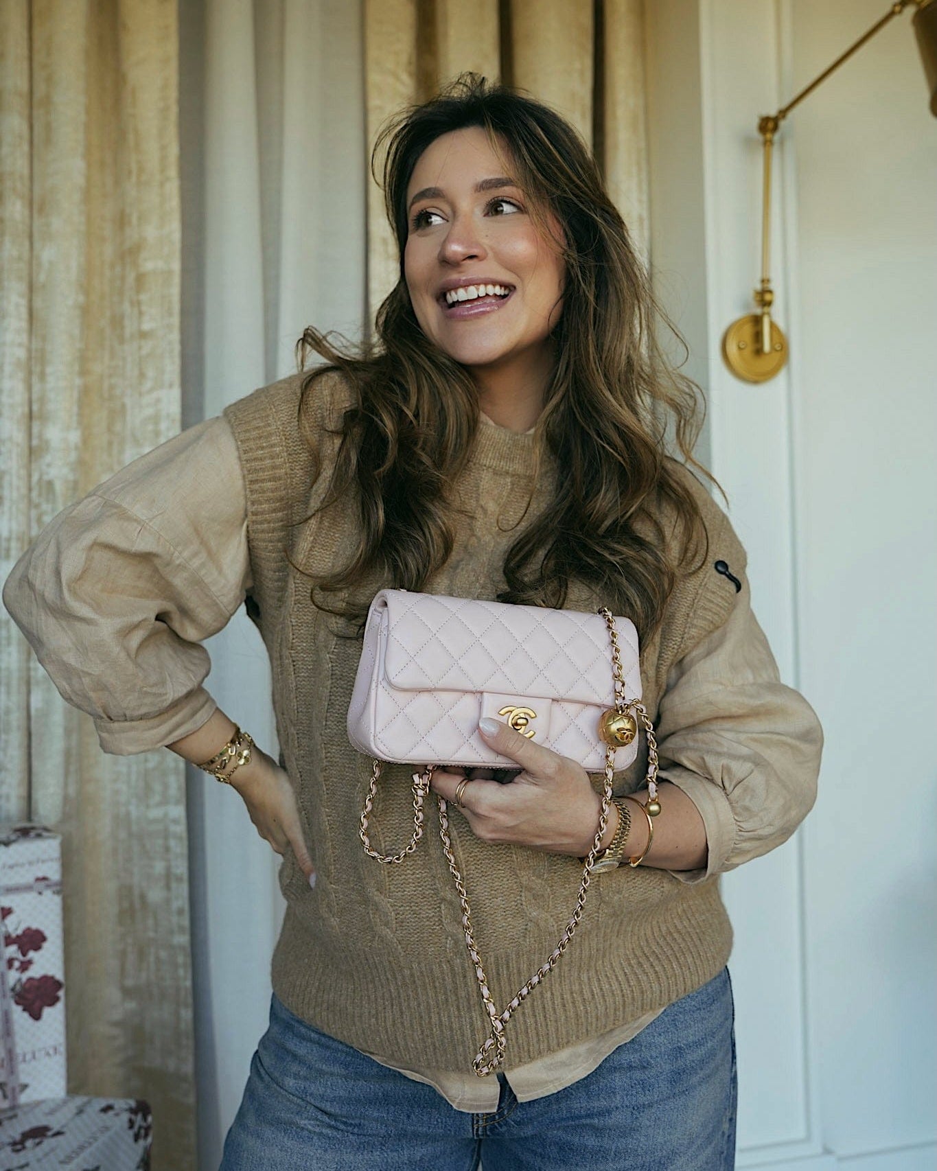24P Pearly Pink Charm Single Flap Aged Gold Hardware