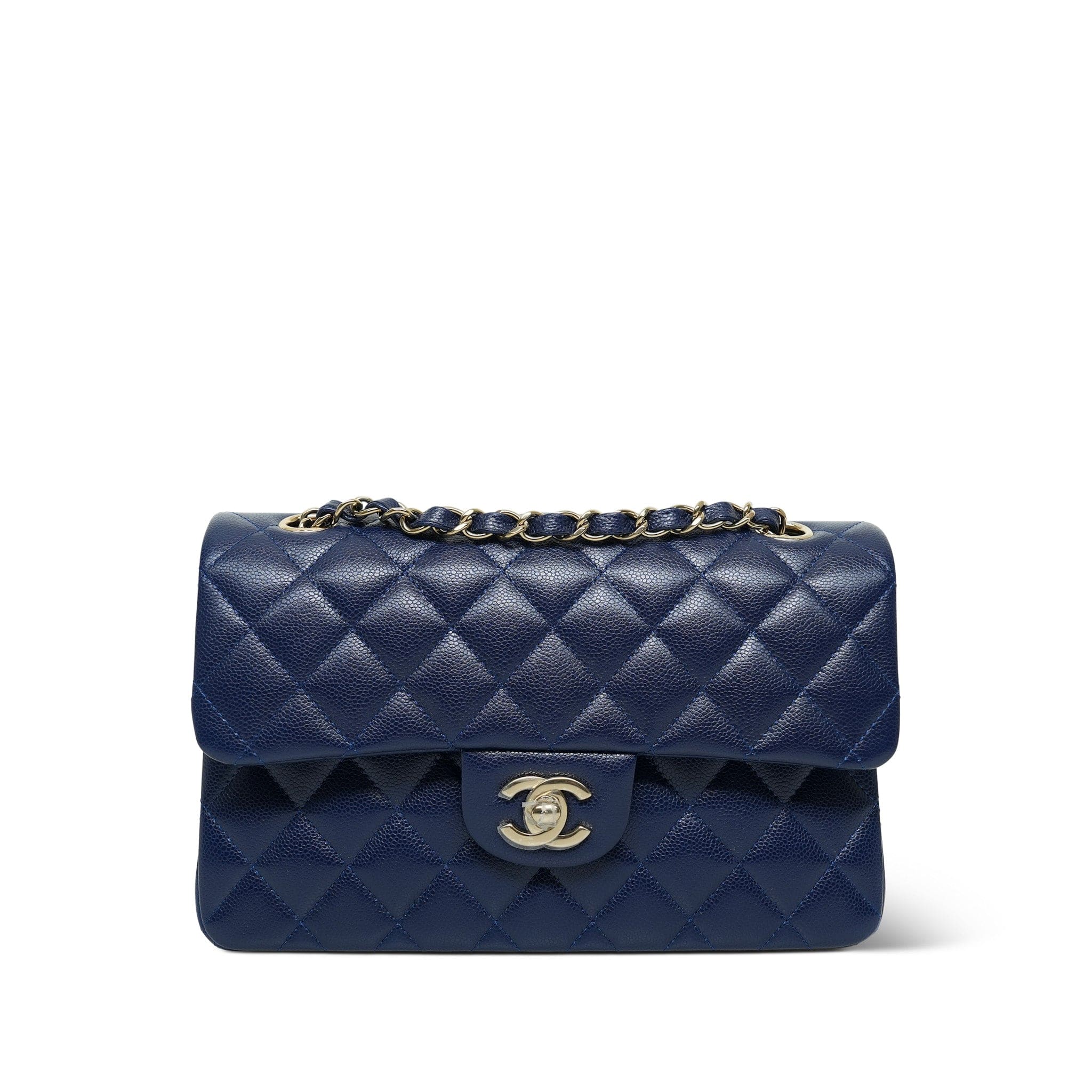 Navy Caviar Quilted Classic Flap Medium Light Gold Hardware