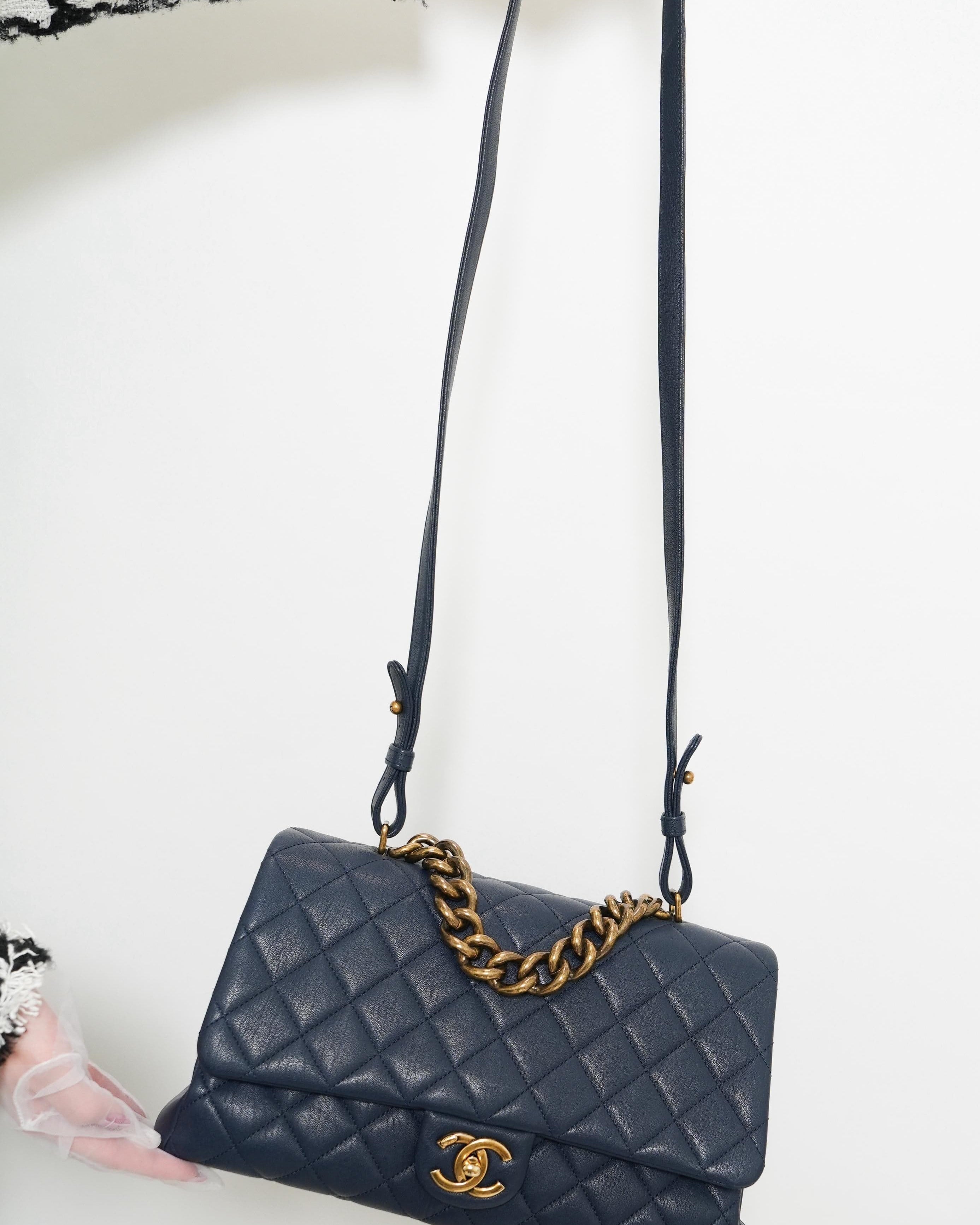 Navy Caviar Quilted Coco Handle Large Aged Gold Hardware