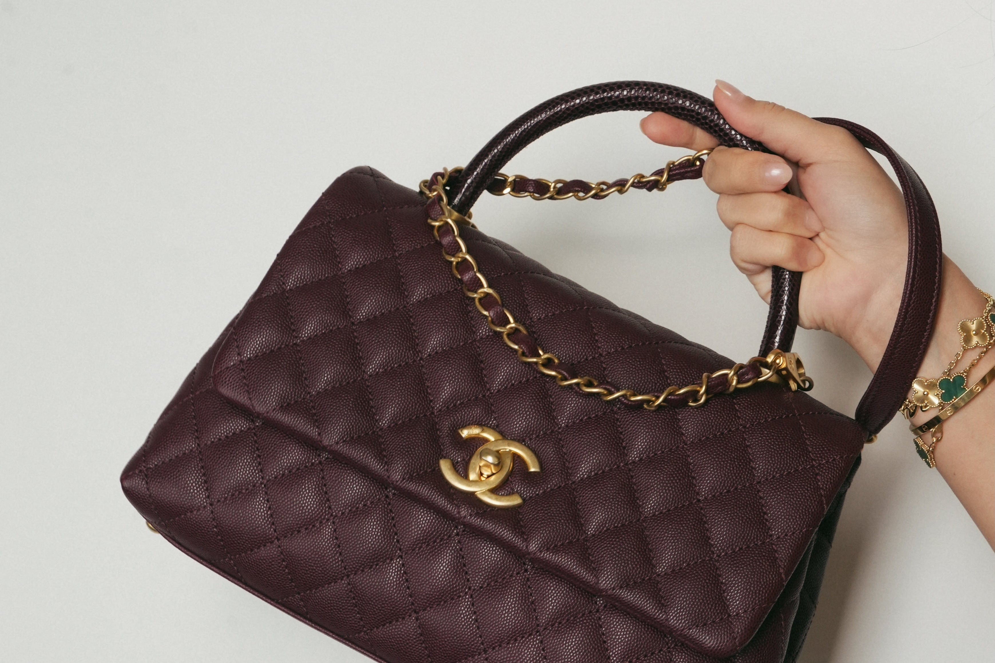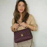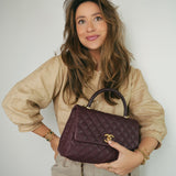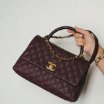 17B Burgundy Caviar Quilted Lizard Coco Handle Medium Aged Gold Hardware