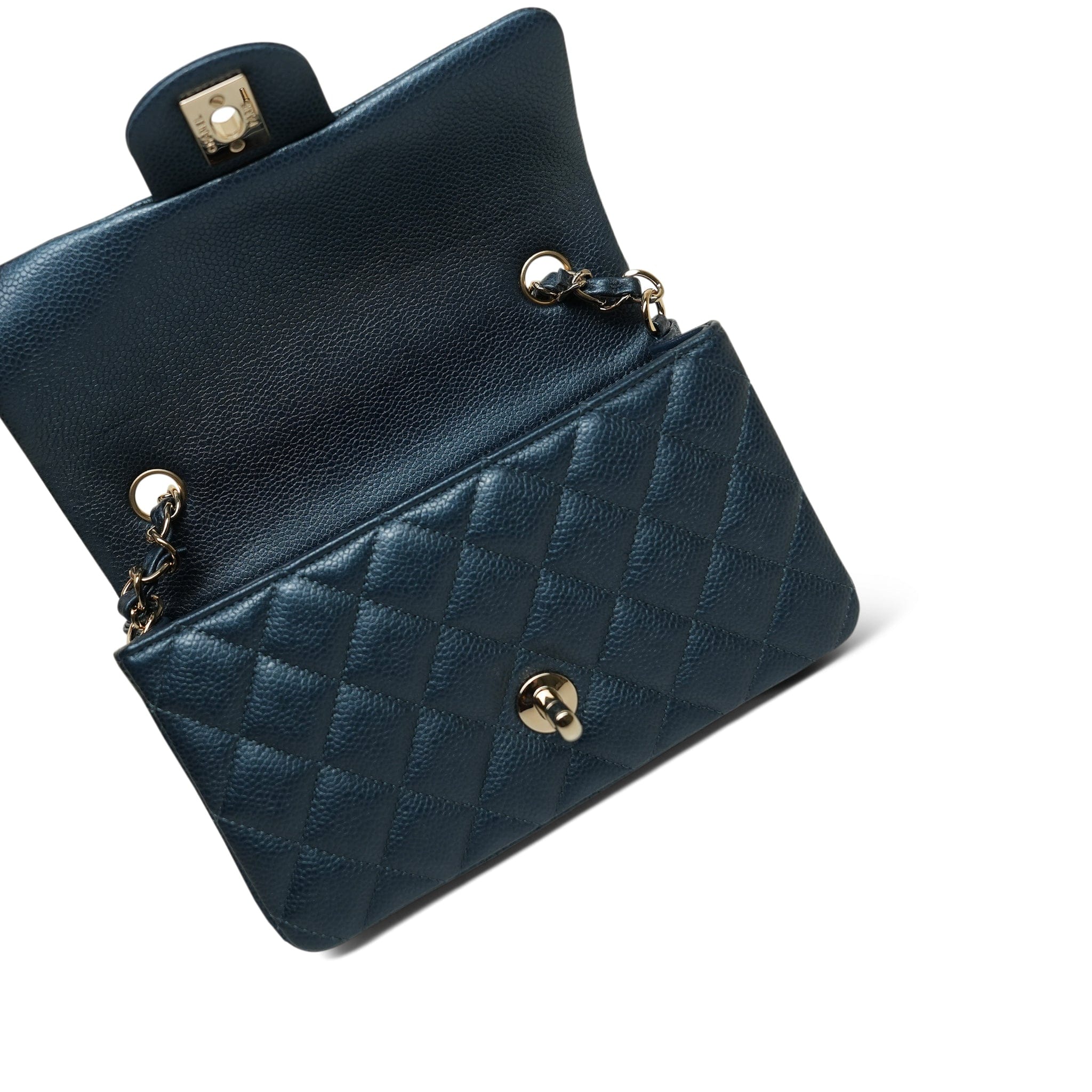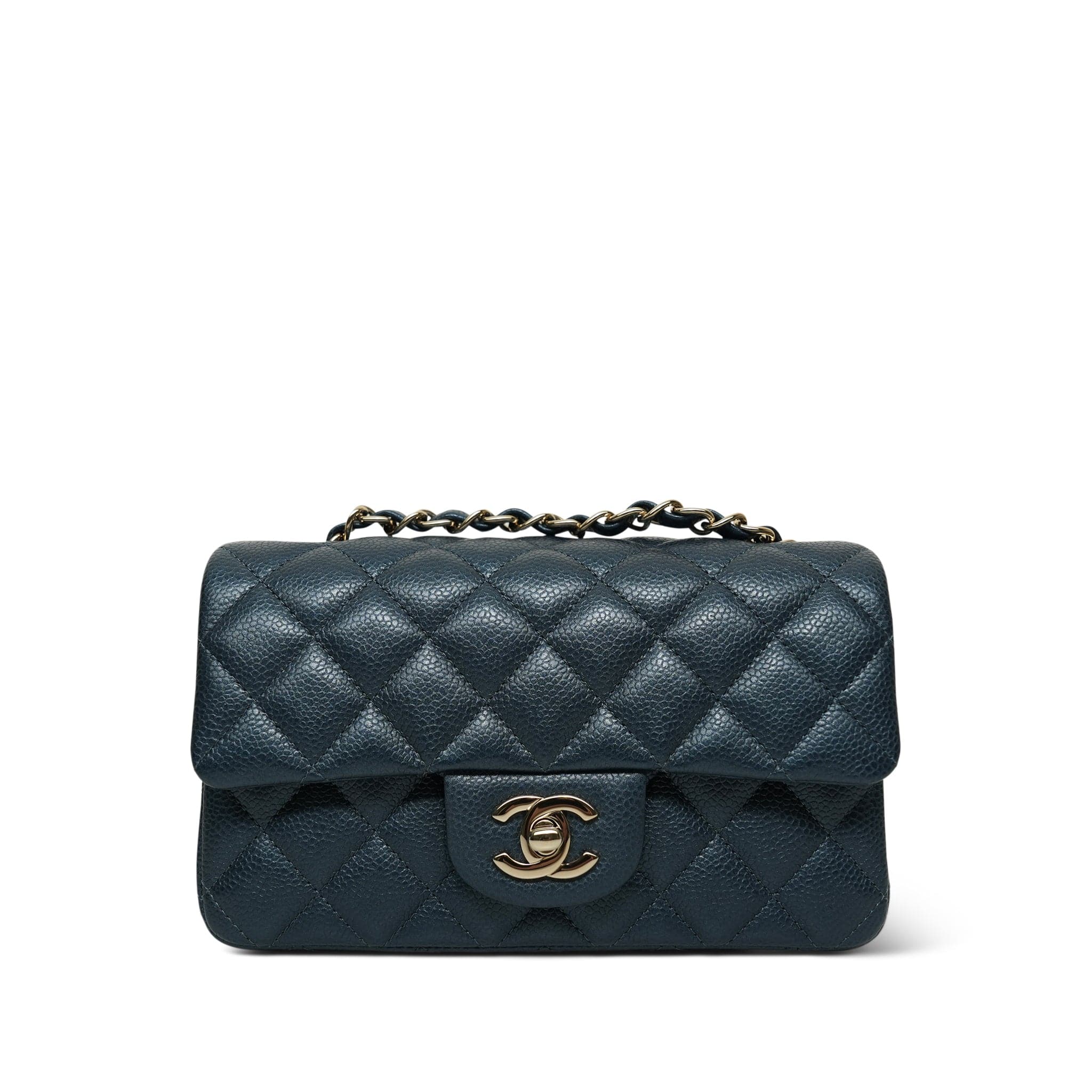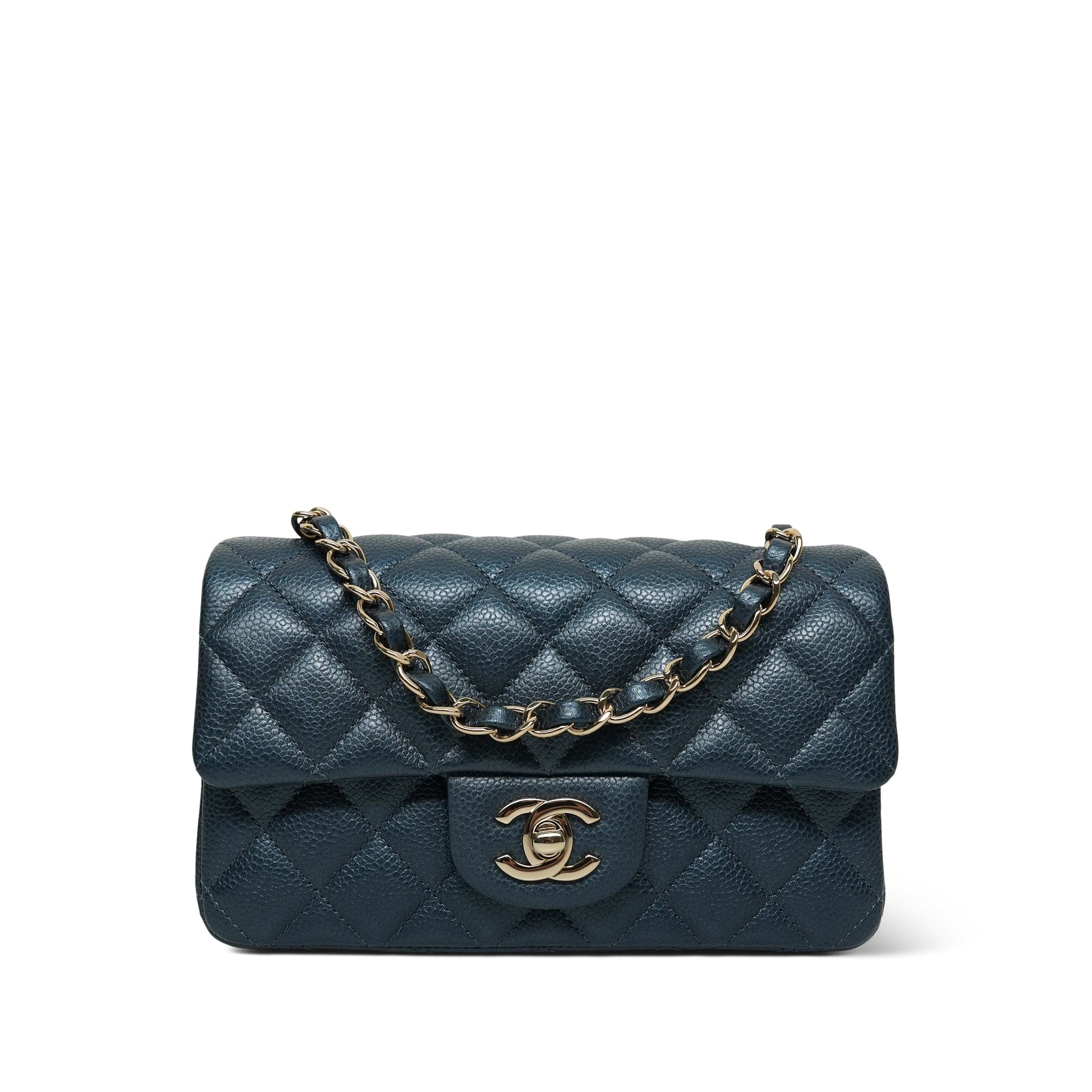 18S Iridescent Blue/ Navy Quilted Mini Rectangular Flap LGHW