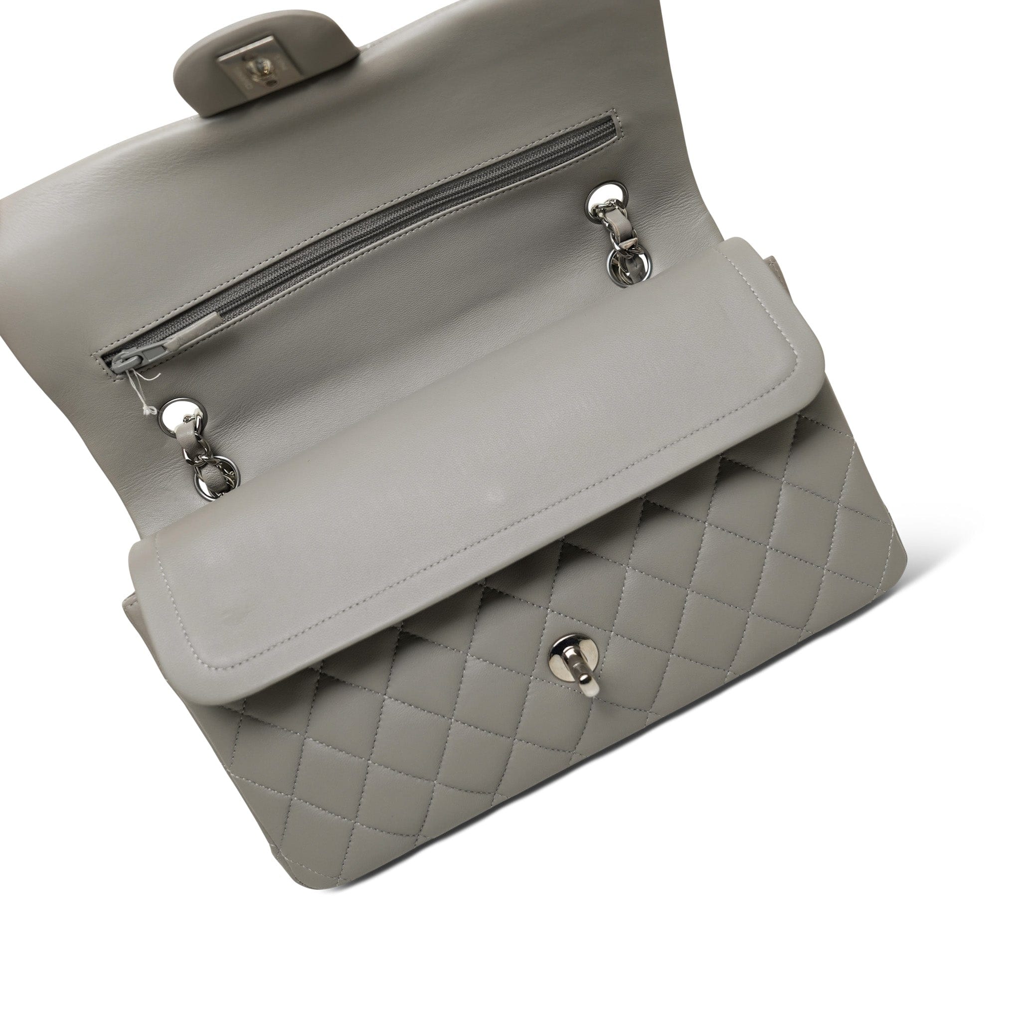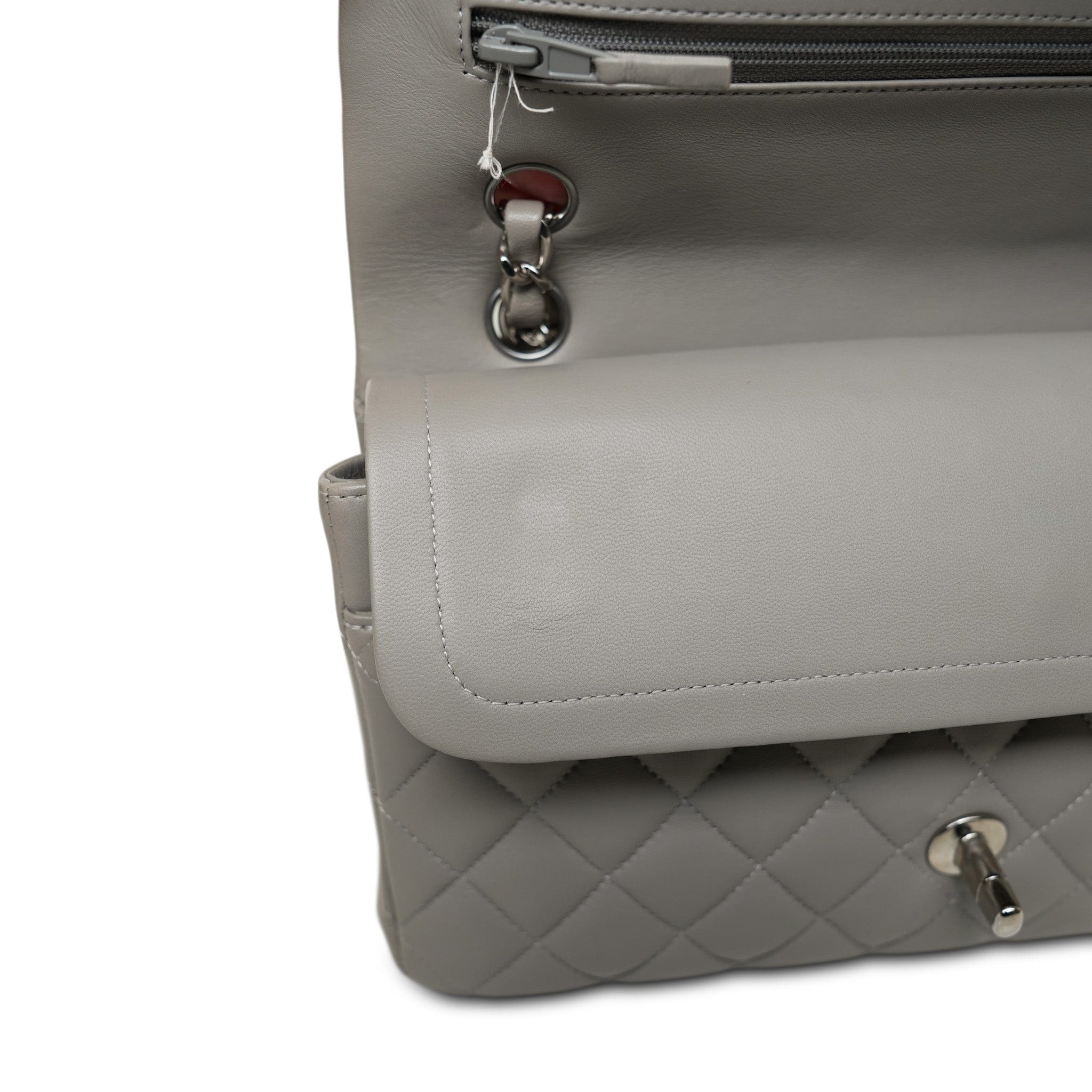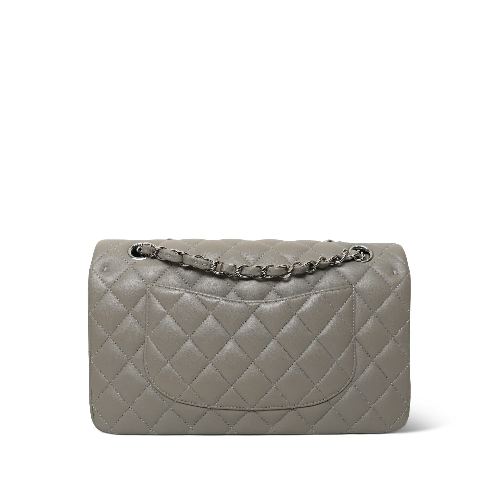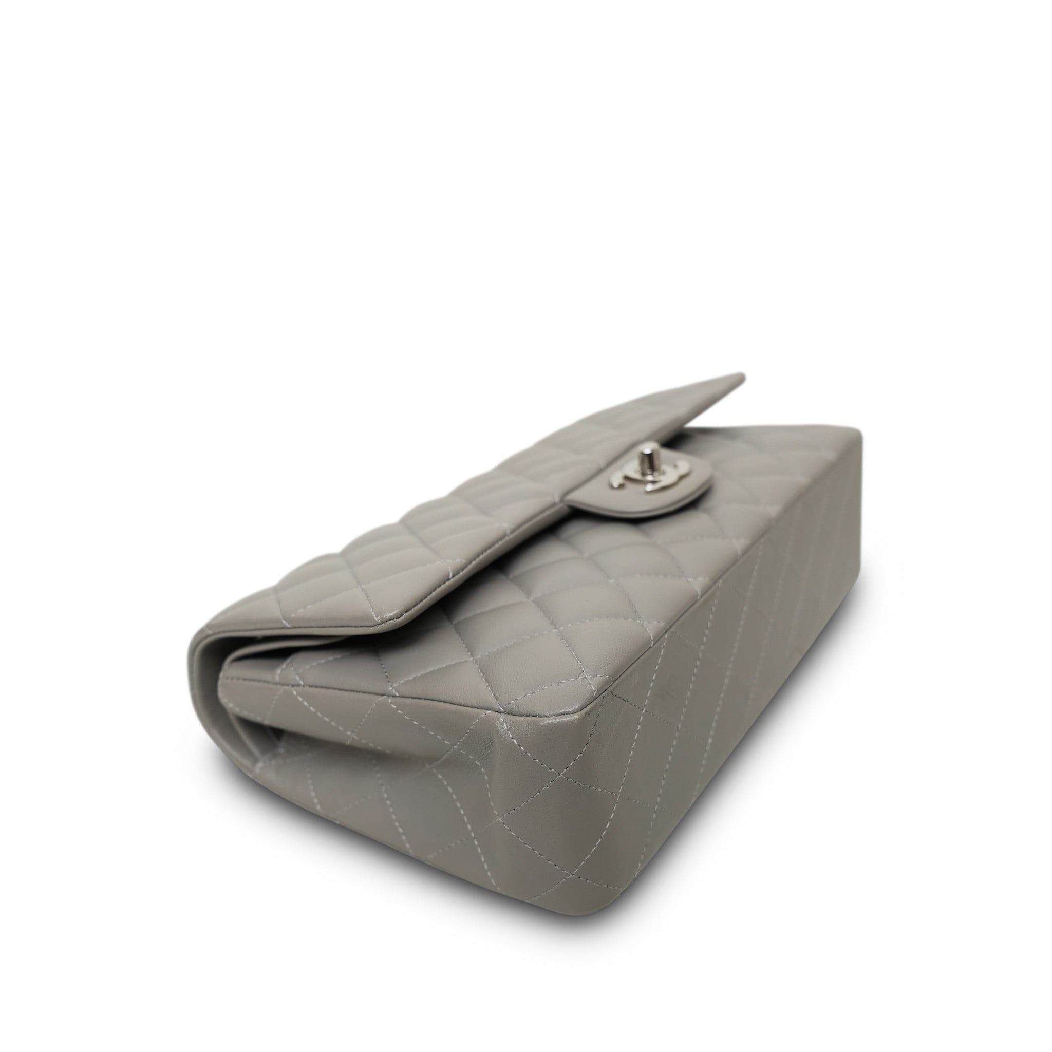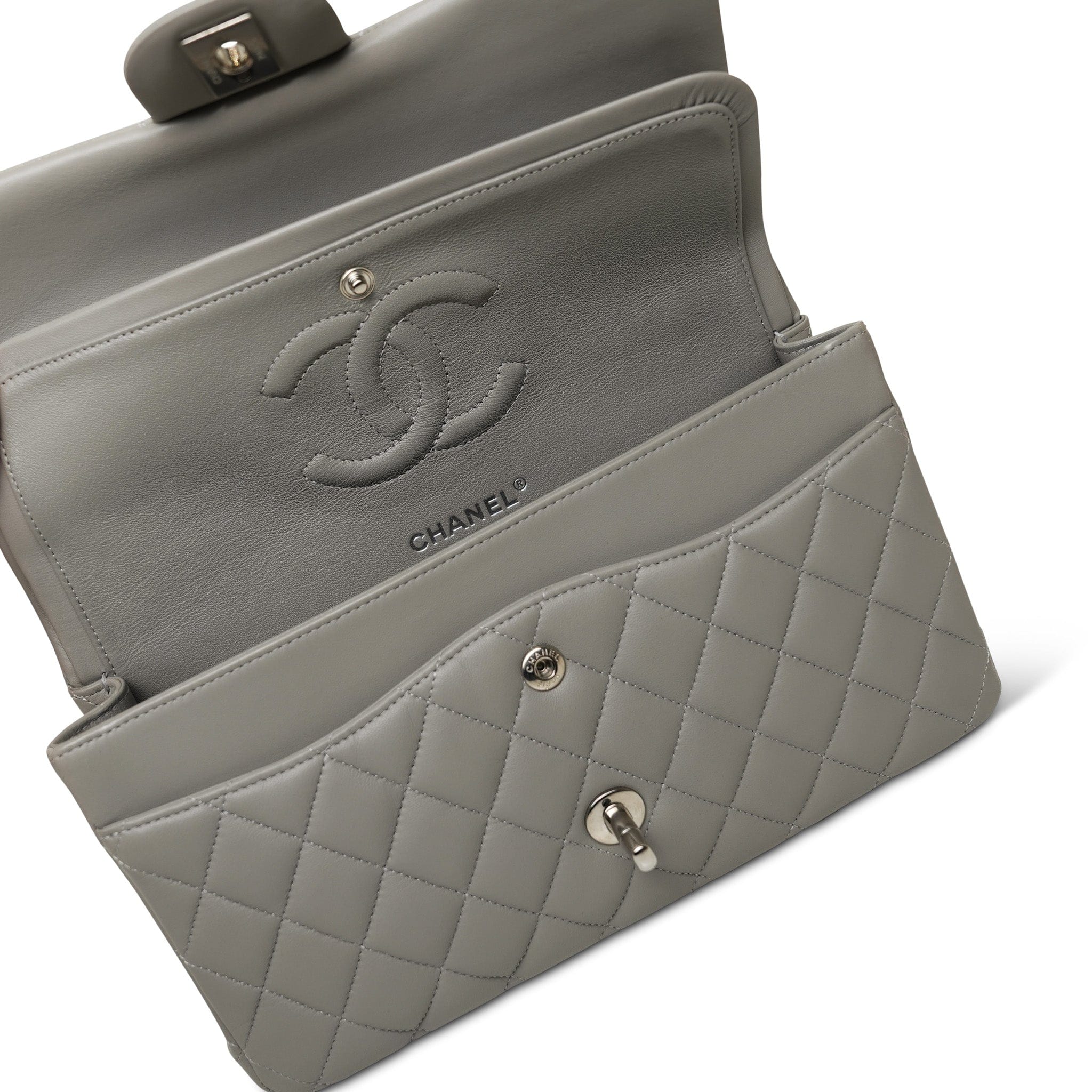 19B Grey Lambskin Quilted Classic Flap Medium Silver Hardware