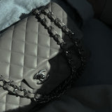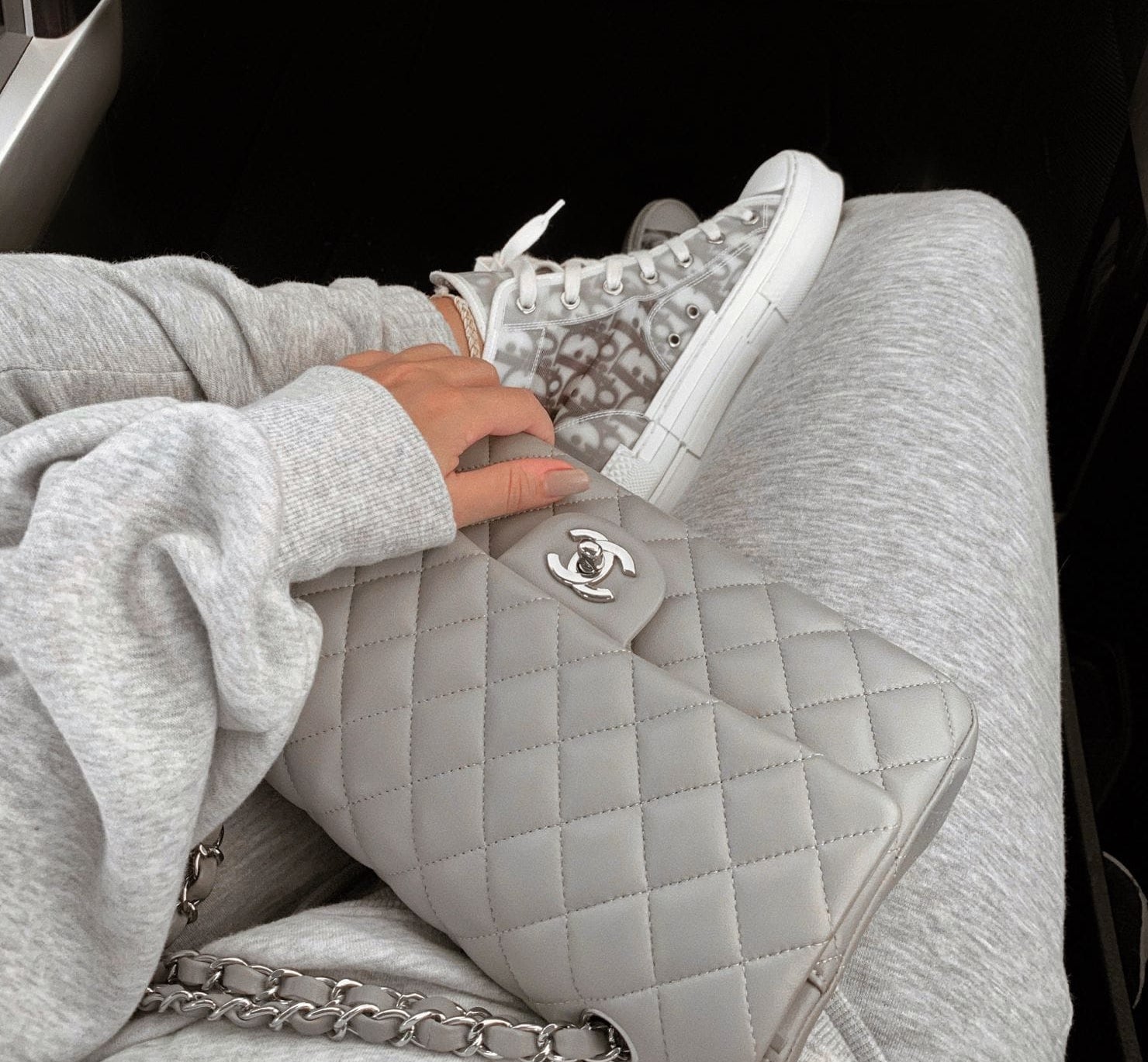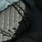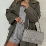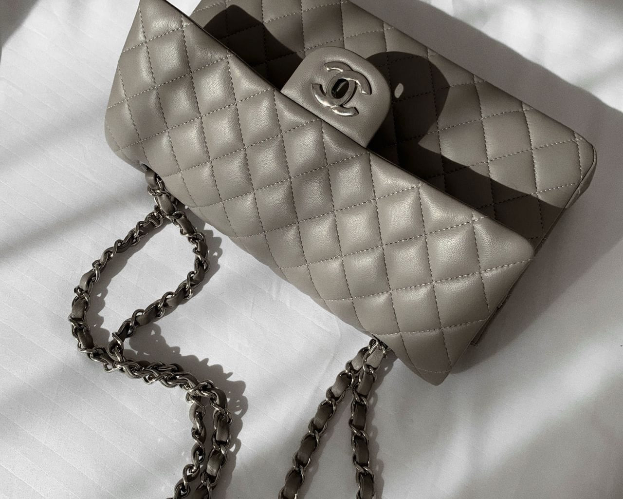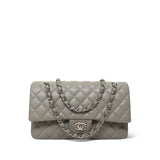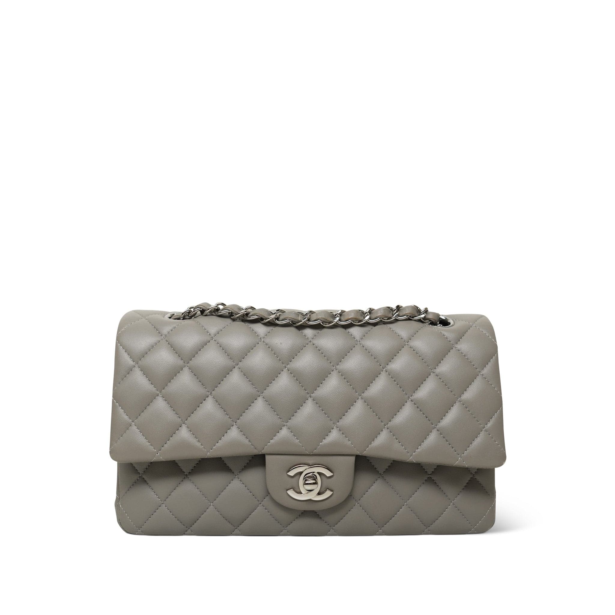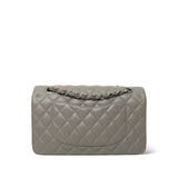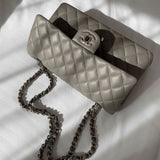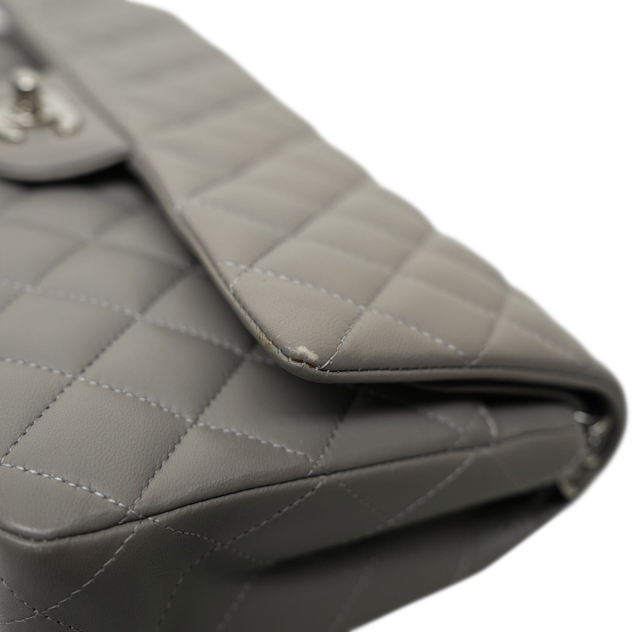 19B Grey Lambskin Quilted Classic Flap Medium Silver Hardware