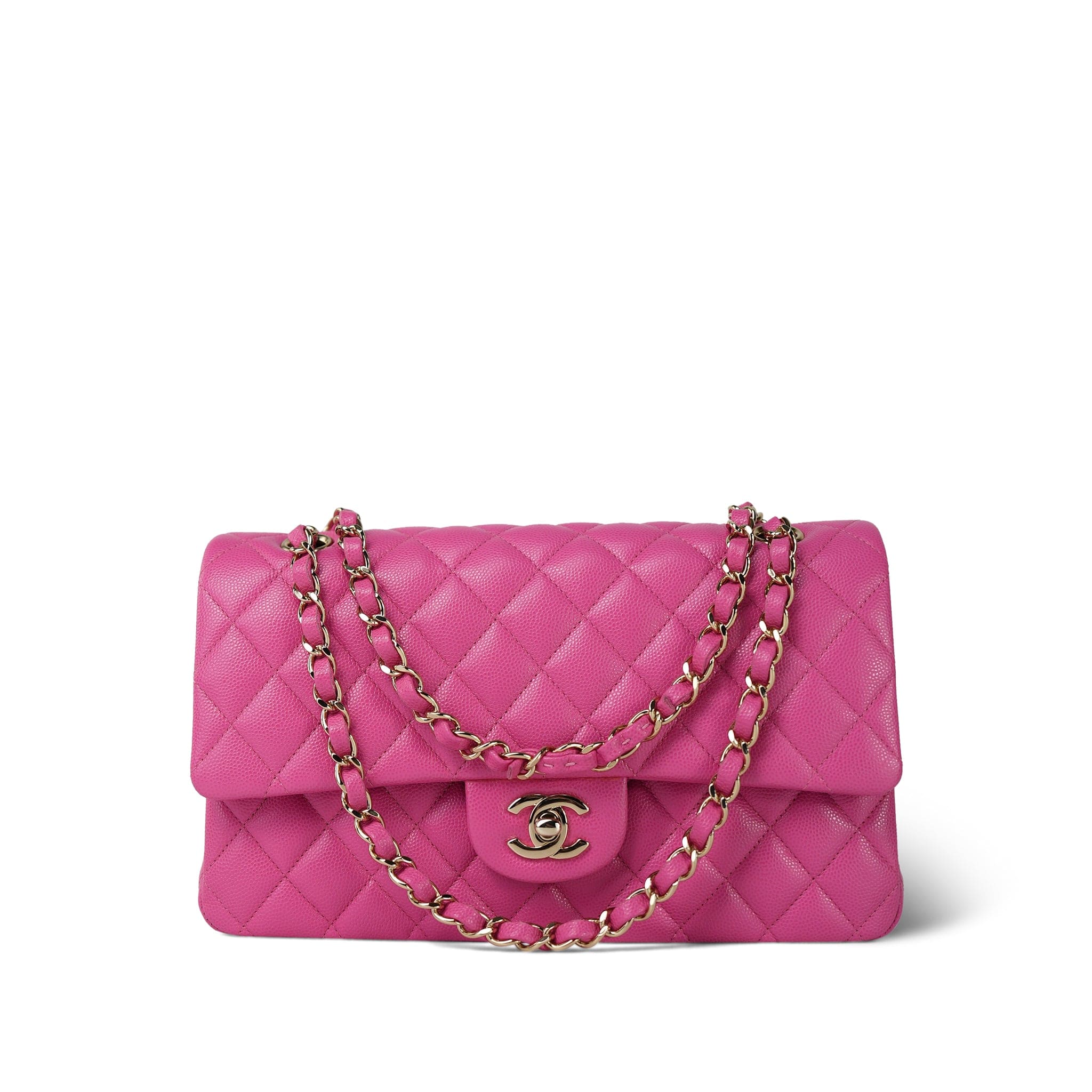 19C Pink Caviar Quilted Classic Flap Medium Light Gold Hardware