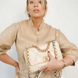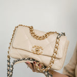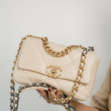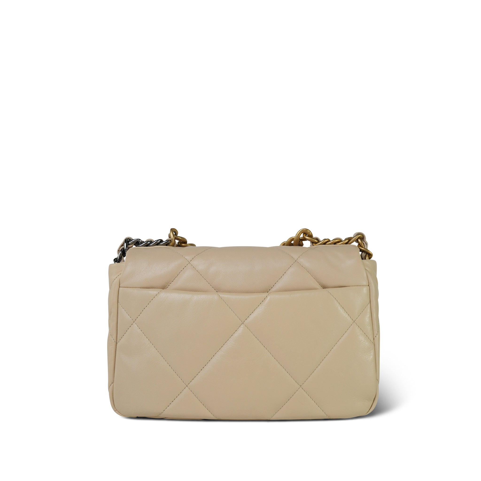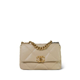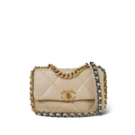20A Beige Goatskin Quilted 19 Flap Small Mixed Hardware