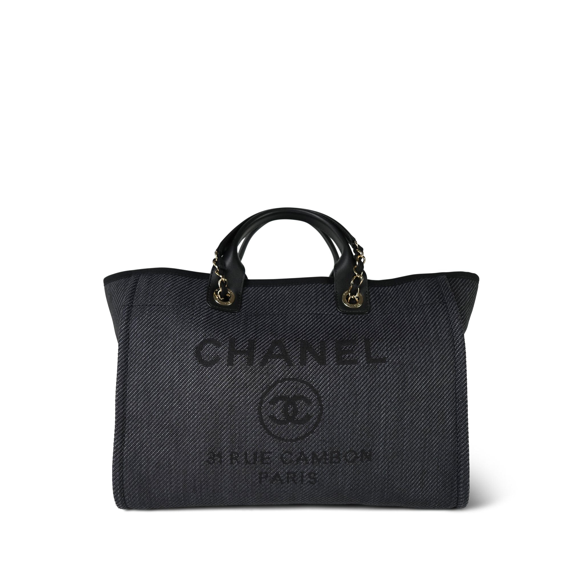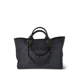 20A Black Mixed Fibers Medium Deauville Tote Light Gold Hardware