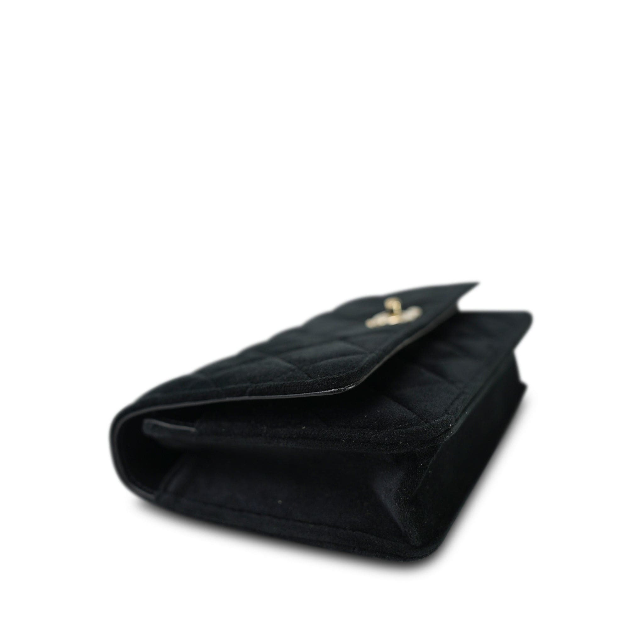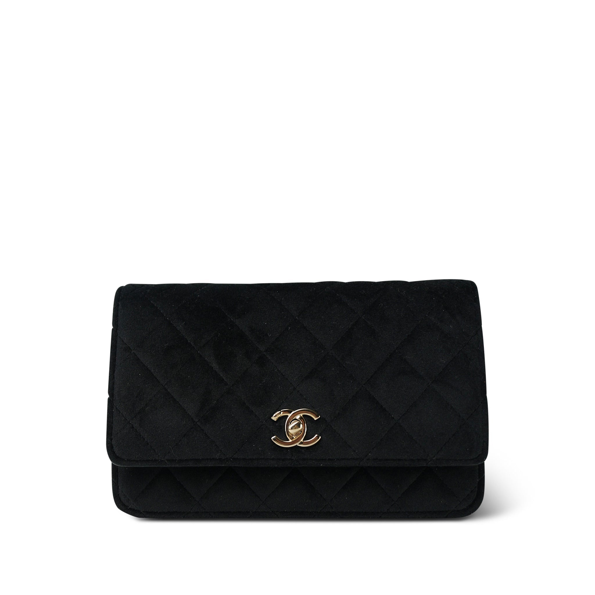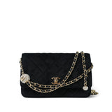 20A Black Velvet Quilted Crystal Pearl Crush Wallet On Chain WOC LGHW
