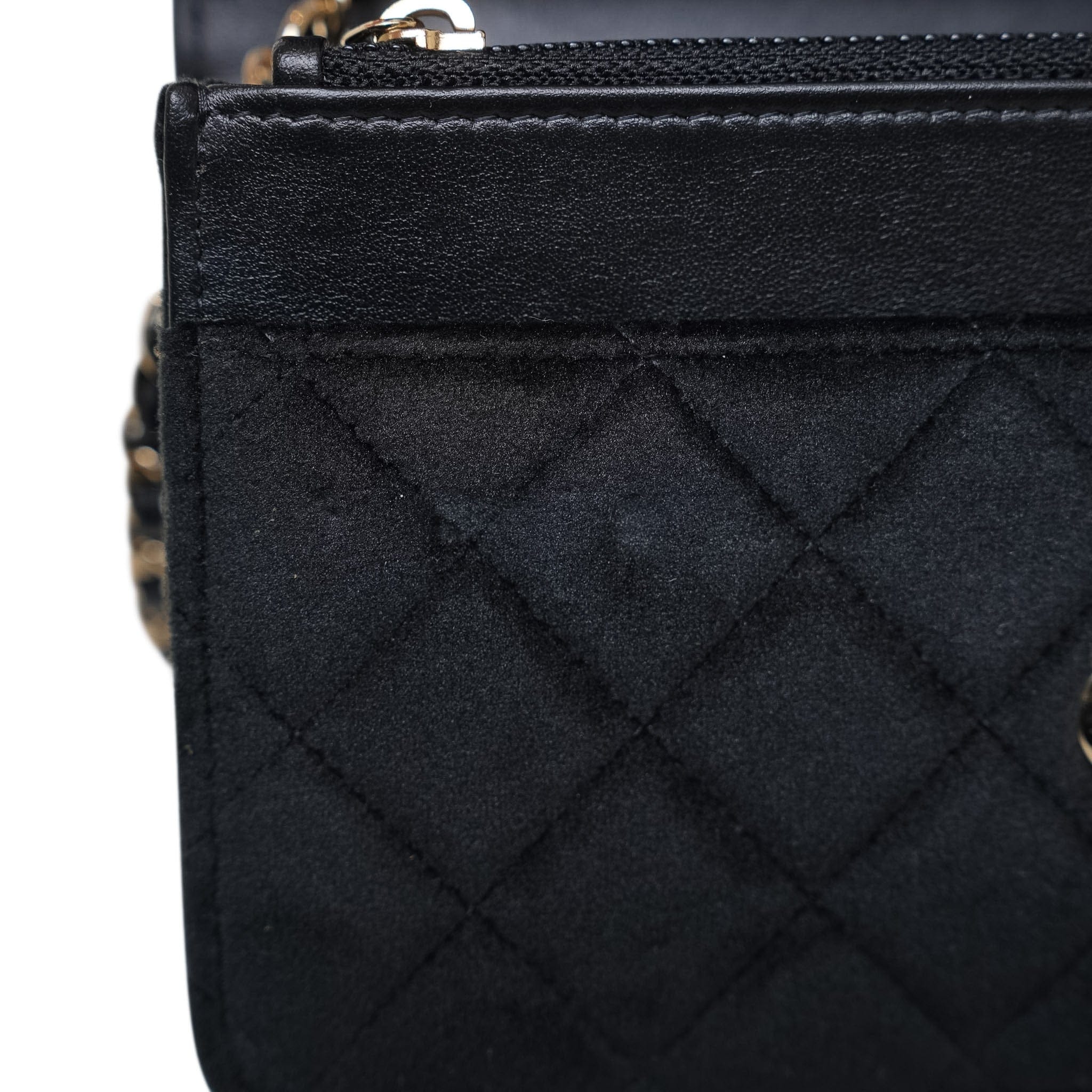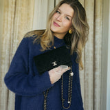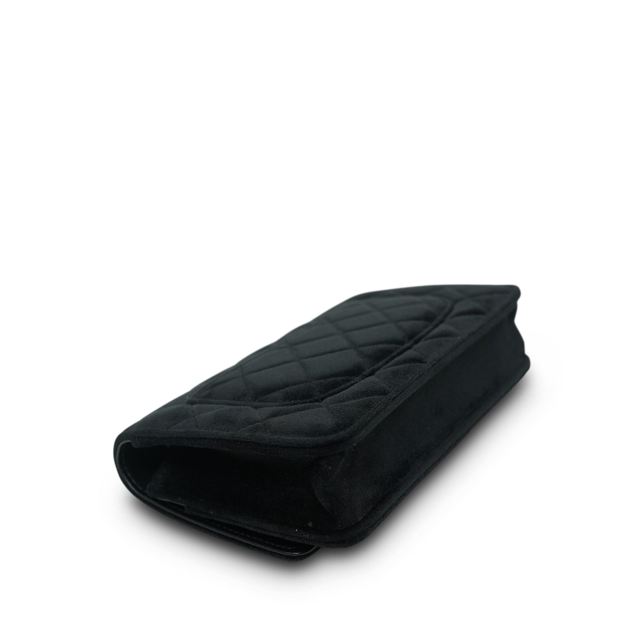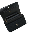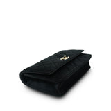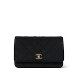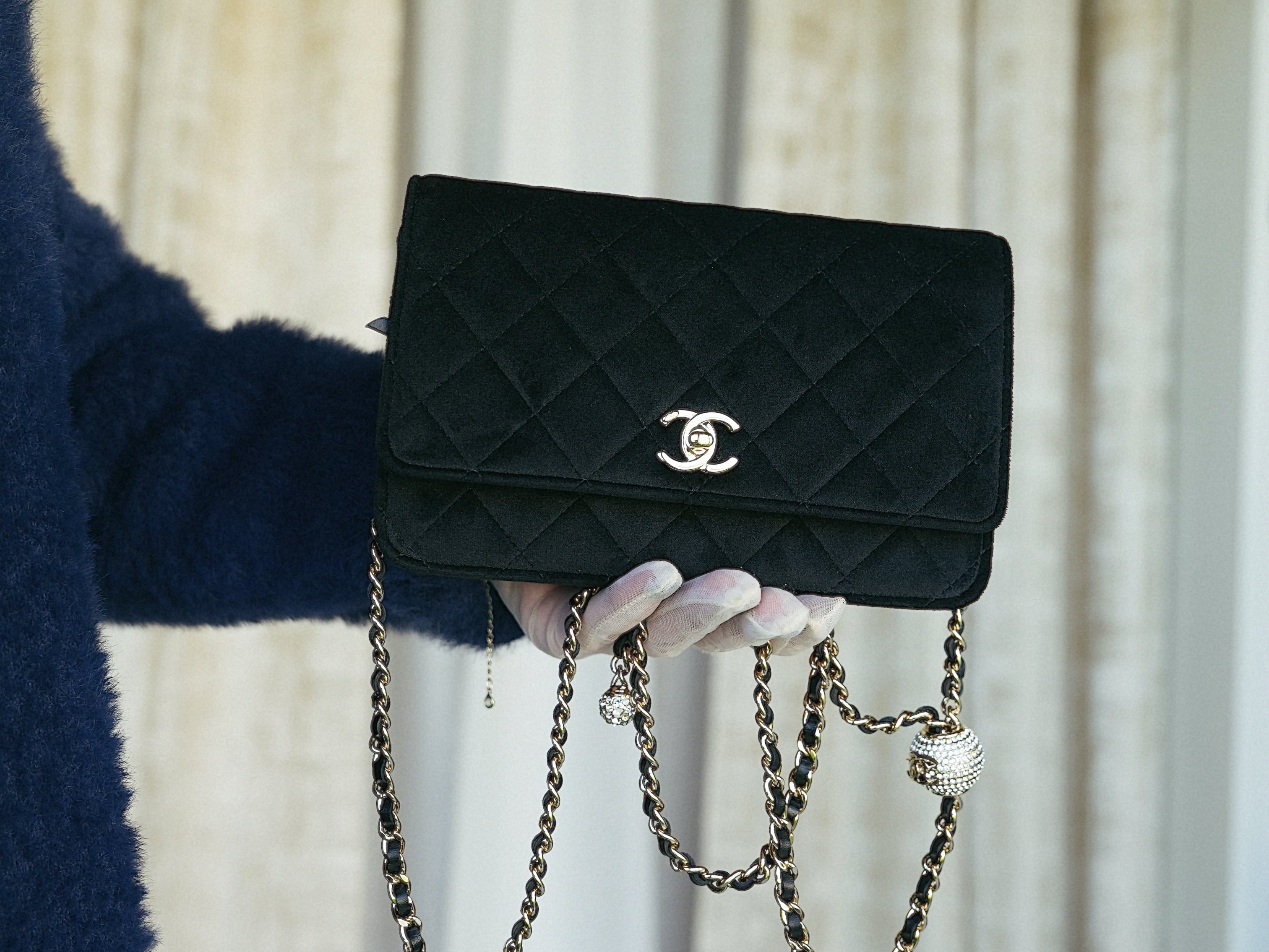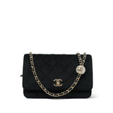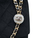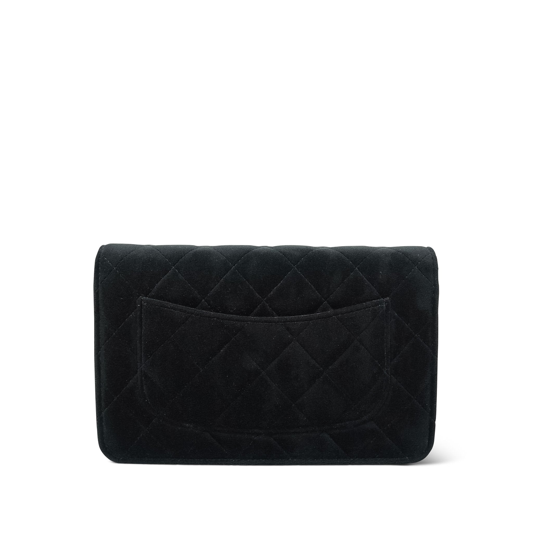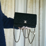 20A Black Velvet Quilted Crystal Pearl Crush Wallet On Chain WOC Light Gold Hardware