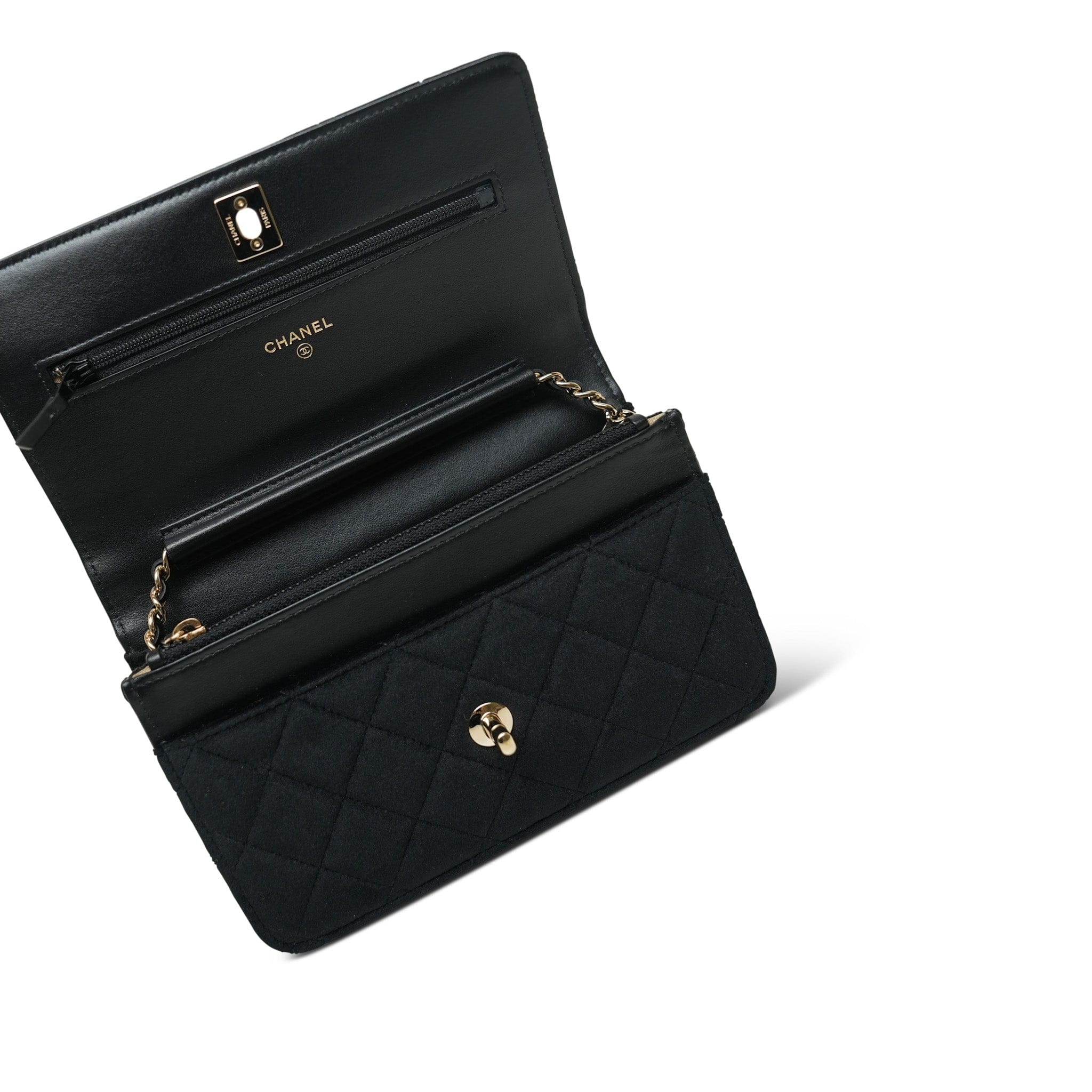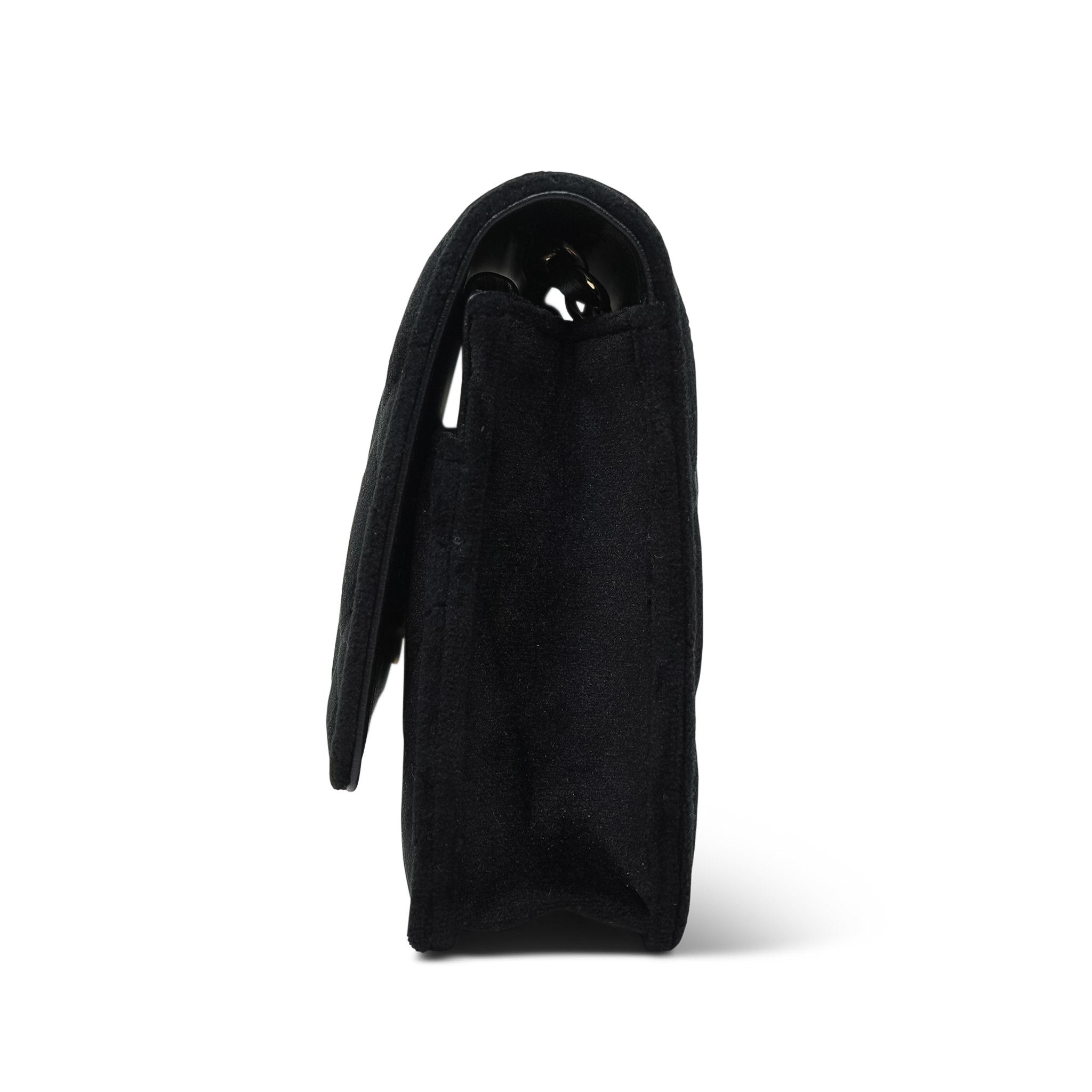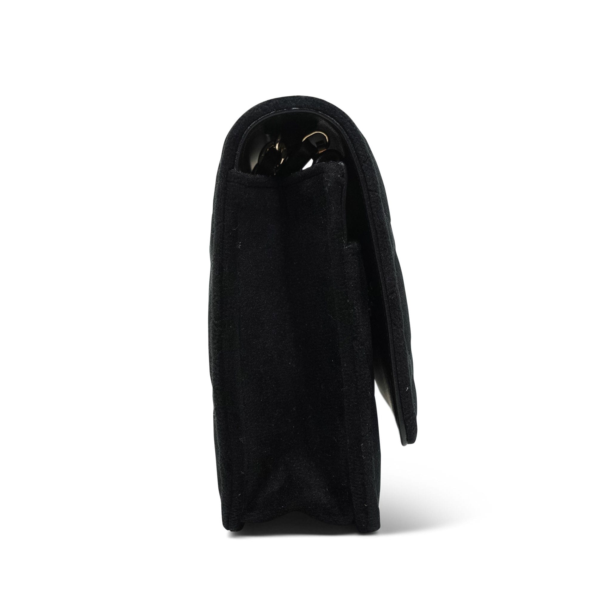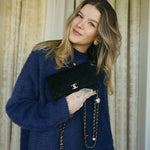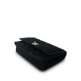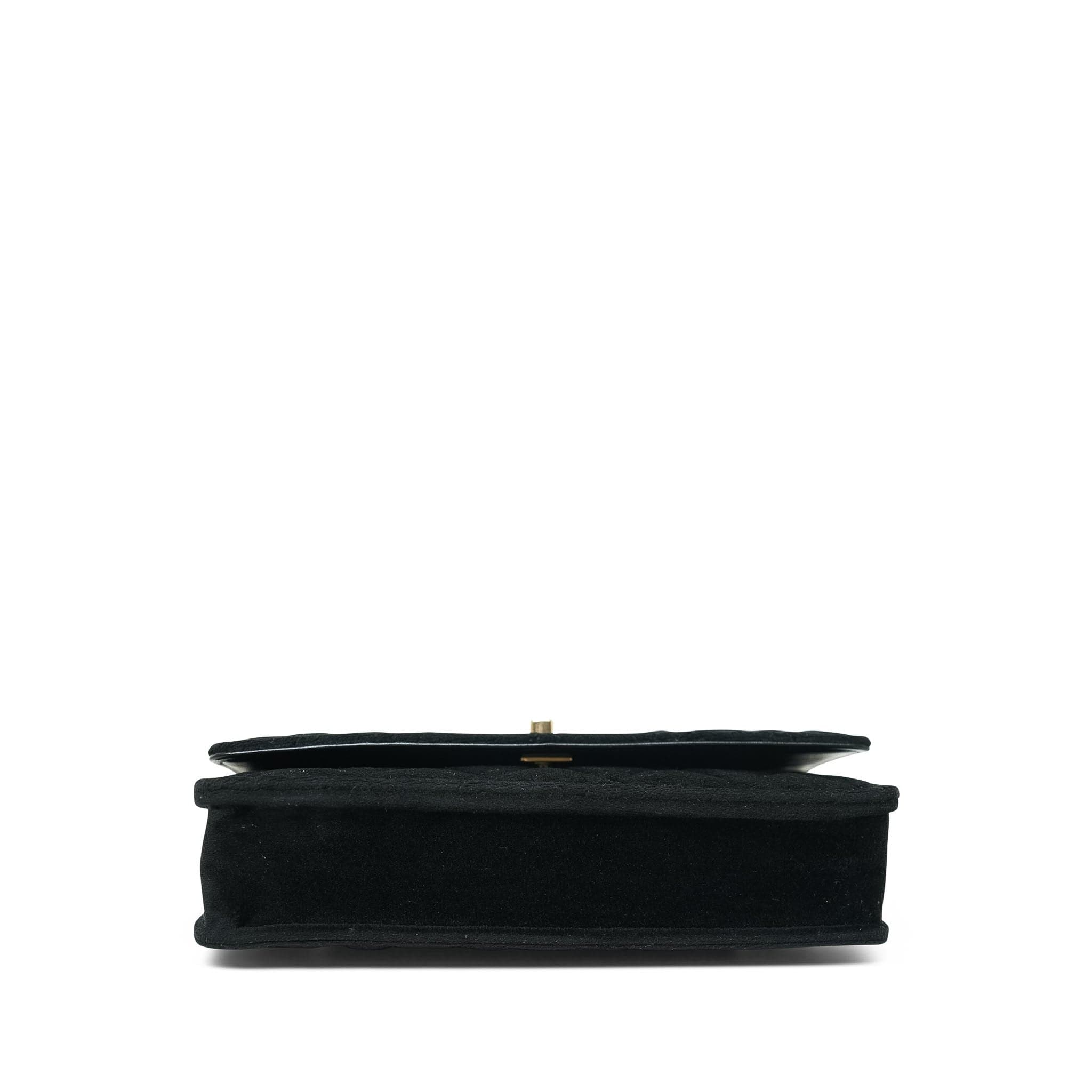 20A Black Velvet Quilted Crystal Pearl Crush Wallet On Chain WOC Light Gold Hardware