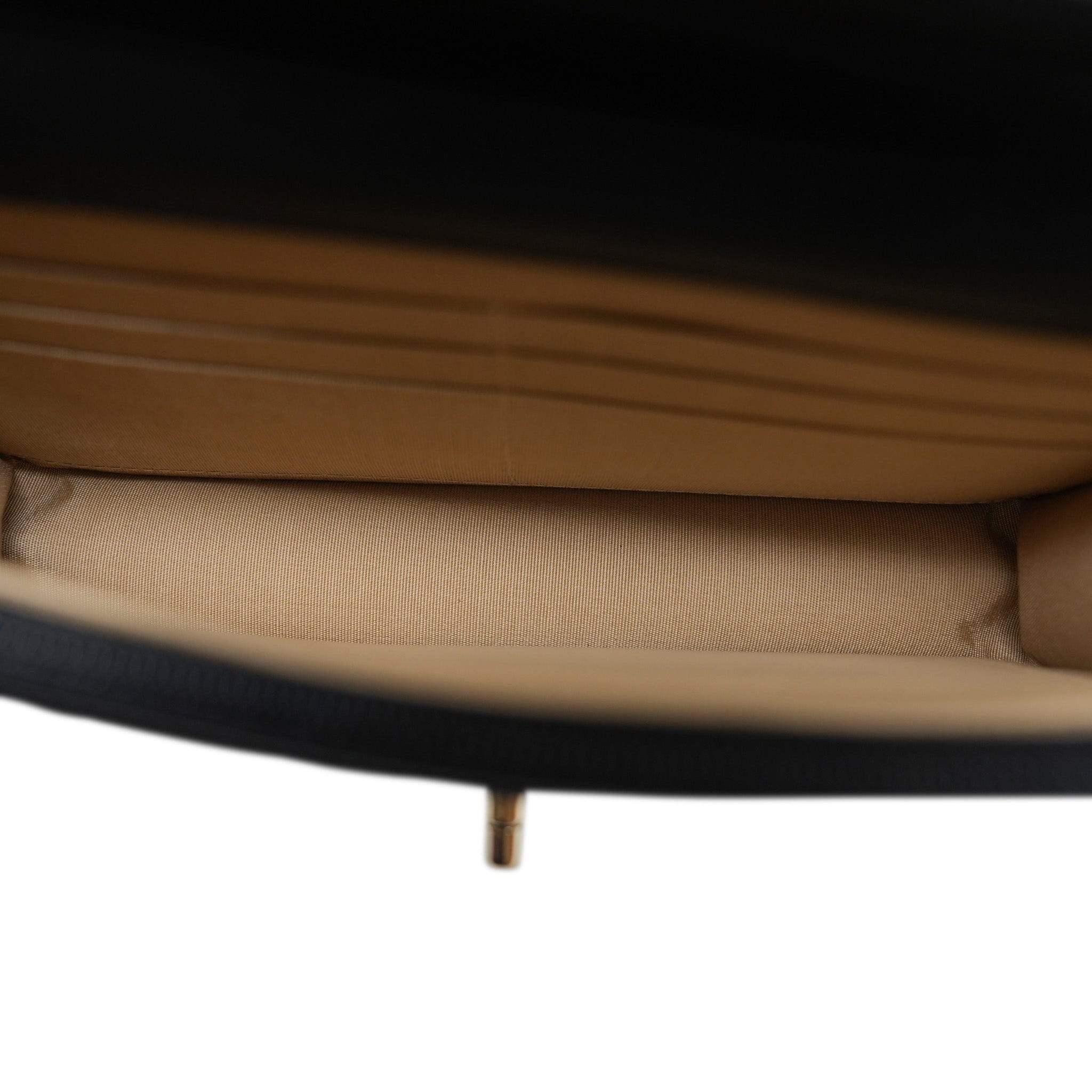 Condition: Excellent. Few impressions inside from chain. Scratches on hardware. Some discoloration on turnlock. Very minor impression from zipper. One broken crystal on pearl crush.