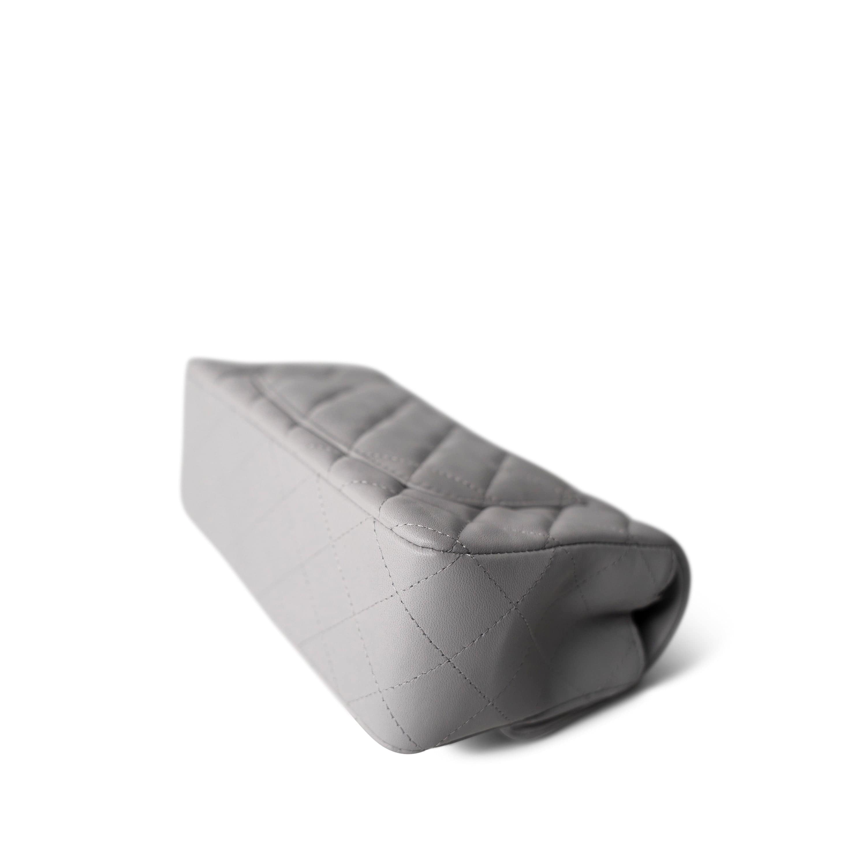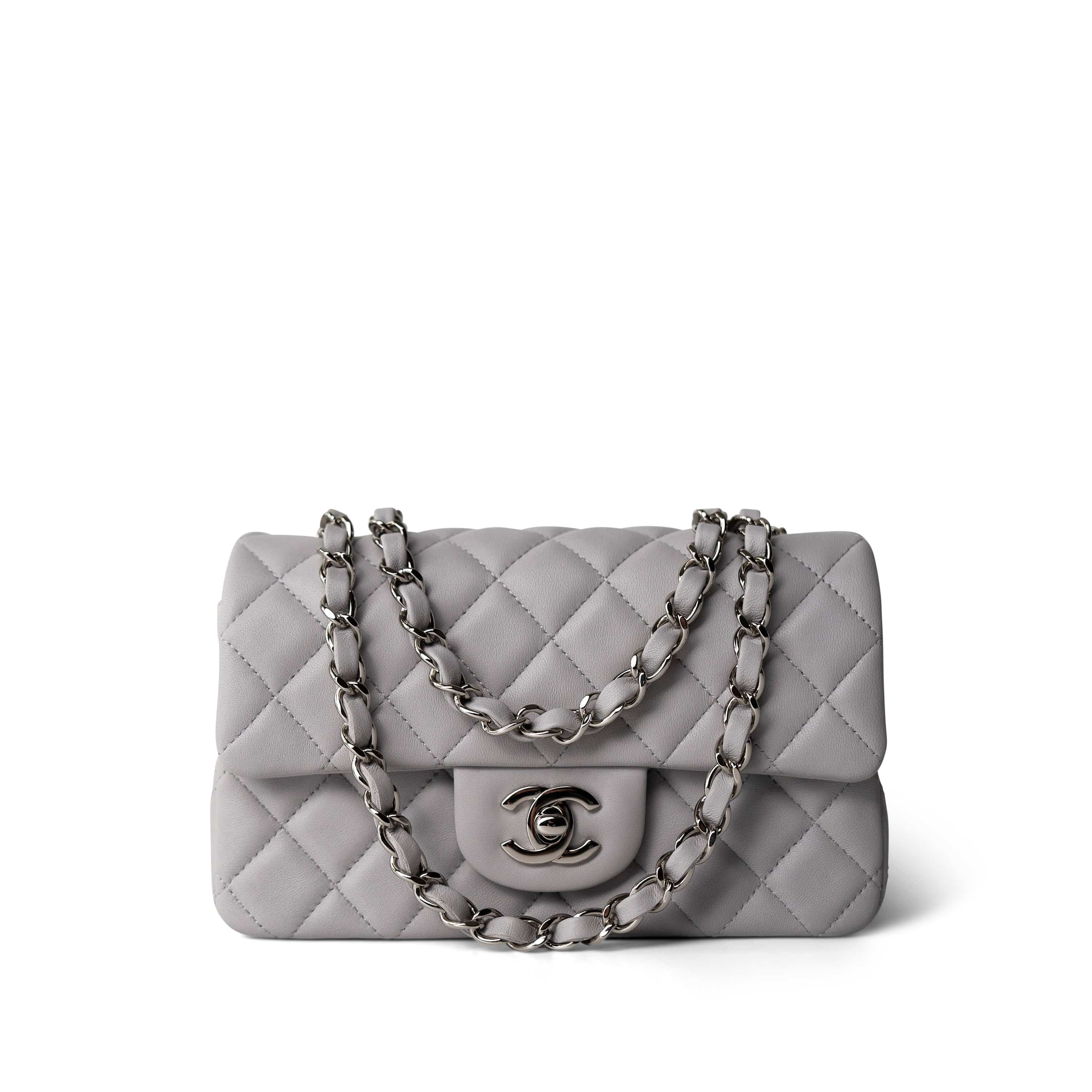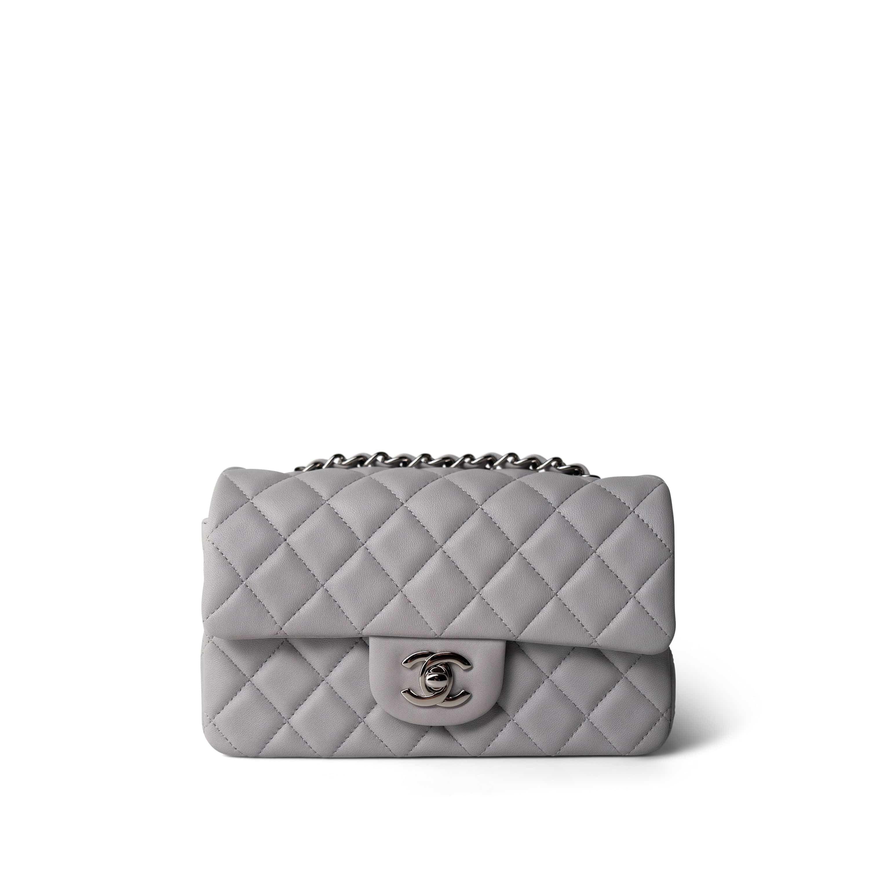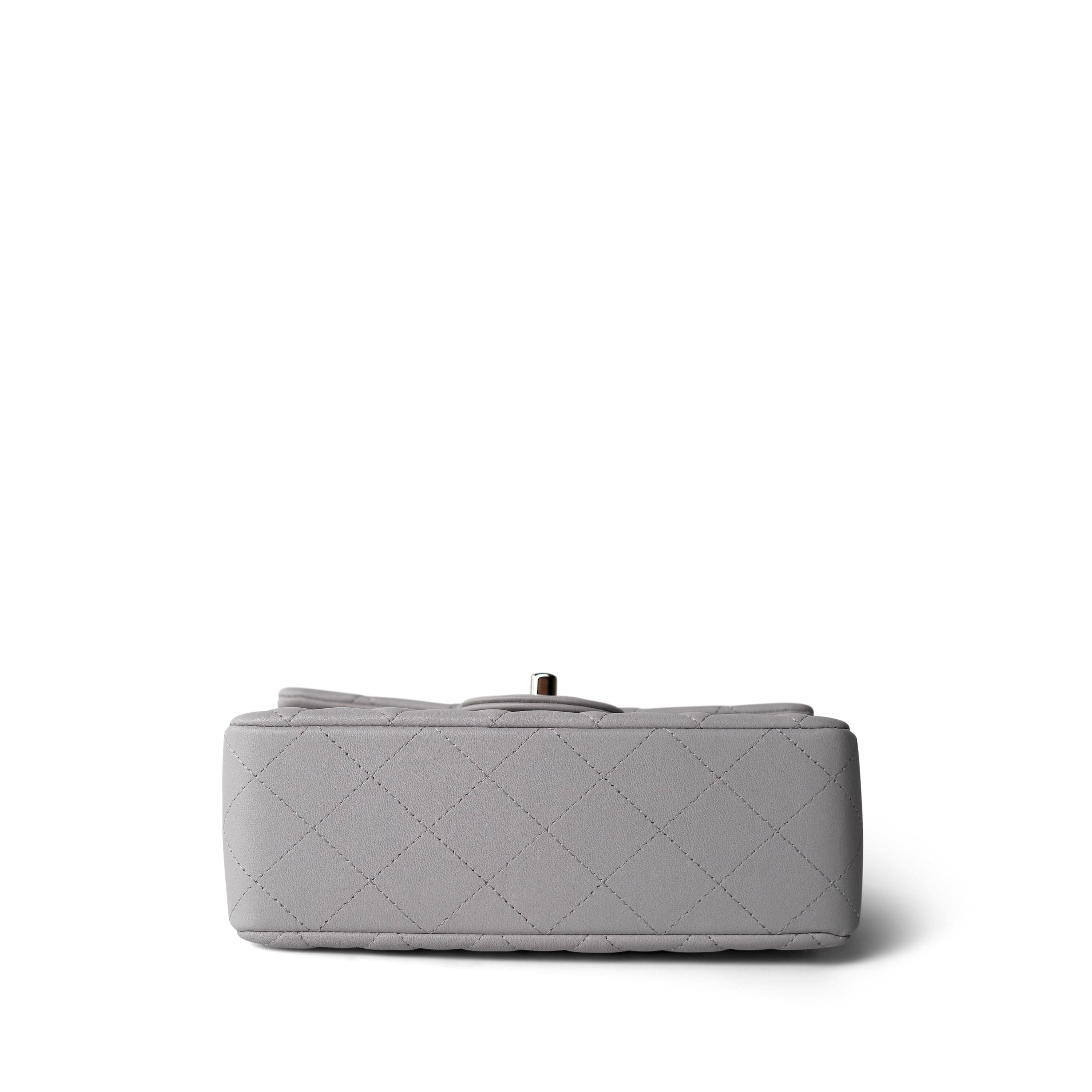 20C Light Grey Lambskin Quilted Mini Rectangular Flap Silver Hardware