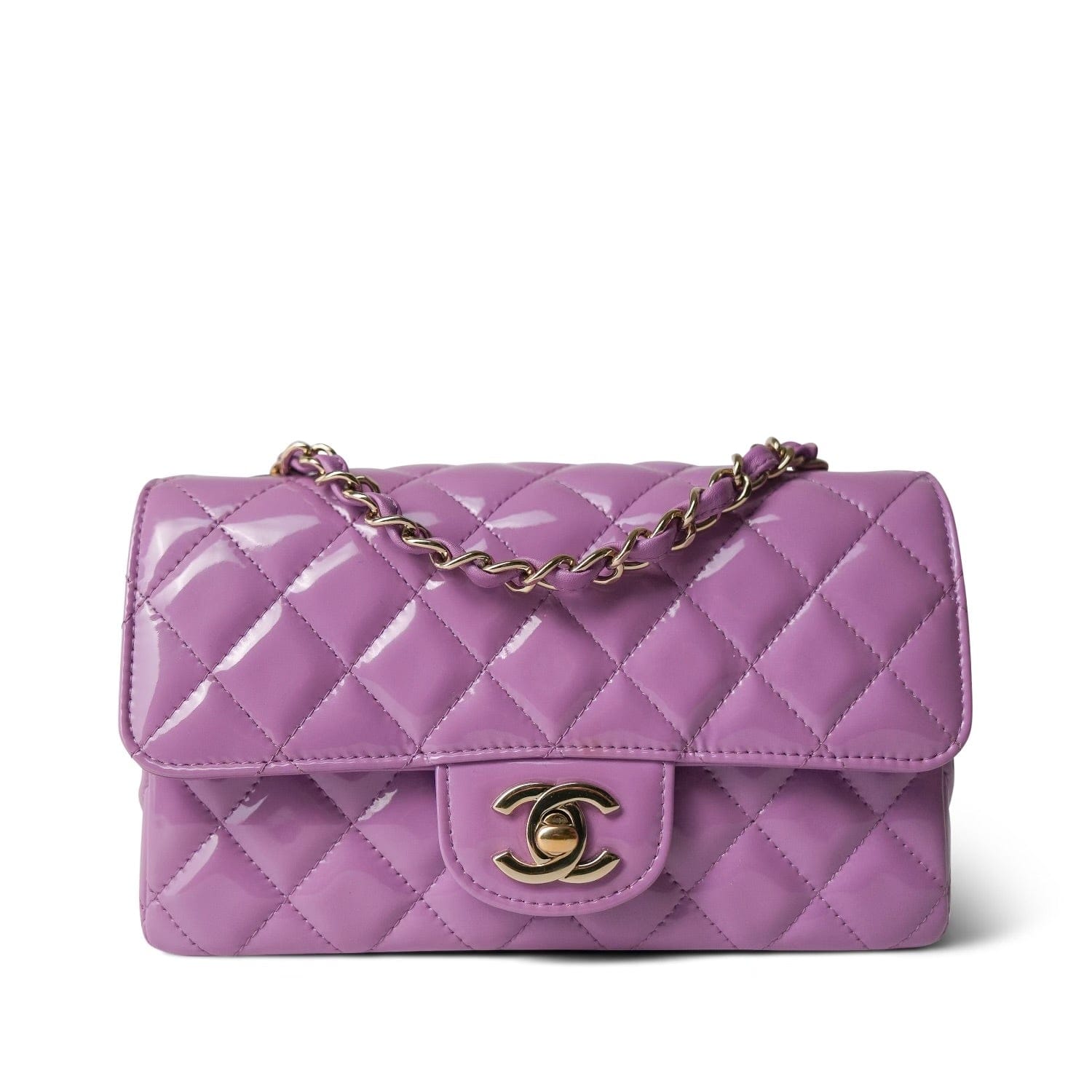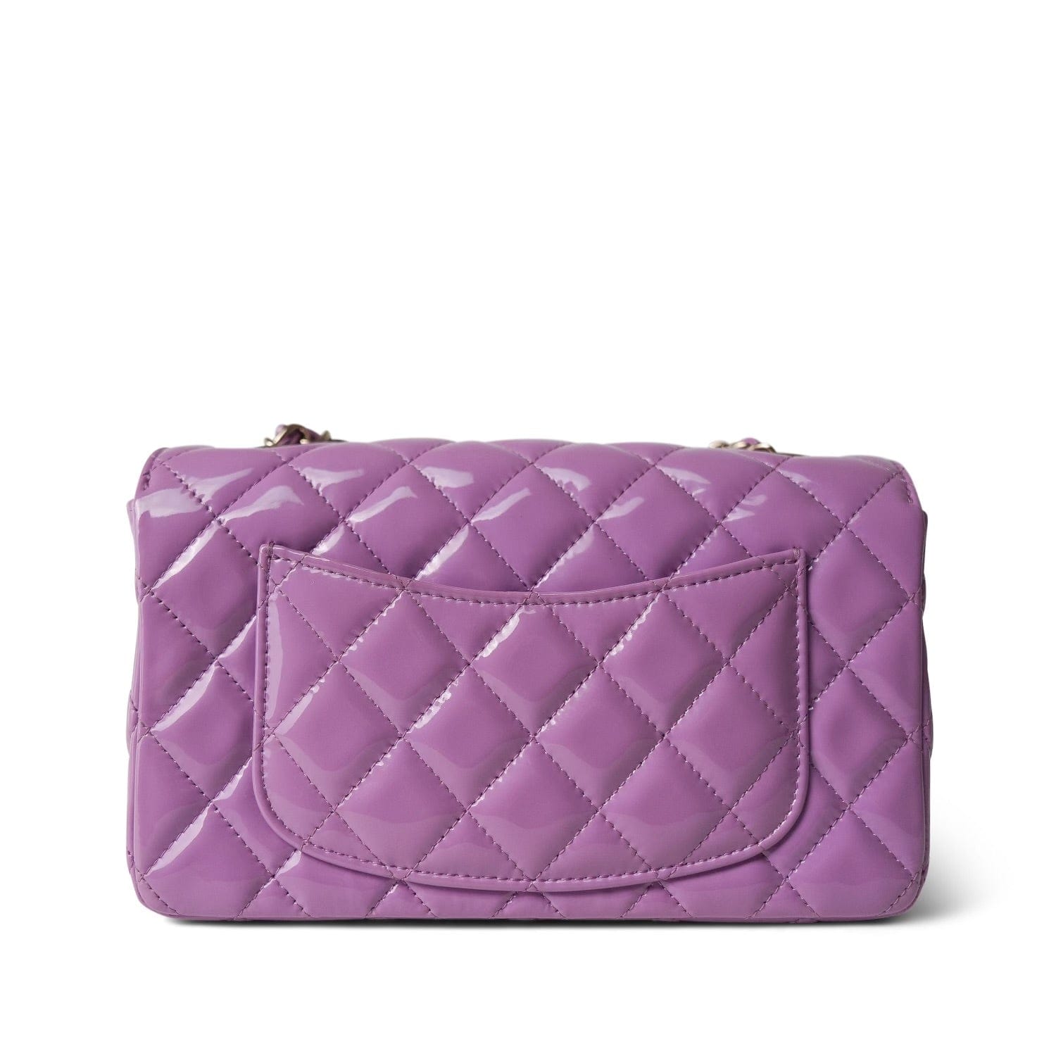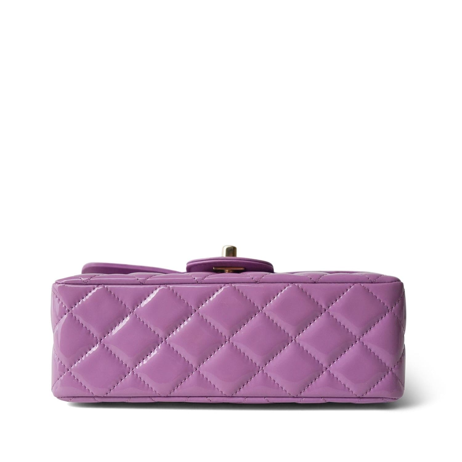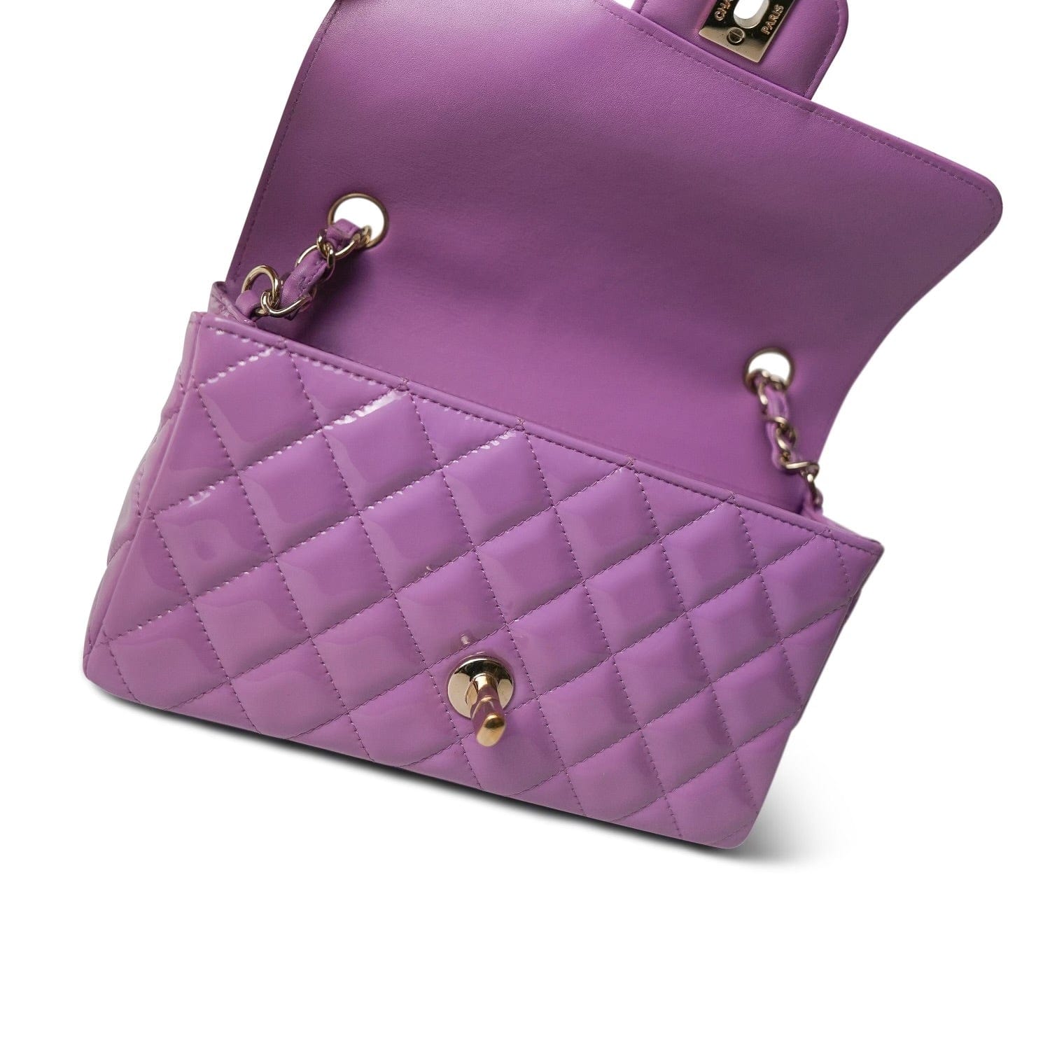 20C Purple Patent Quilted Mini Rectangular Flap Light Gold Hardware