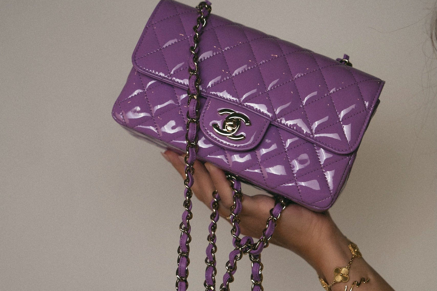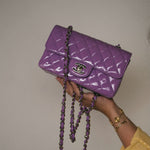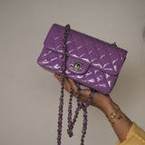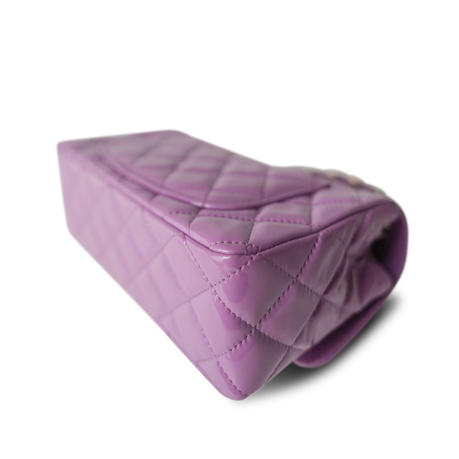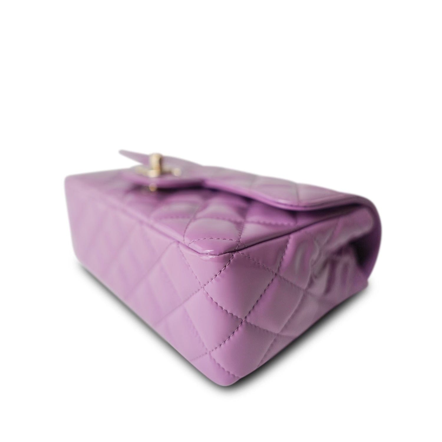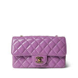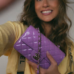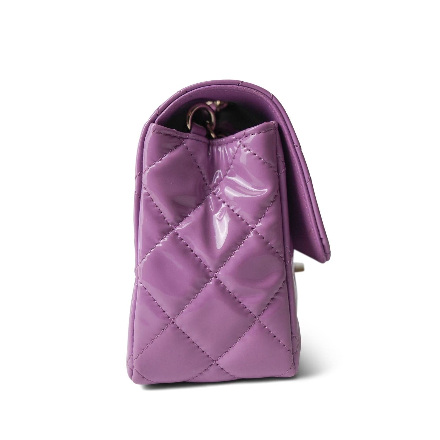 20C Purple Patent Quilted Mini Rectangular Flap Light Gold Hardware