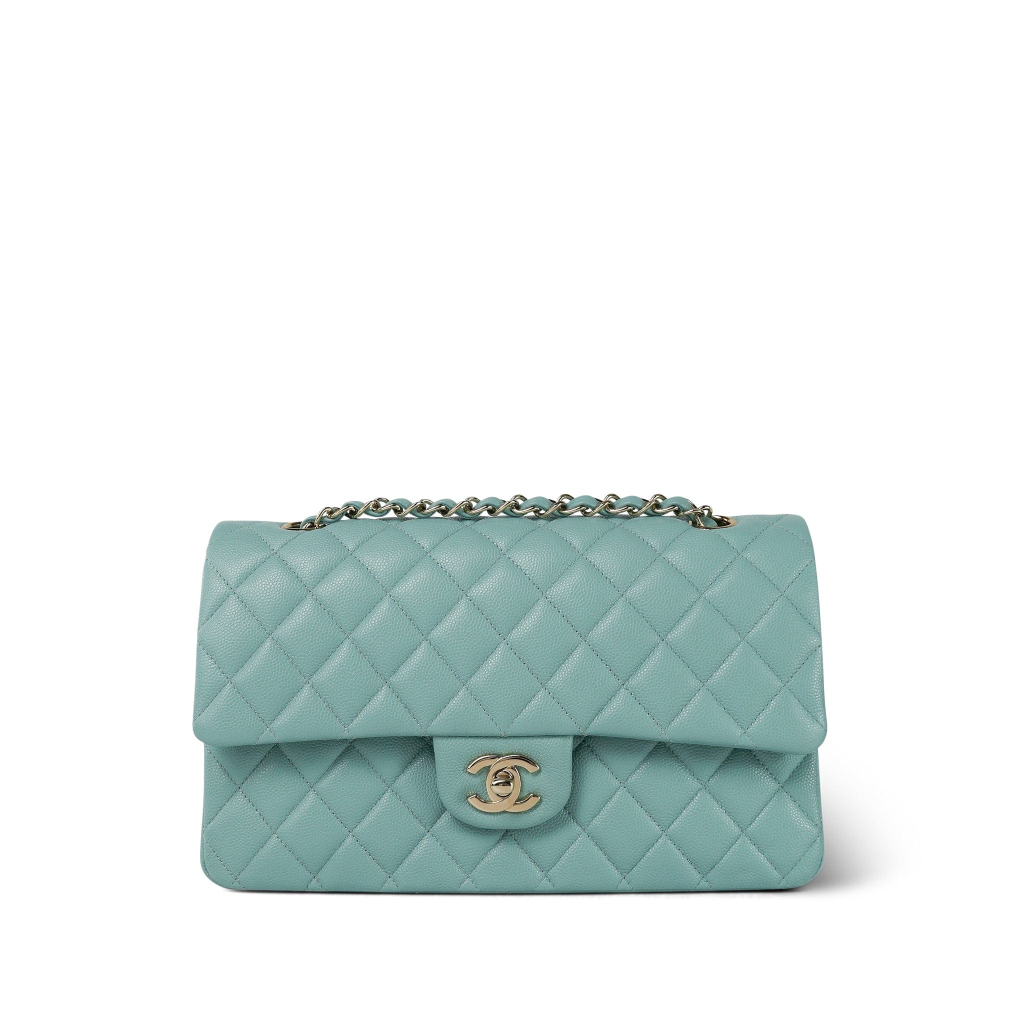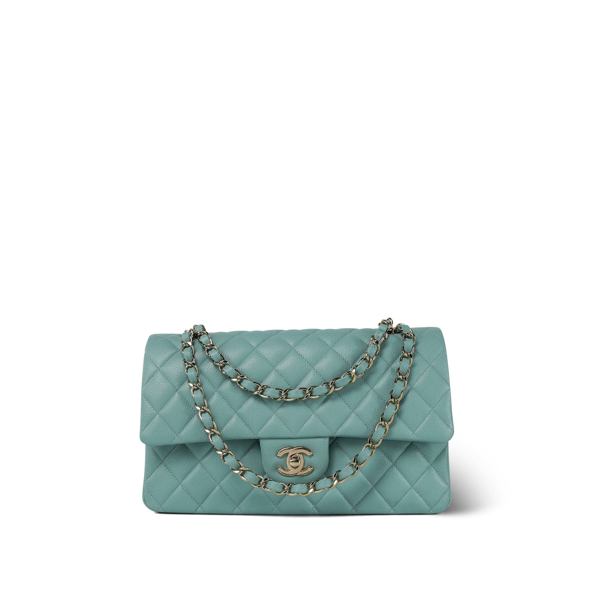 20C Tiffany Blue Caviar Quilted Classic Flap Medium LGHW