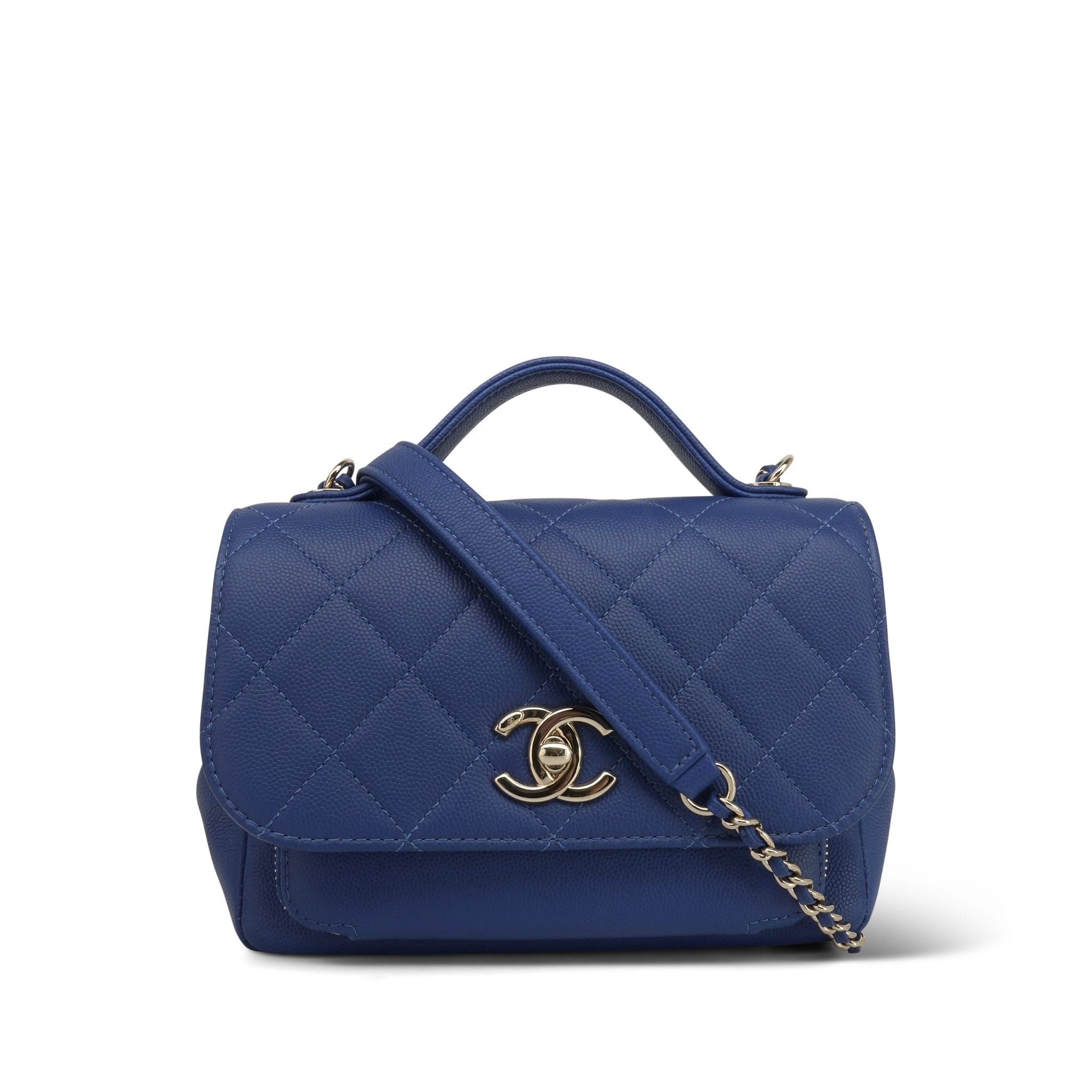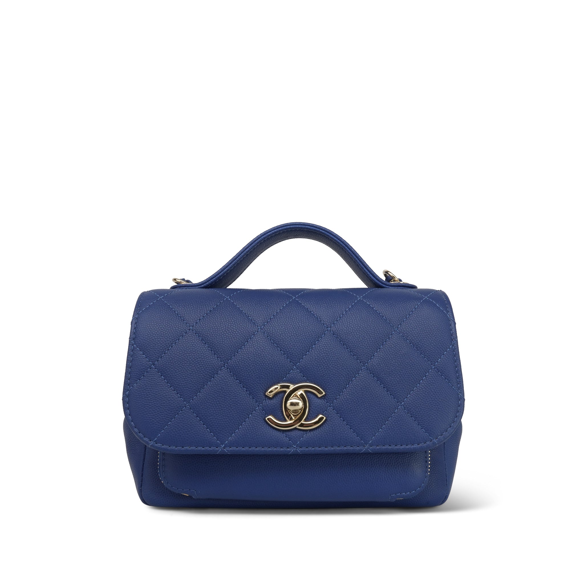 20P Blue Caviar Quilted Business Affinity Flap Small Light Gold Hardware