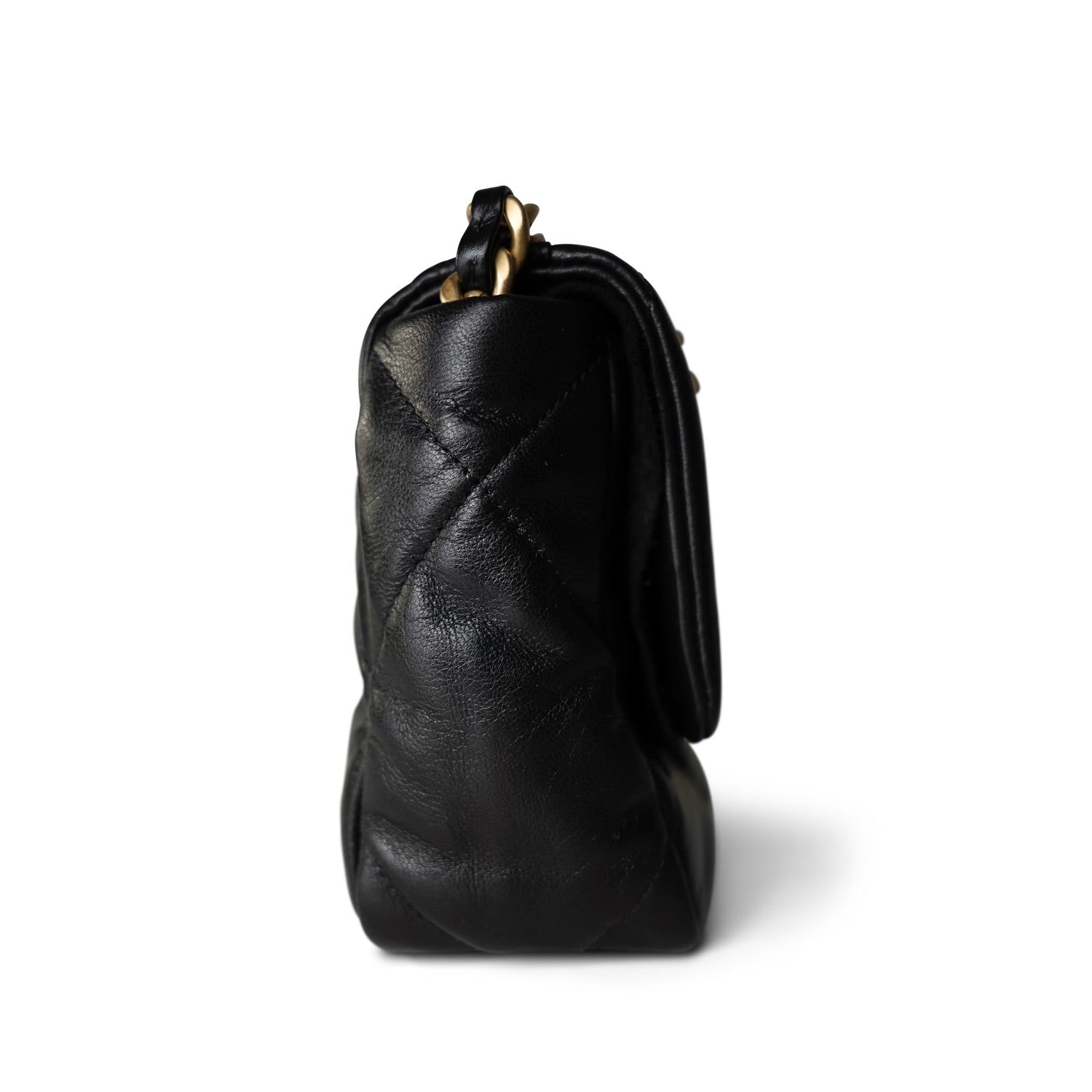 20S Black Goatskin Quilted 19 Flap Small MHW