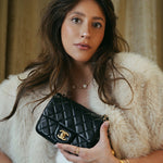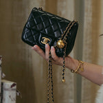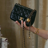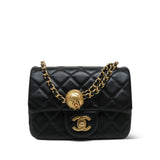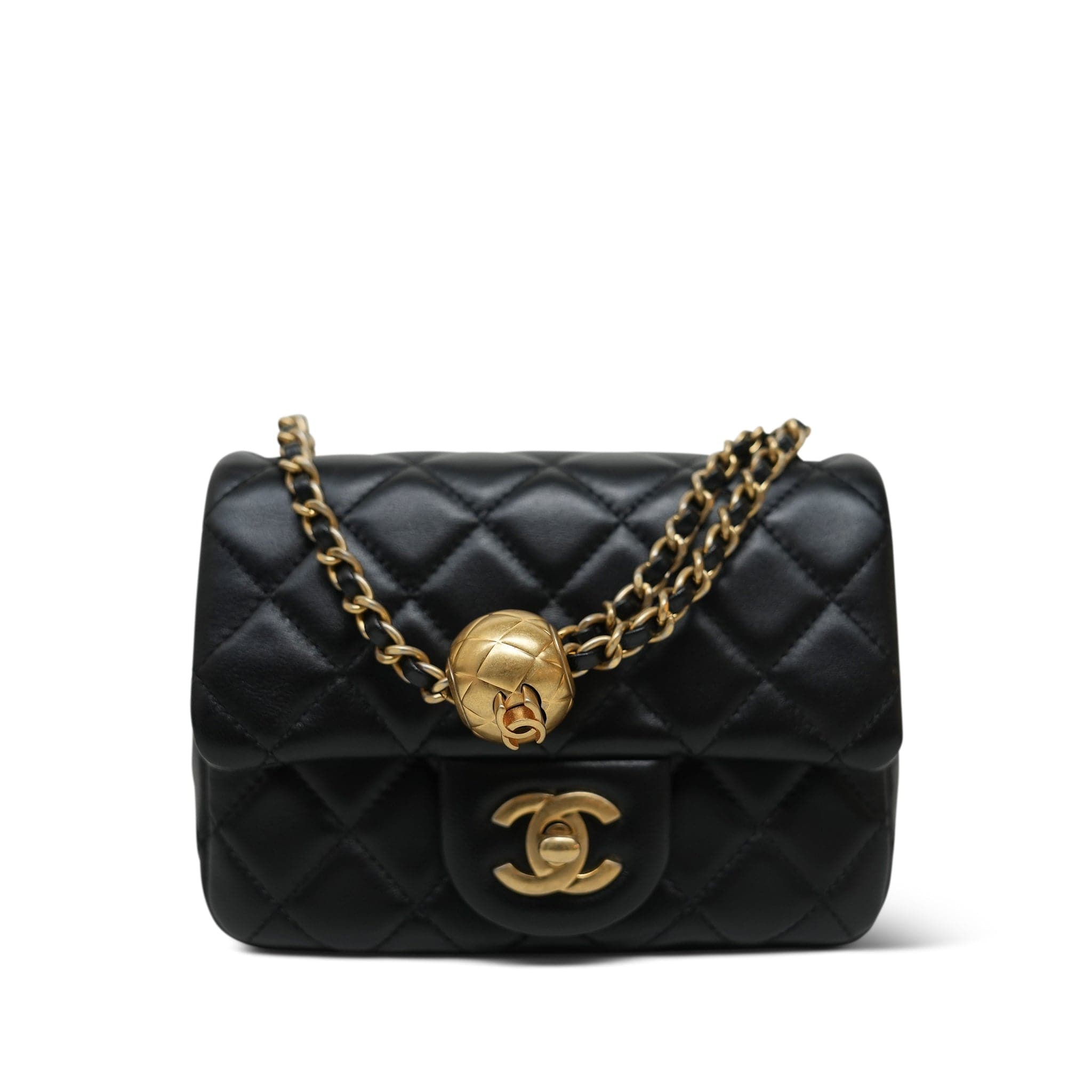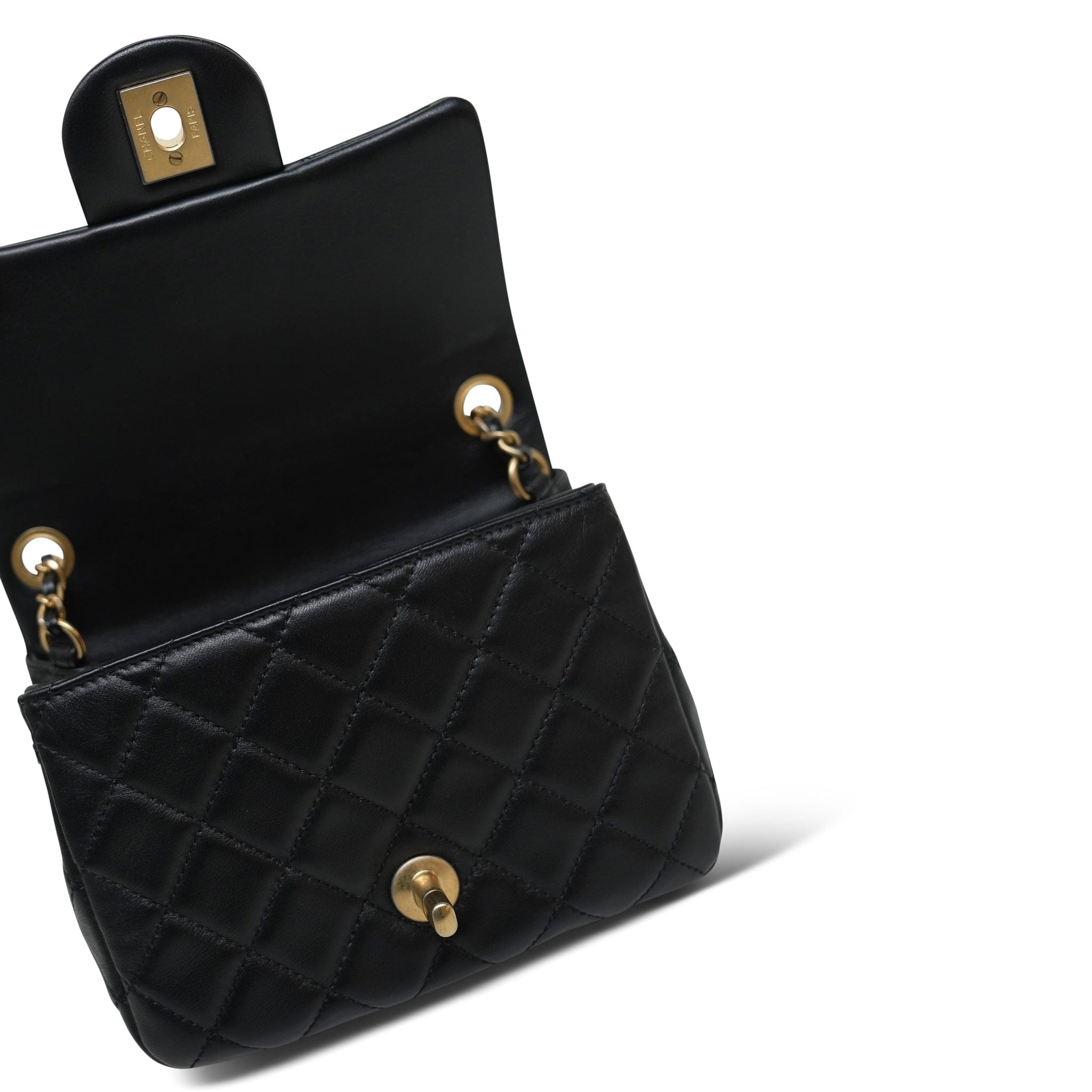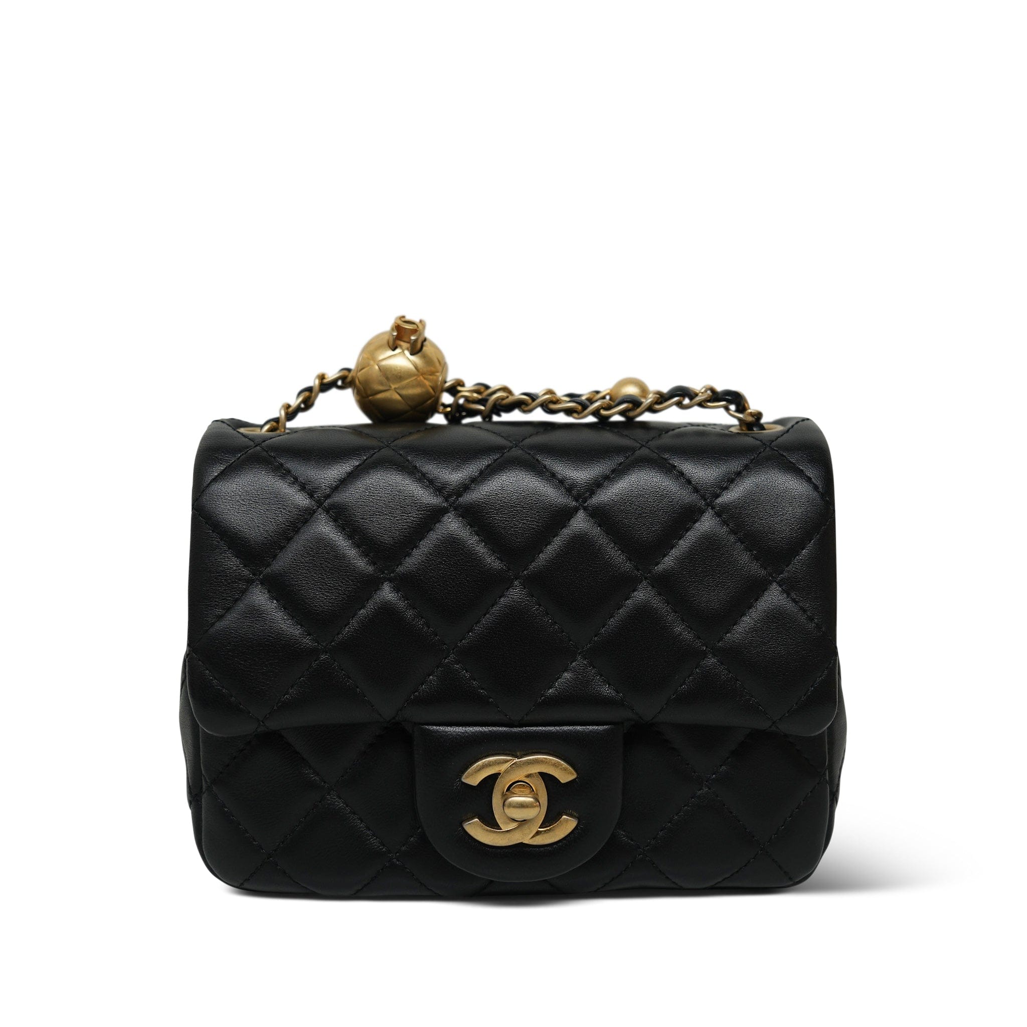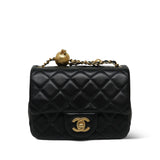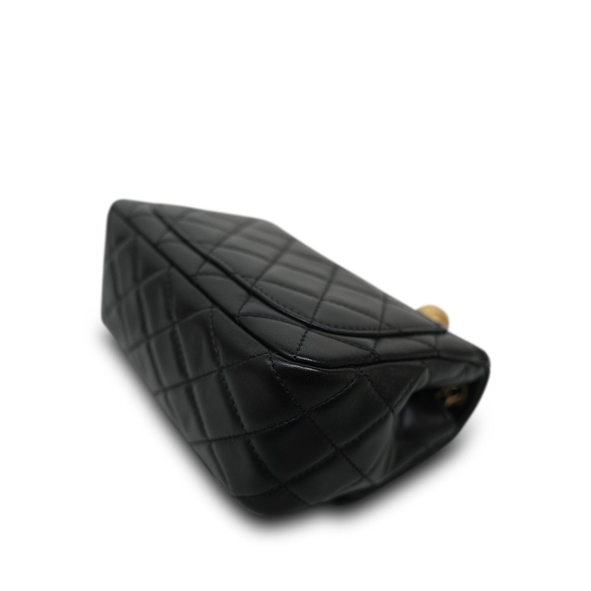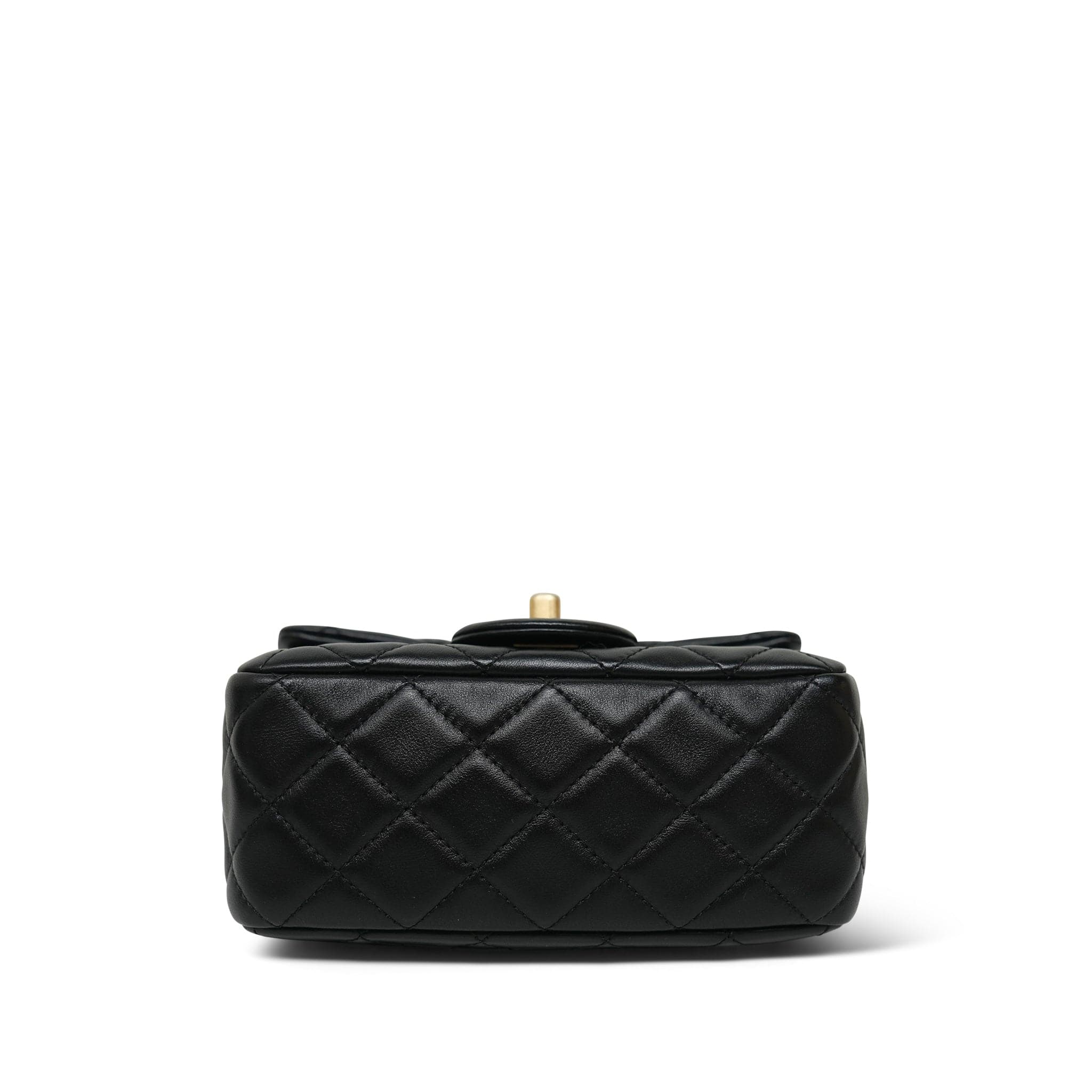 20S Black Lambskin Quilted Pearl Crush Mini Square Flap AGHW