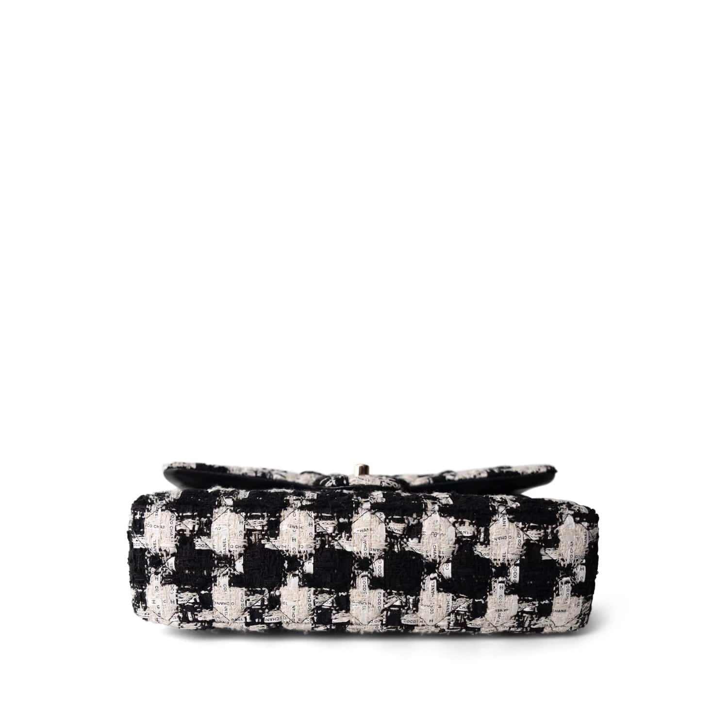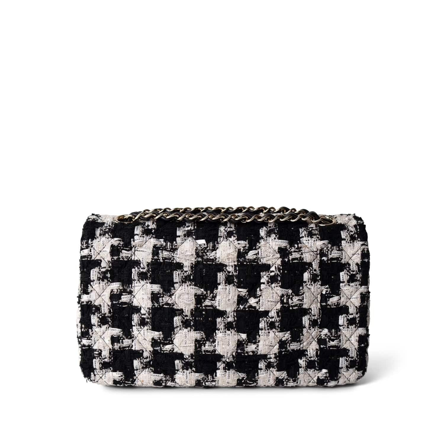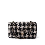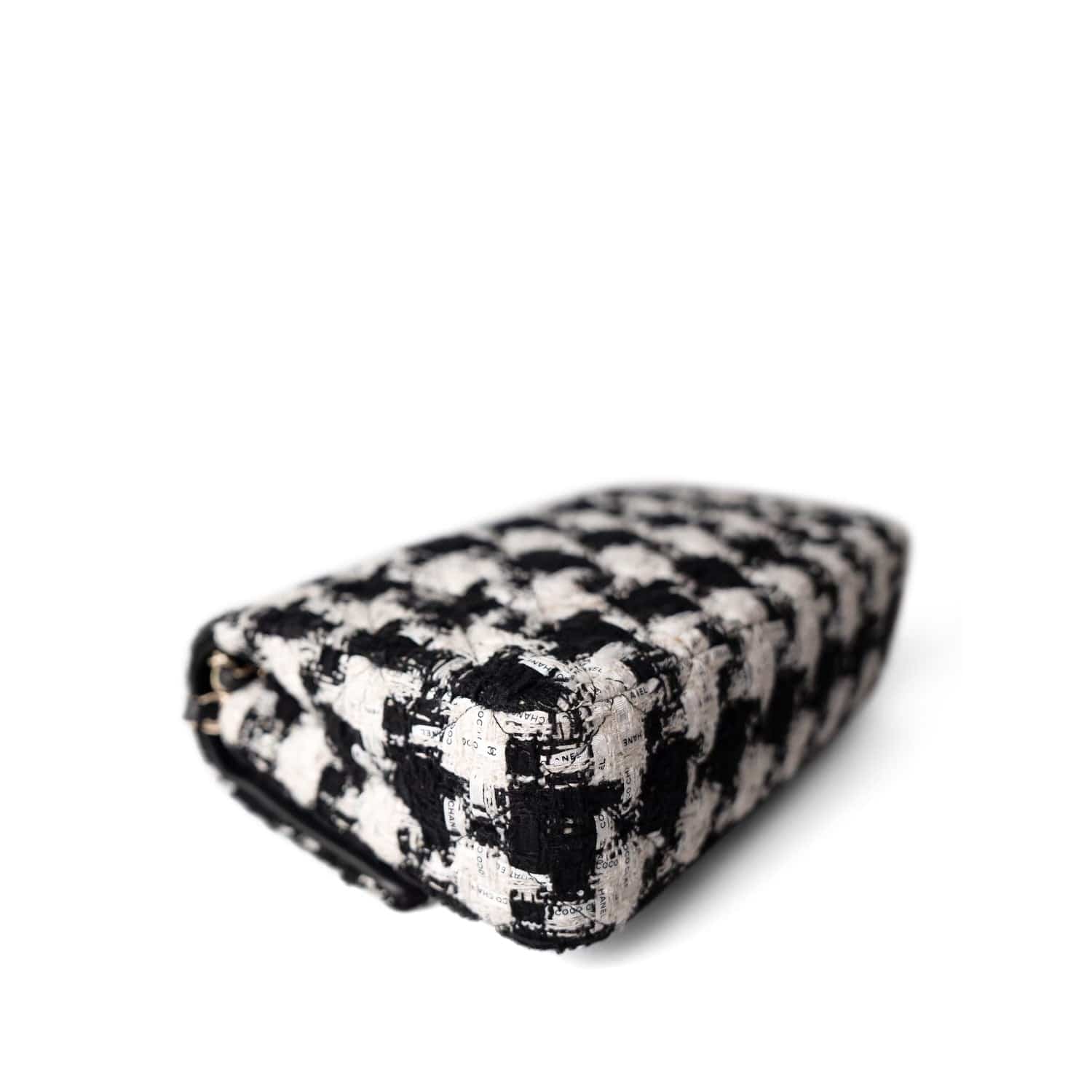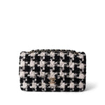 20S Black White Ecru Houndstooth Tweed Quilted Classic Flap Medium Light Gold Hardware