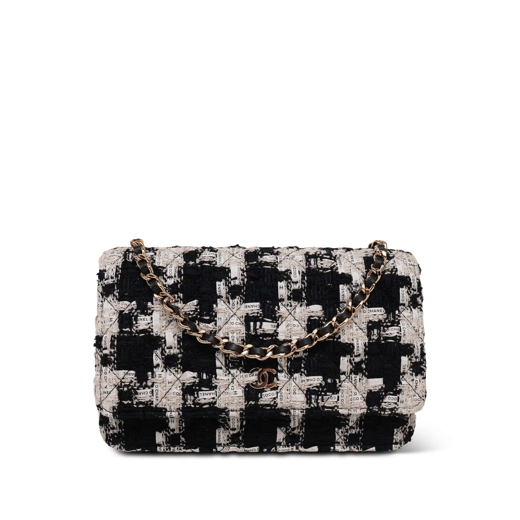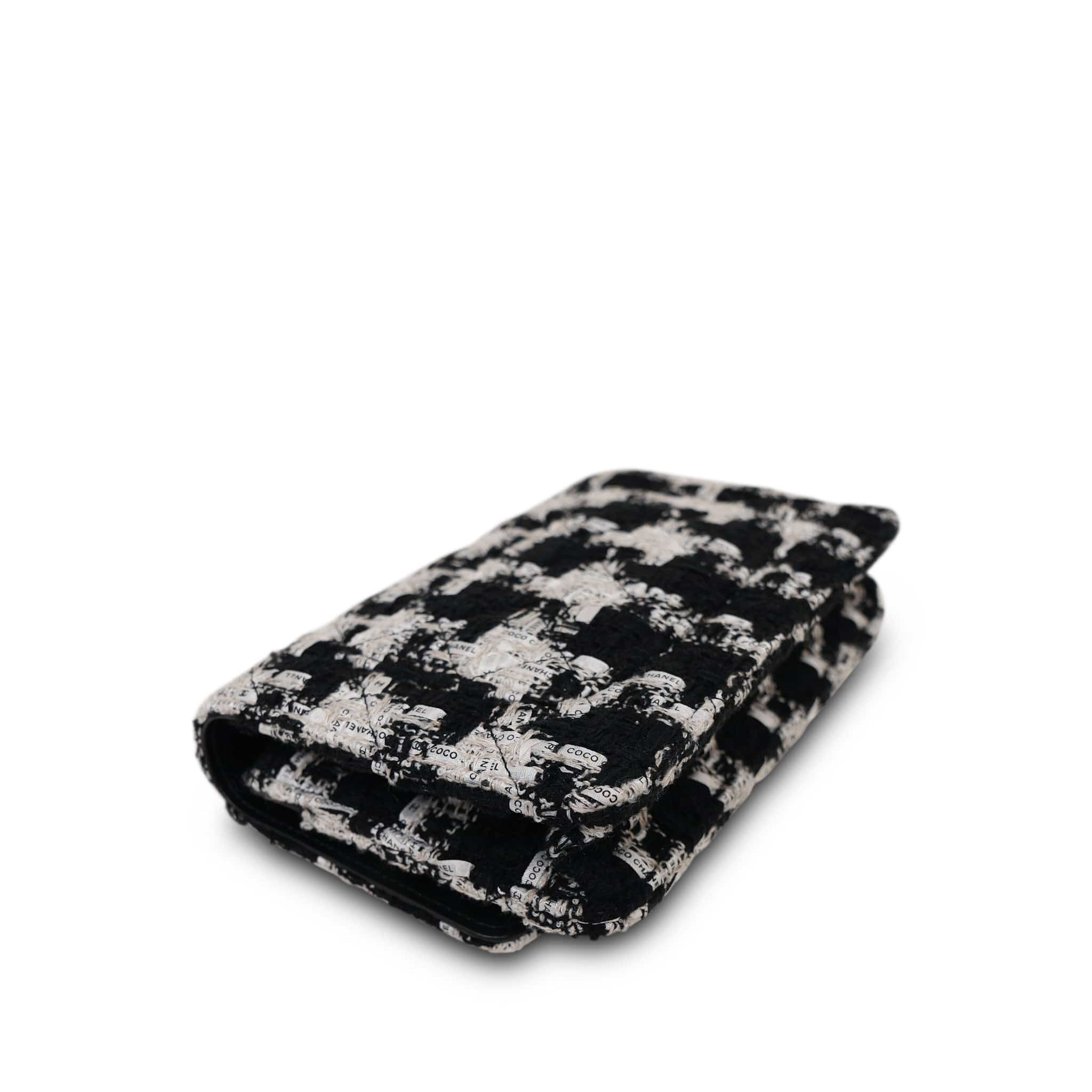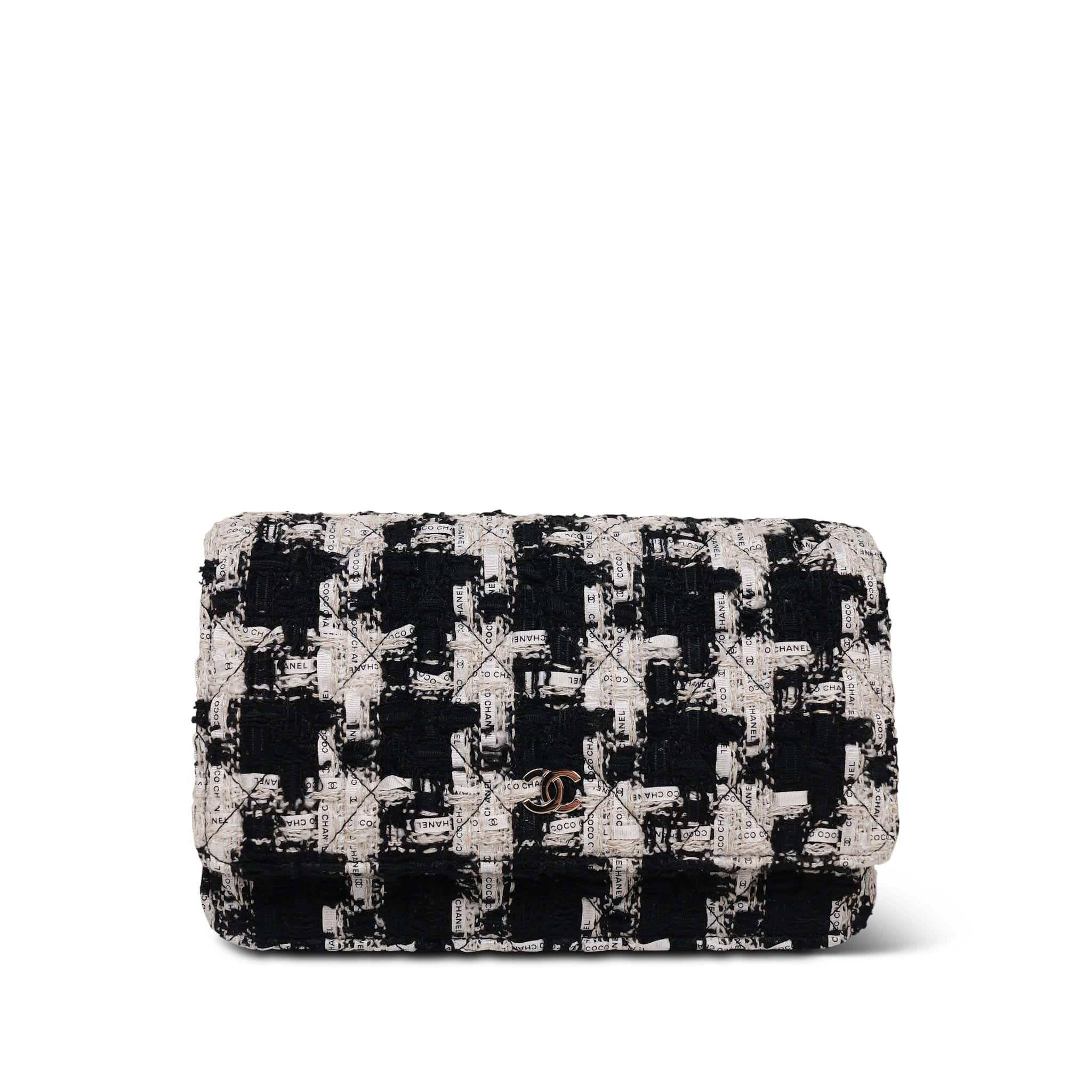 20S Ecru Black & White Ribbon Tweed Quilted Wallet On Chain WOC