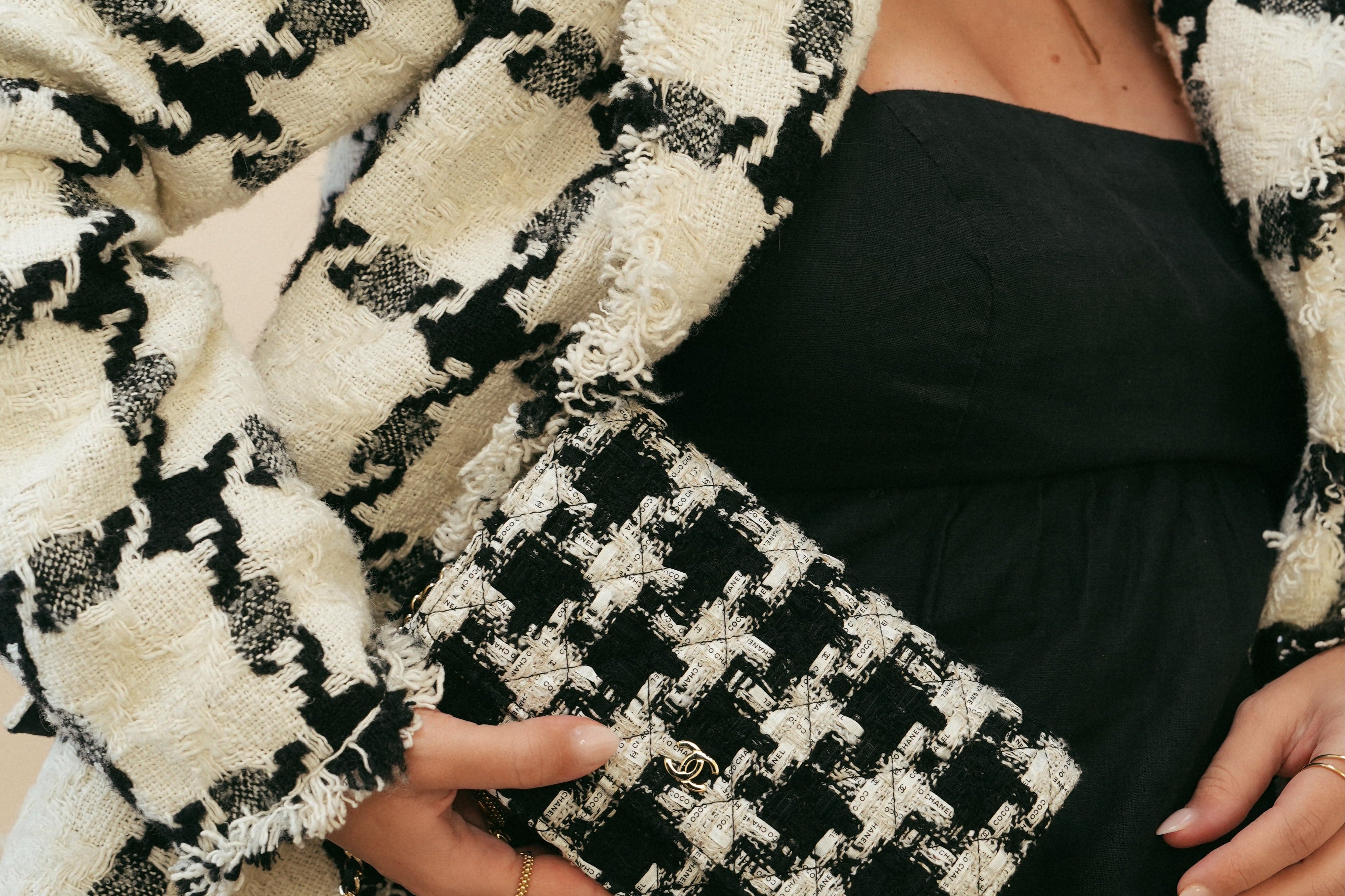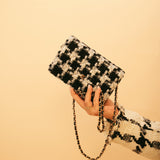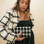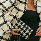 20S Ecru Black & White Ribbon Tweed Quilted Wallet On Chain WOC
