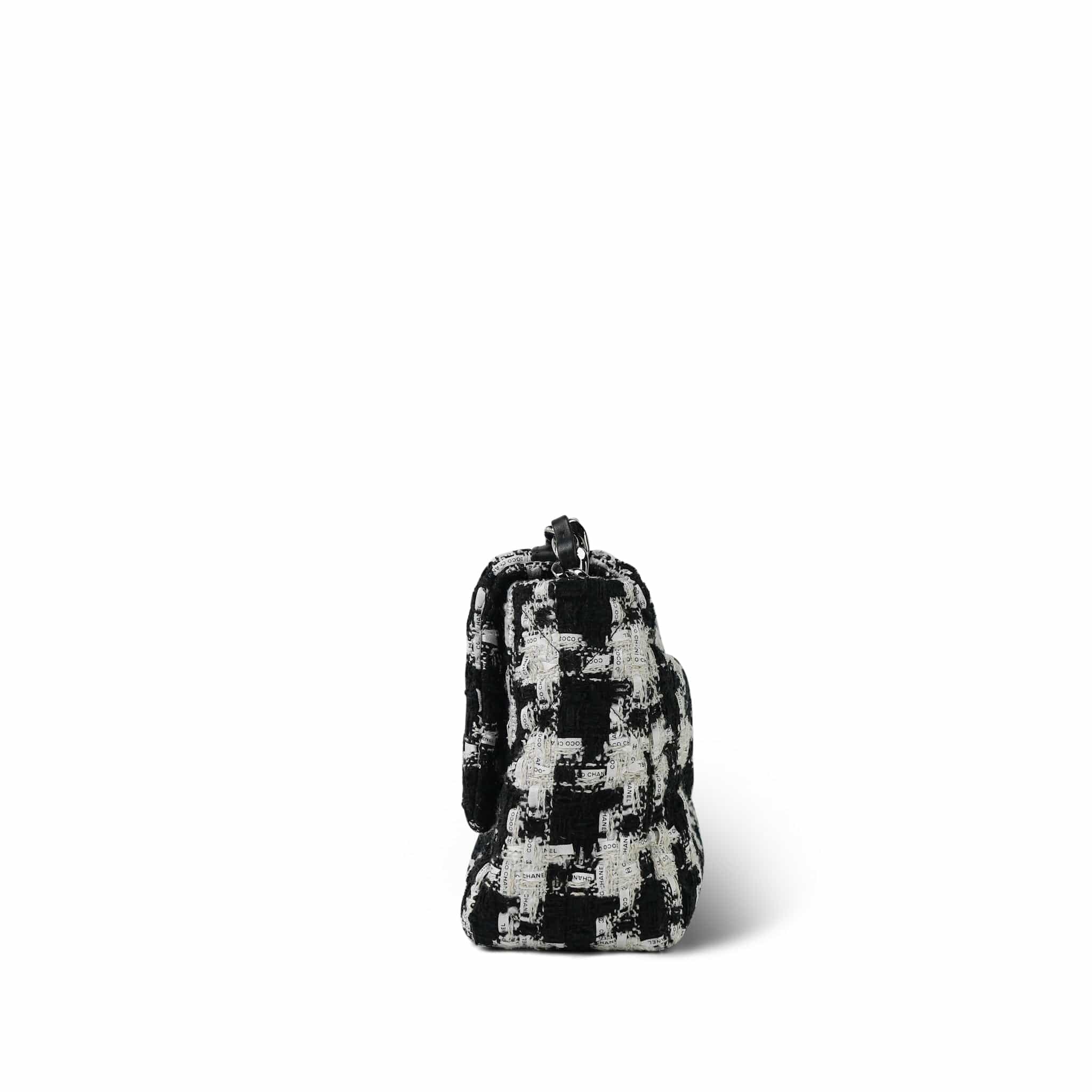 20S Ecru Black & White Tweed Quilted 19 Flap Small Mixed Hardware