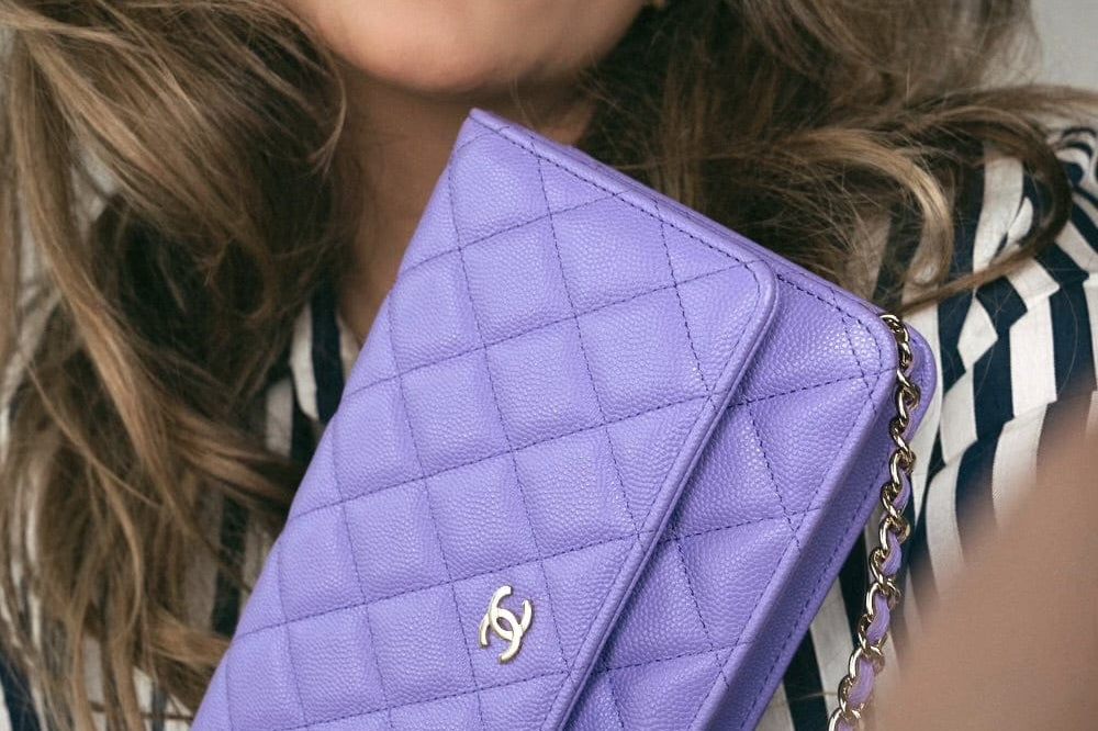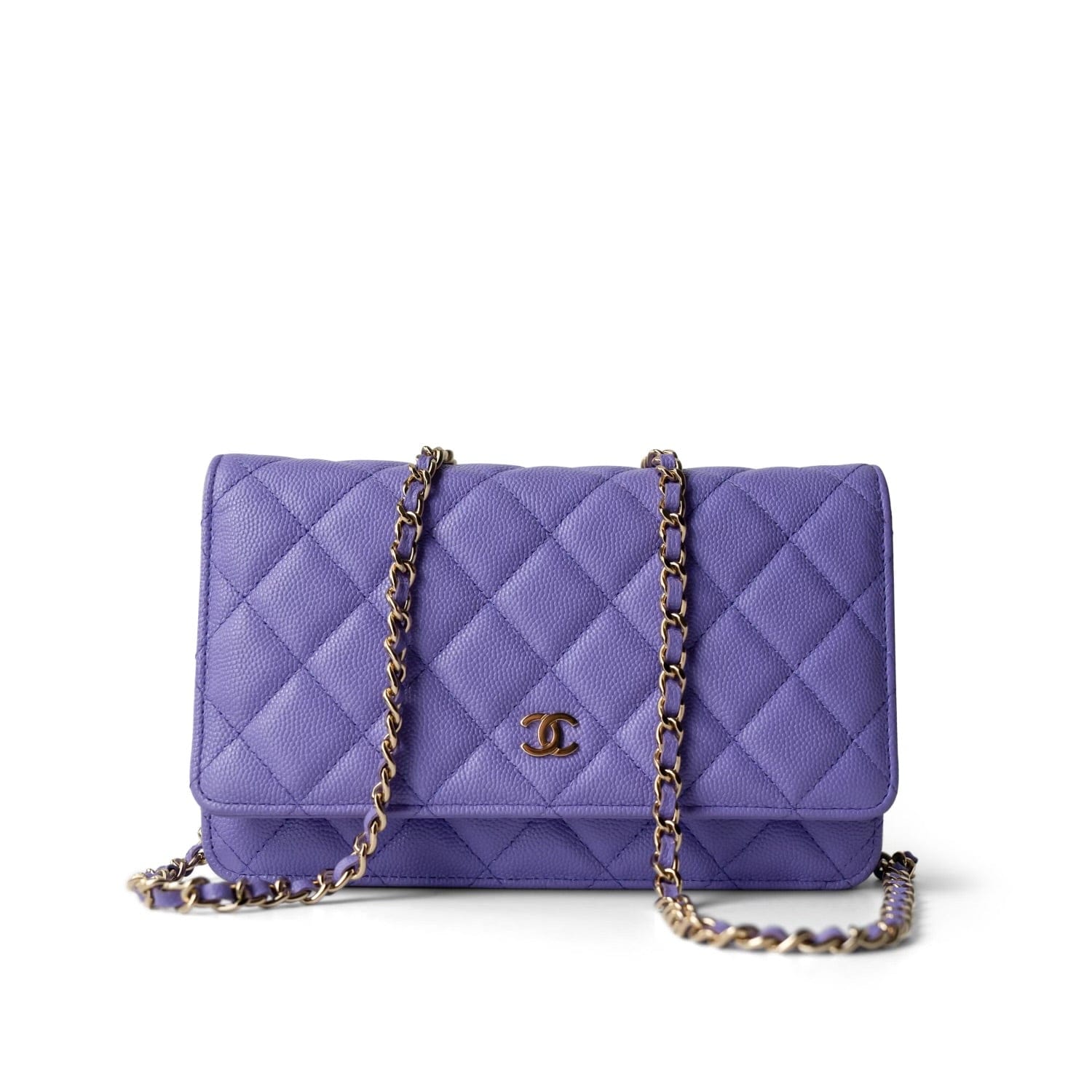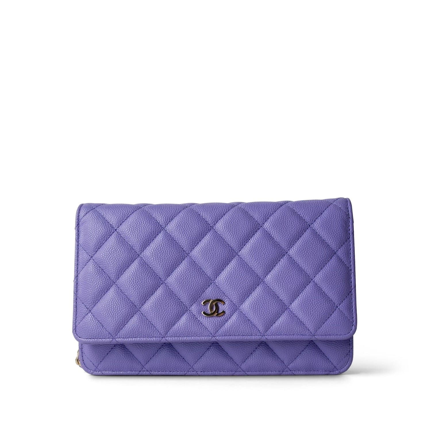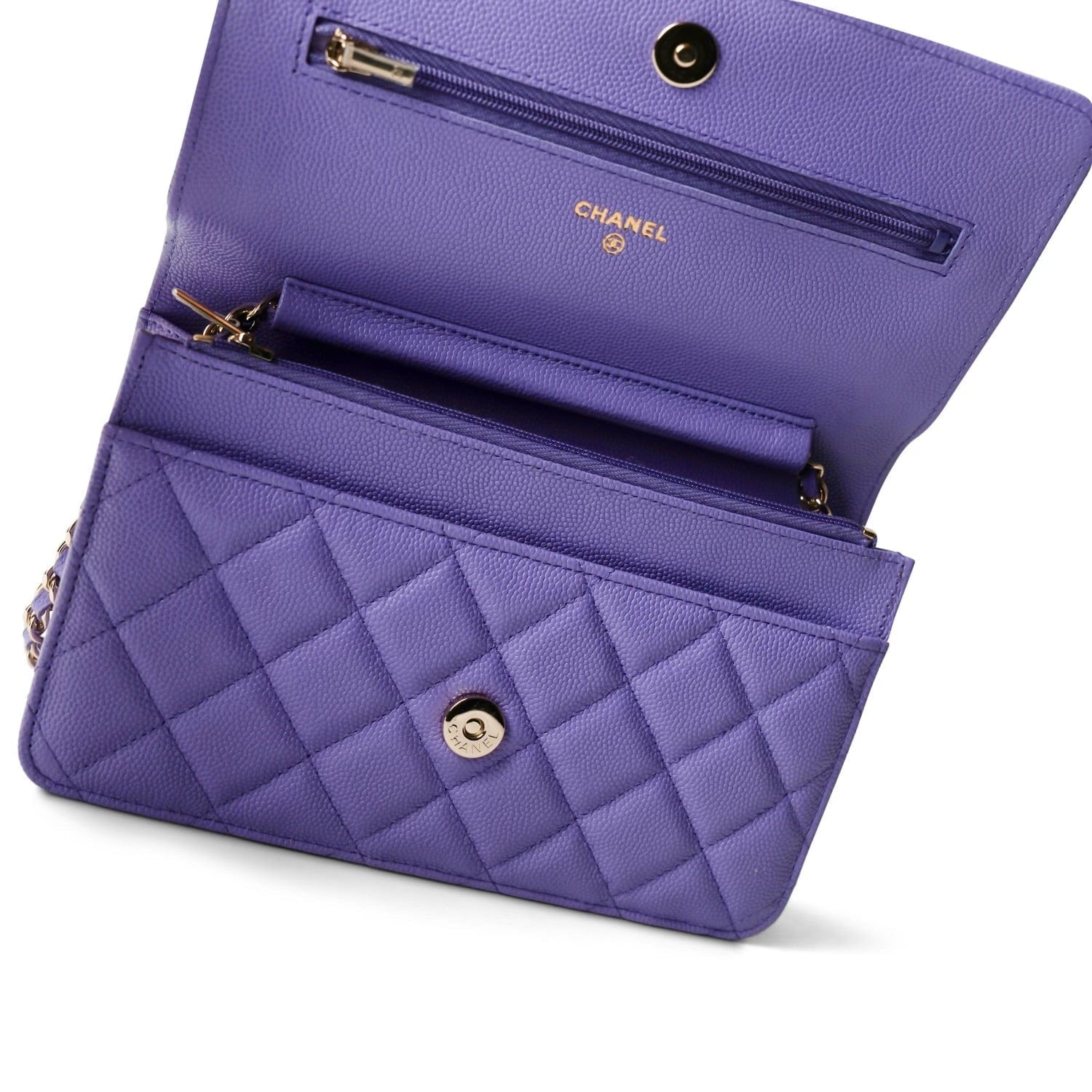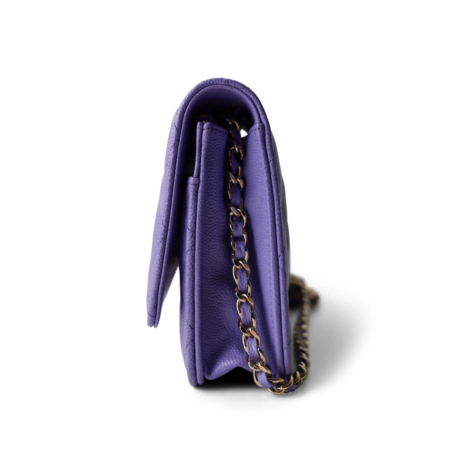 20S Purple Caviar Quilted Wallet on Chain WOC LGHW